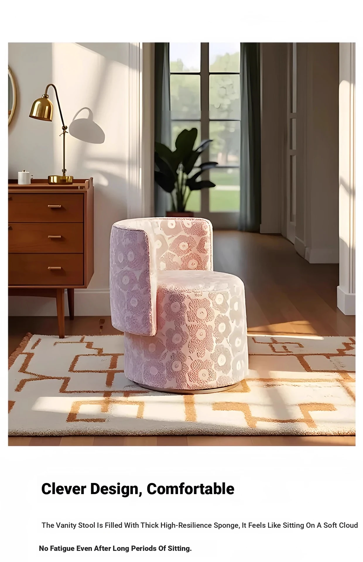 Vintage-Inspired Luxury Makeup Stool - Chic Bedroom Vanity Chair, Designer Retro Lounge Chair, Perfect for Elevating Your Space with Elegance and Style