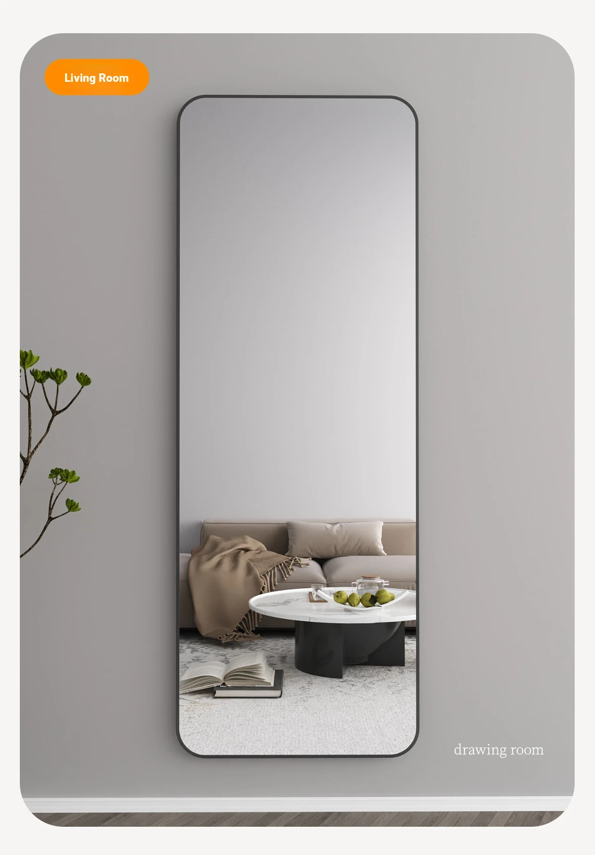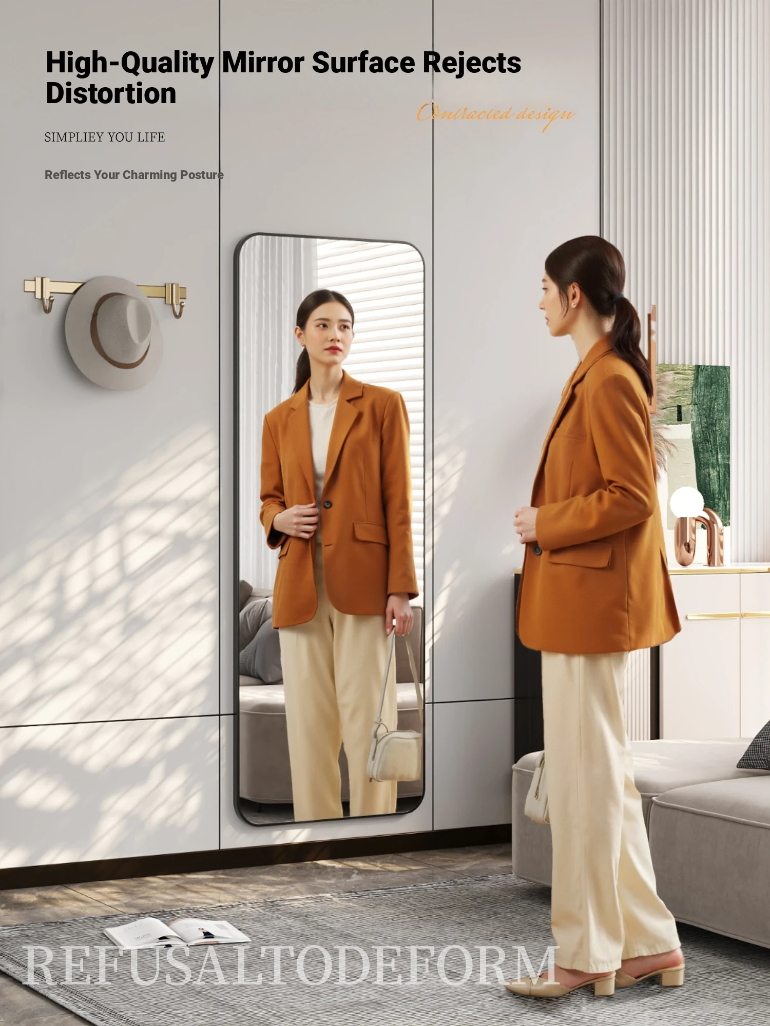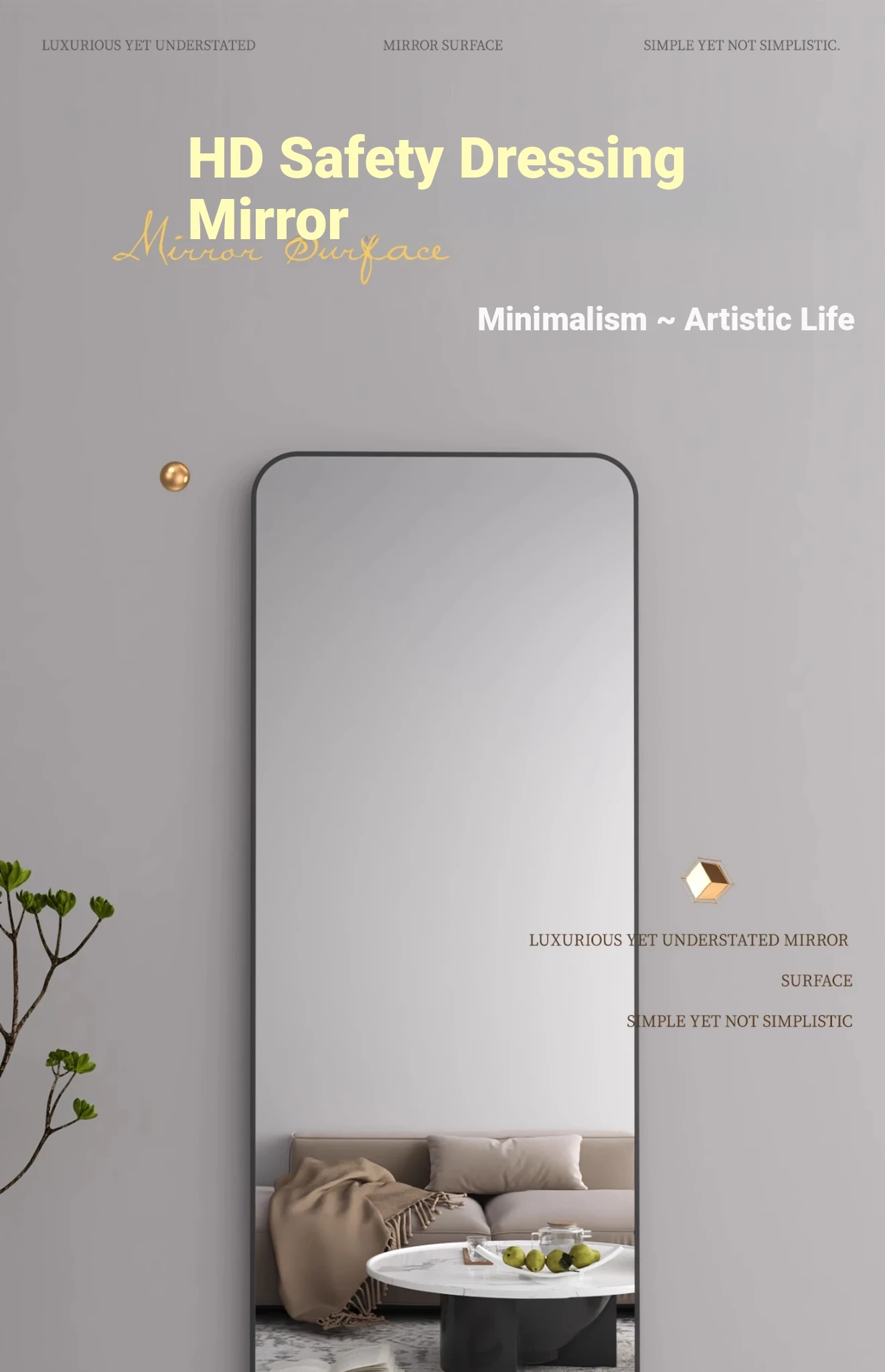 Wall-Mounted Full-Length Mirror - Self-Adhesive, No Drilling Required, Elegant Dressing Mirror for Home and Dormitory Use, Perfect for Fashion Try-Ons