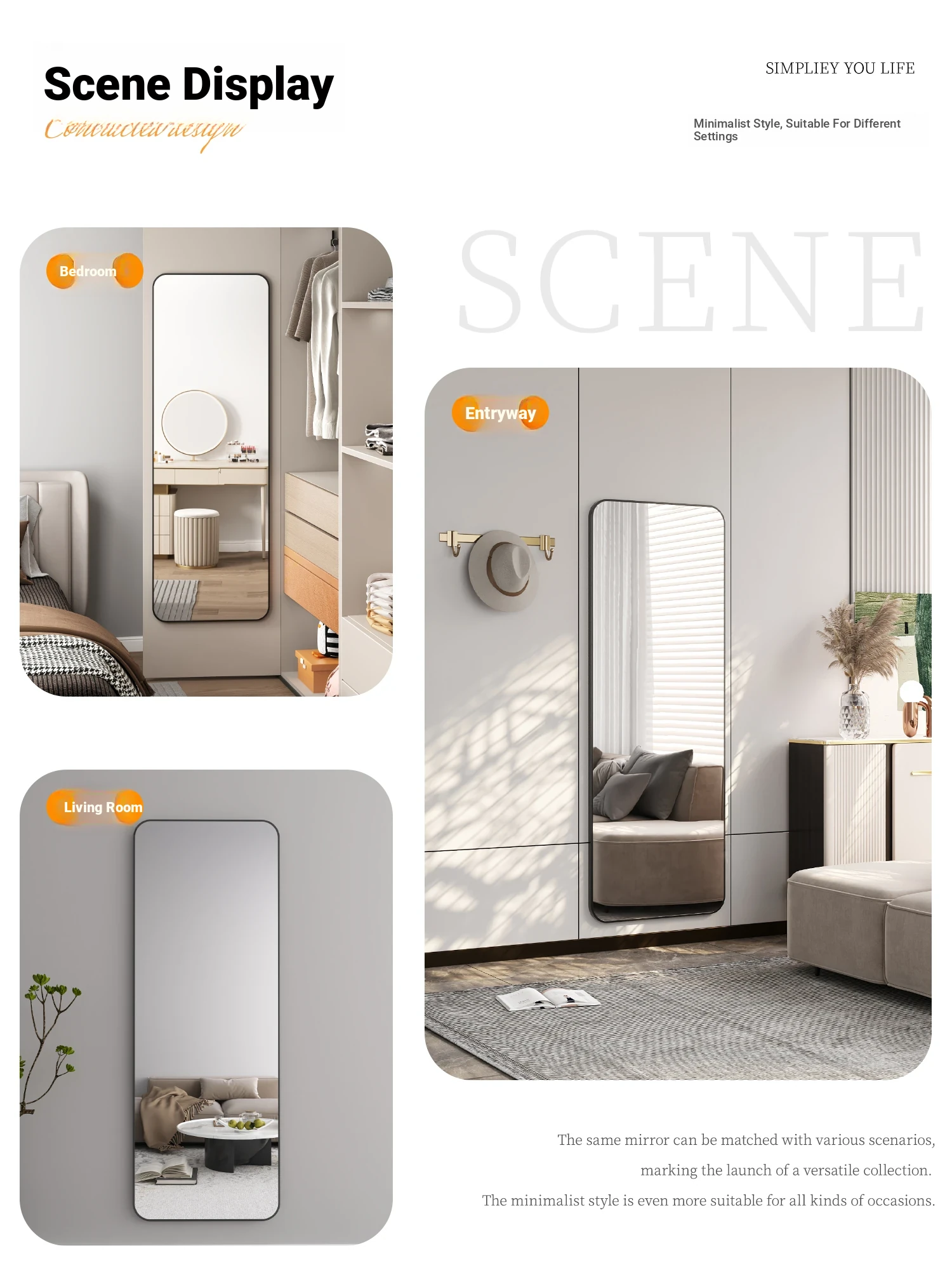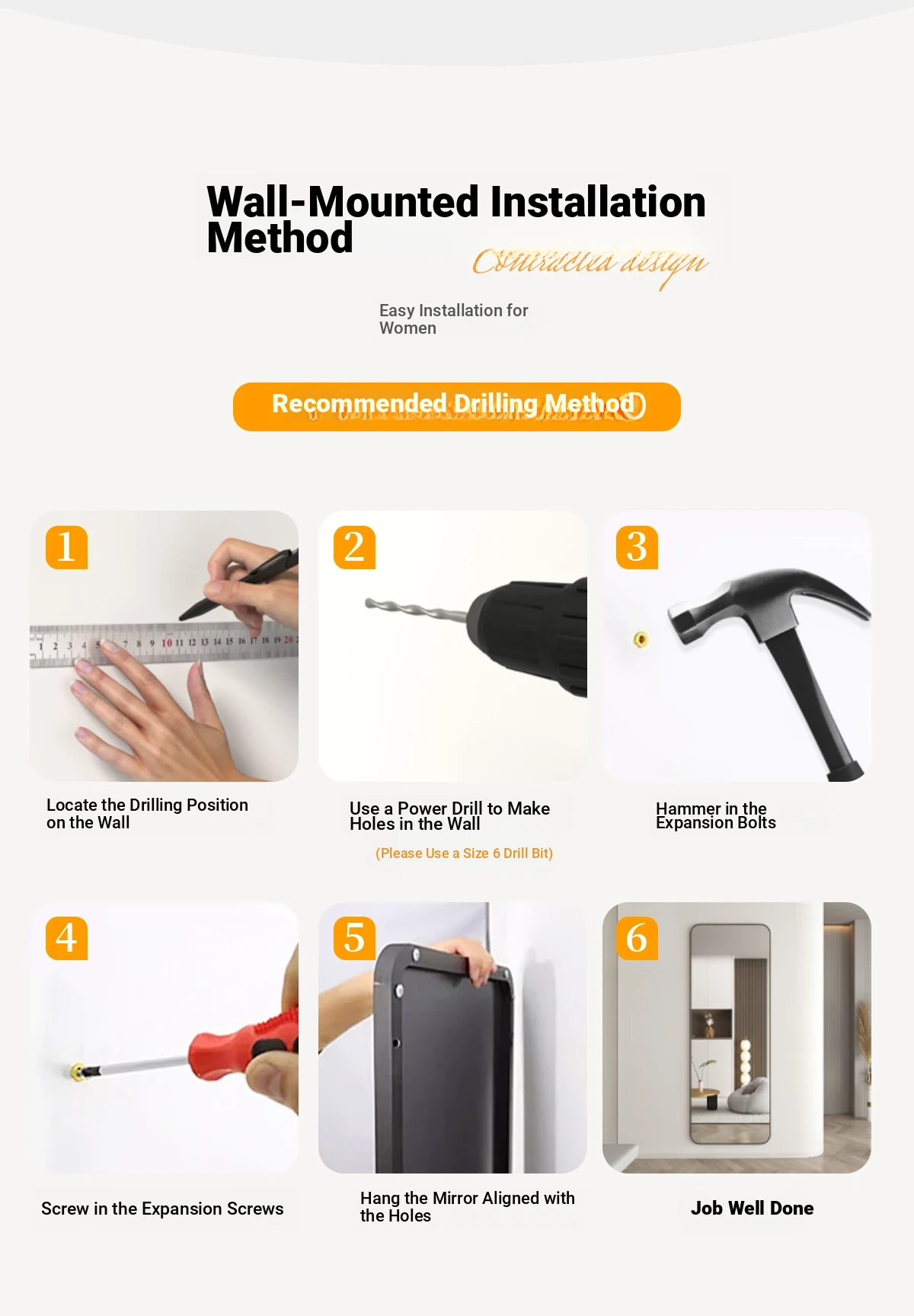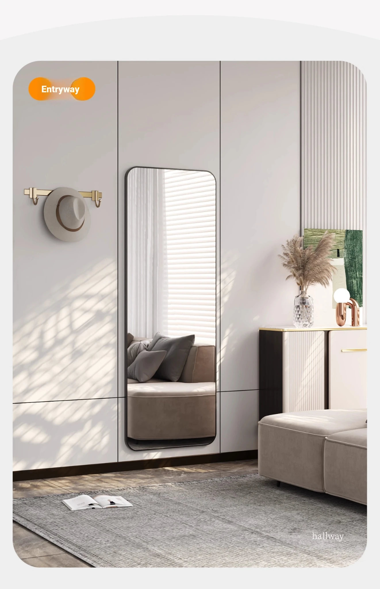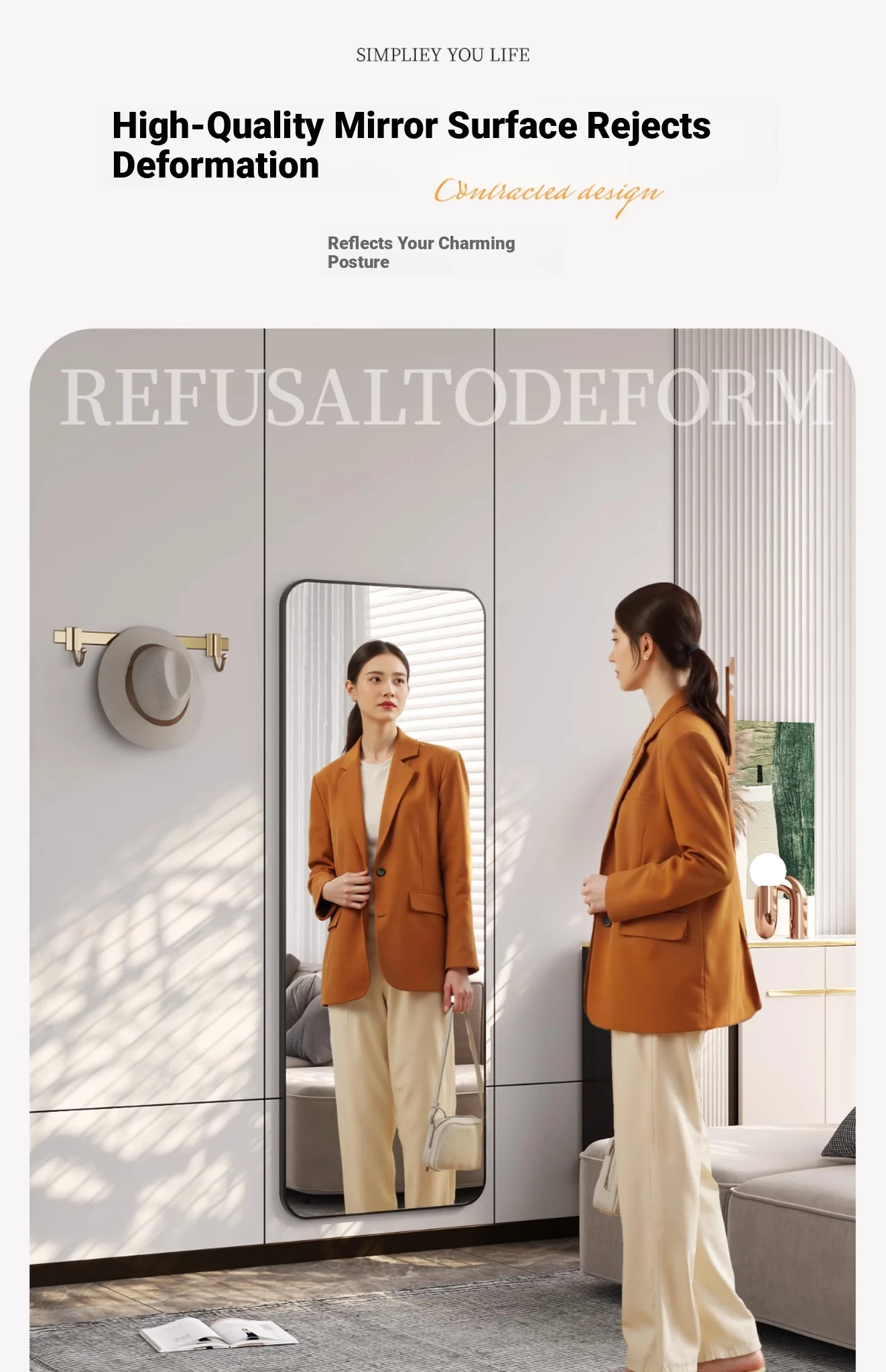Wall-Mounted Full-Length Mirror - Self-Adhesive, No Drilling Required, Elegant Dressing Mirror for Home and Dormitory Use, Perfect for Fashion Try-Ons