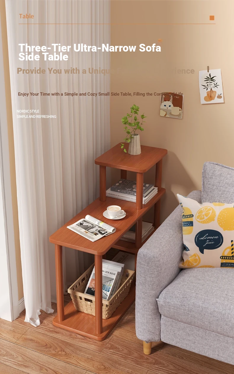 Walnut Wood Modern Creative Side Table - Compact Sofa End Table for Balcony, Living Room Storage, and Tea Serving - Stylish and Functional Design