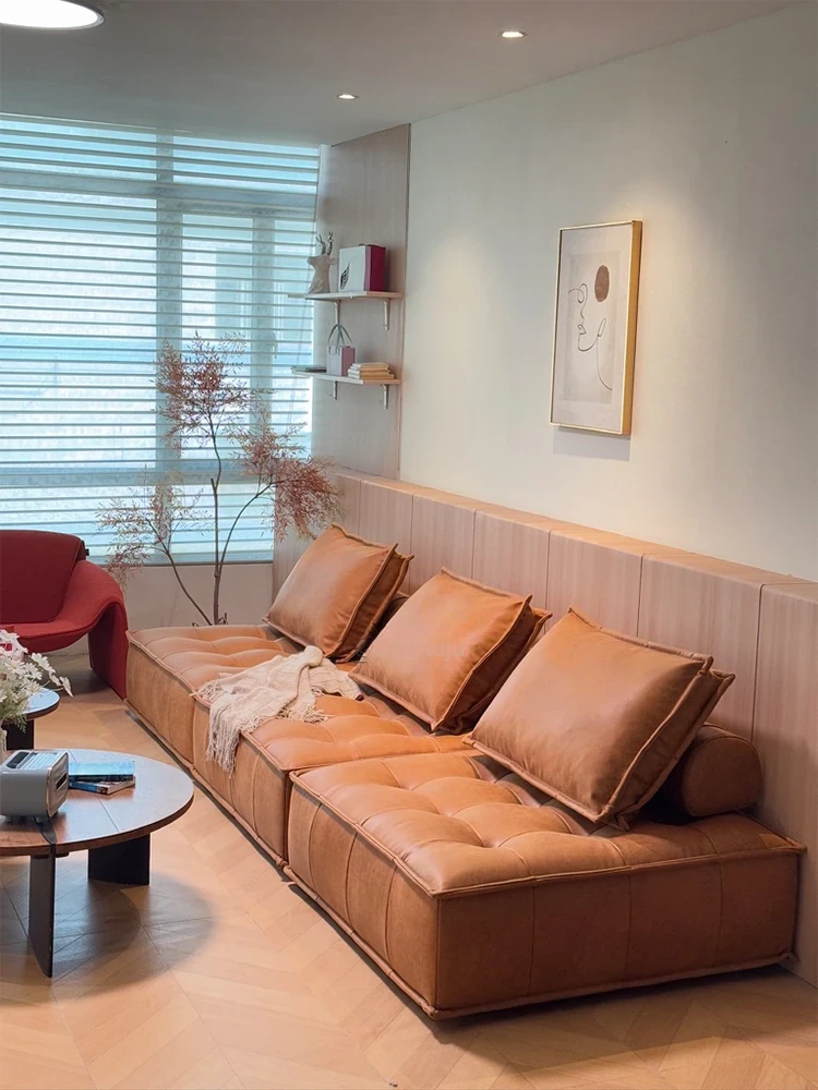 Nordic Vintage Piedmont Modular Sofa - Stylish Fabric and Genuine Leather Combination with Cotton Linen, Perfect for Your Living Room!