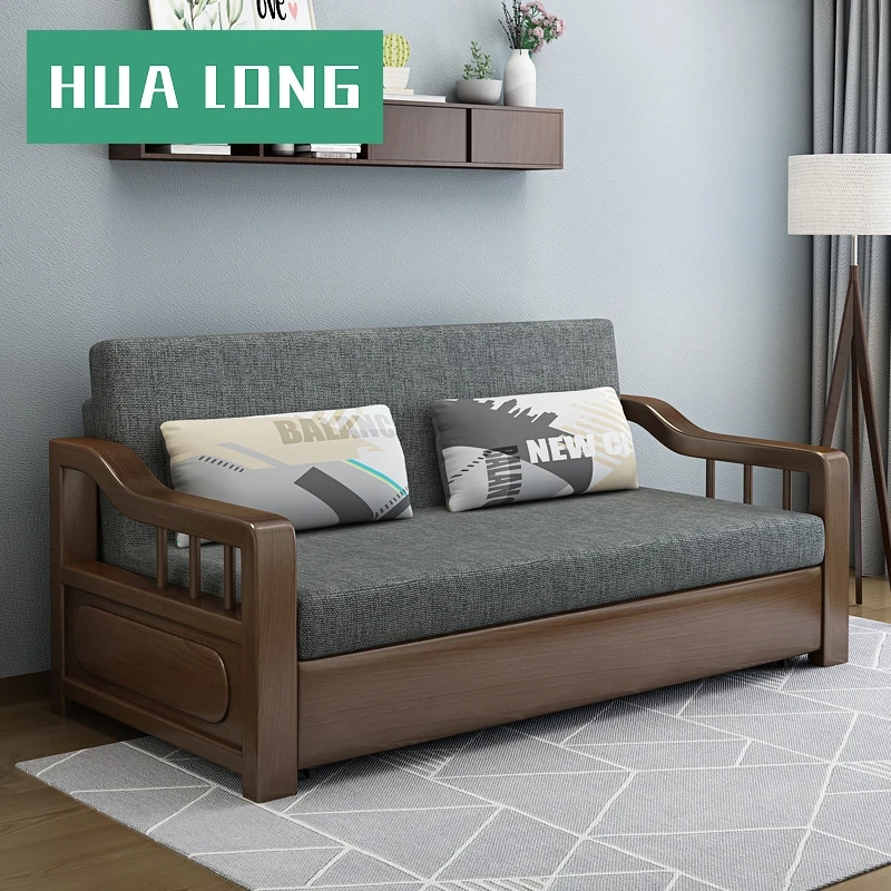 Versatile Foldable Solid Wood Sofa Bed for Living Room - Stylish Pull-Out Design, Perfect for Small Spaces, Trendy Double Bed for Modern Homes