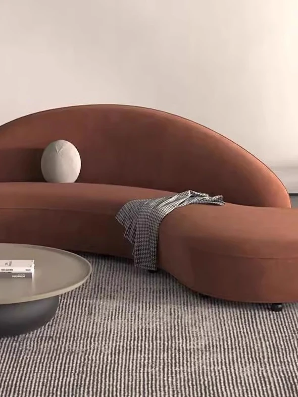 Italian Minimalist Curved High-End Reception Lounge Sofa for Fashion Retail and Designer Sales Areas - Unique Plush Fabric Design