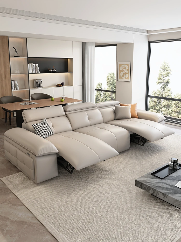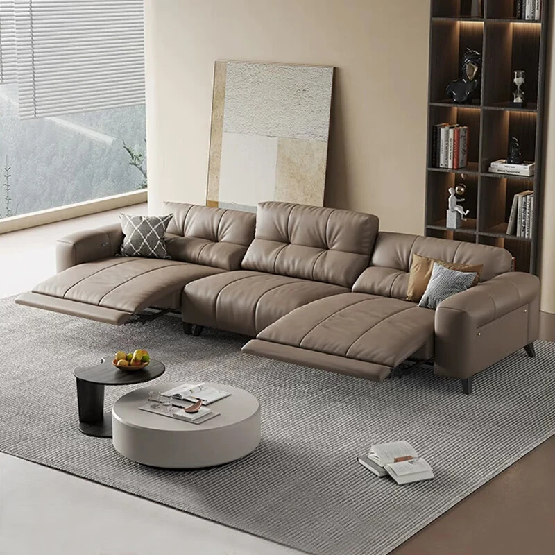 "Luxurious Italian Leather Electric Sofa - Modern Minimalist Design with Wall-Mounted, Stretchable Features for Your Living Room - A Trending Must-Have!"