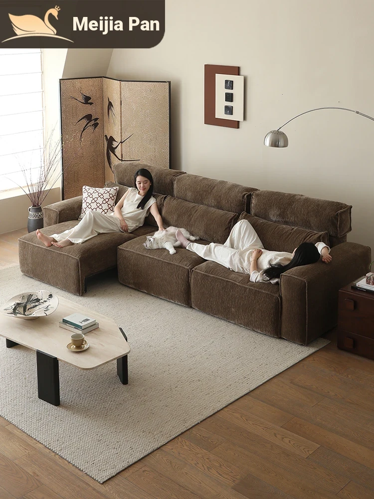 French Chic Vintage Chenille Sofa for Living Room - Elegant Cream Latte Fabric Couch for Small to Large Spaces