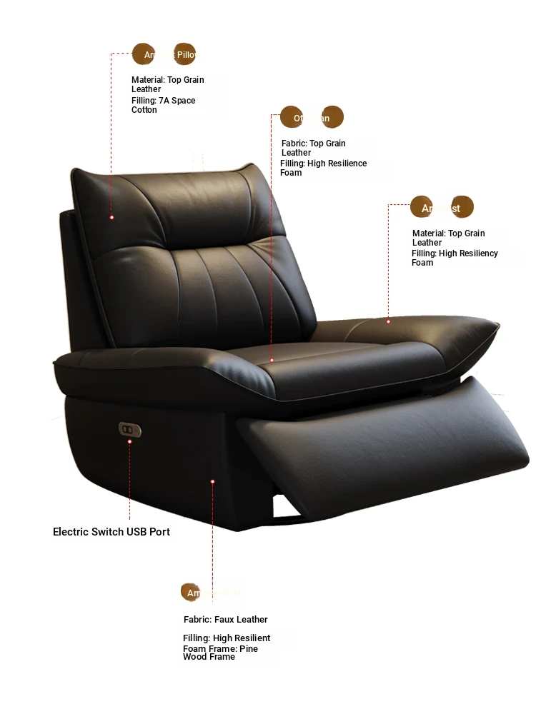 Modern Minimalist Electric Recliner Chair - Versatile Sleeper and Rocking Lounge Chair for Living Room, Upholstered in Premium Top-Grain Leather, Perfect for Relaxation and Comfort