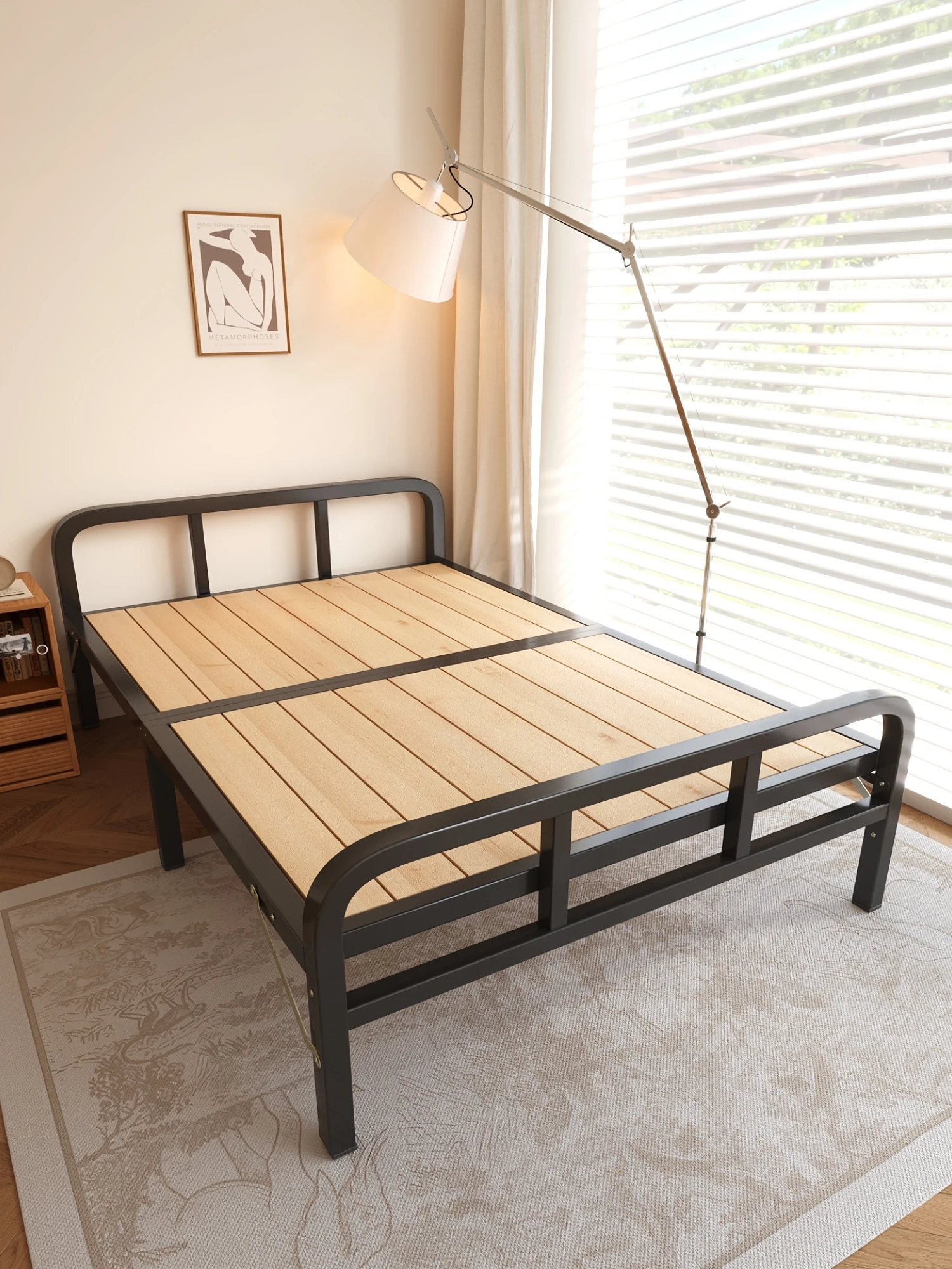 Foldable Iron Single Bed - Durable 1.5m Double Hardboard Bed for Adults, Perfect for Napping and Night Shifts, Sturdy Wooden Frame for Home Use
