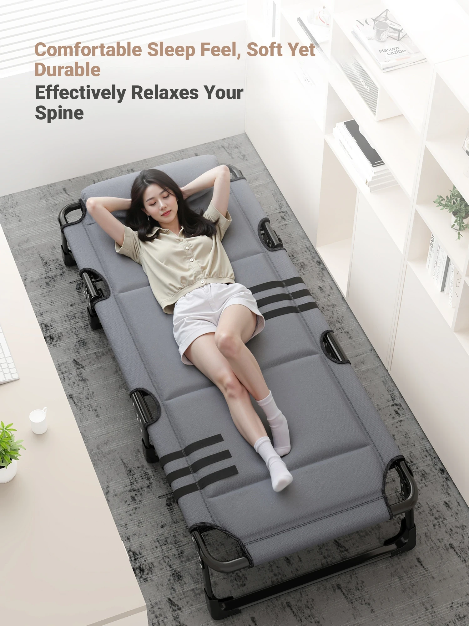 Portable Folding Single Bed for Office & Outdoor Naps - Convenient Lounge Chair for Quick Rest, Ideal for Hospitals and Caregiving, Perfect Military-Grade Camp Bed