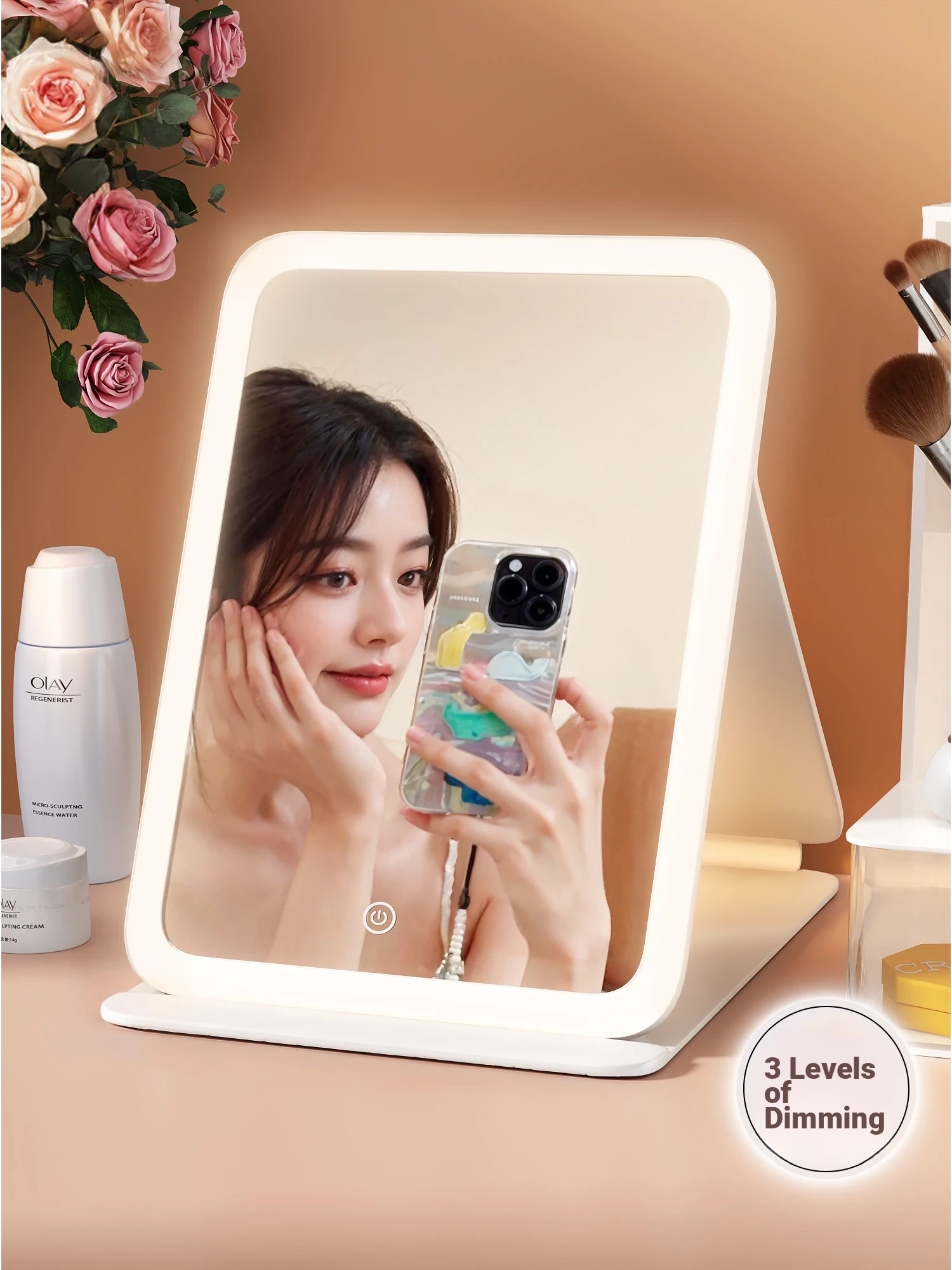 Smart LED Makeup Mirror - Foldable Large Vanity Mirror for Home, Bedroom, and Dormitory - Perfect for Students and Desktop Use