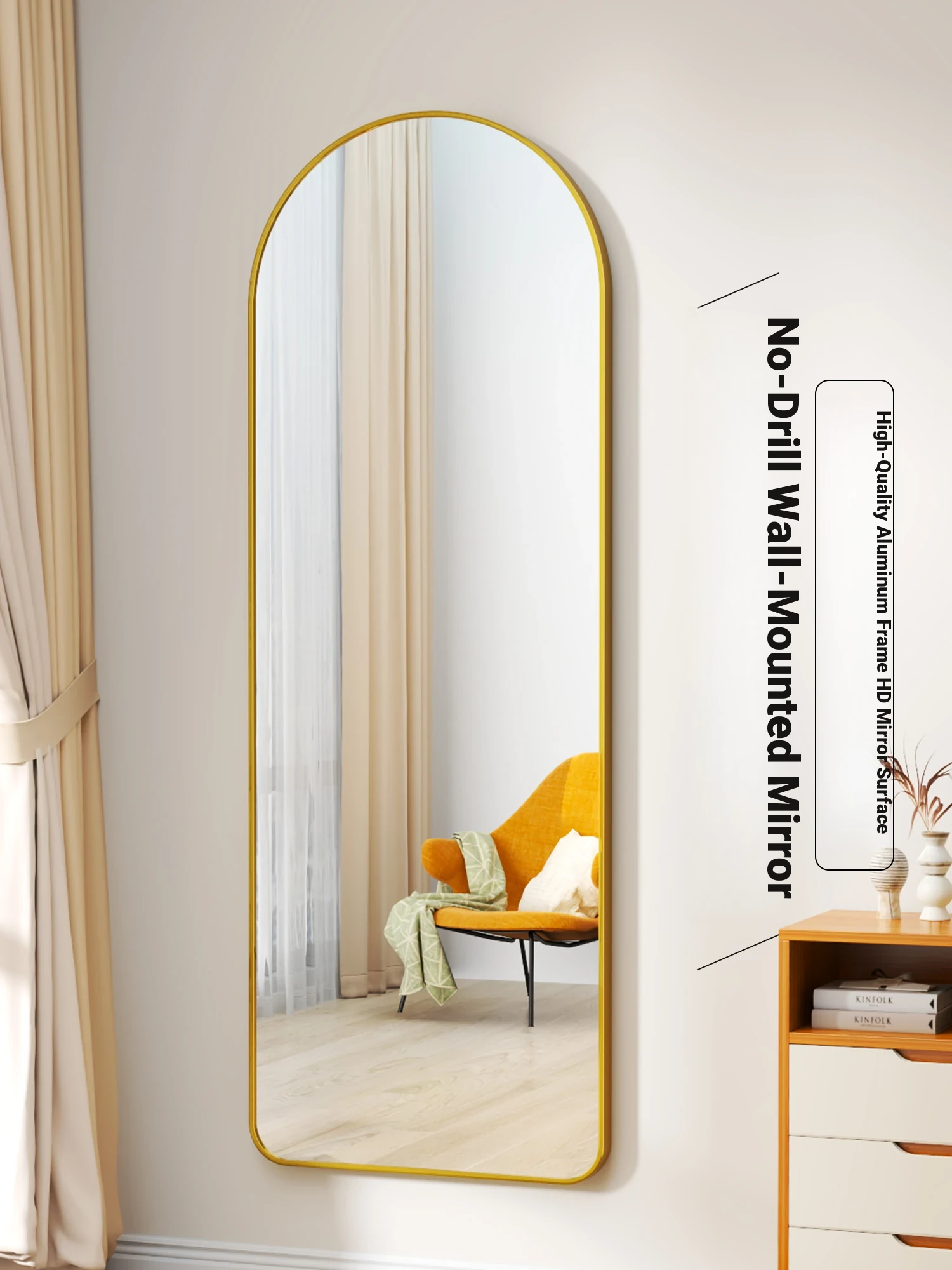 Self-Adhesive Wall-Mounted Aluminum Alloy Full-Length Mirror - No Drilling Required, Arched Design for Home Use, Perfect for Dressing Rooms and Bedrooms, Stylish and Space-Saving!