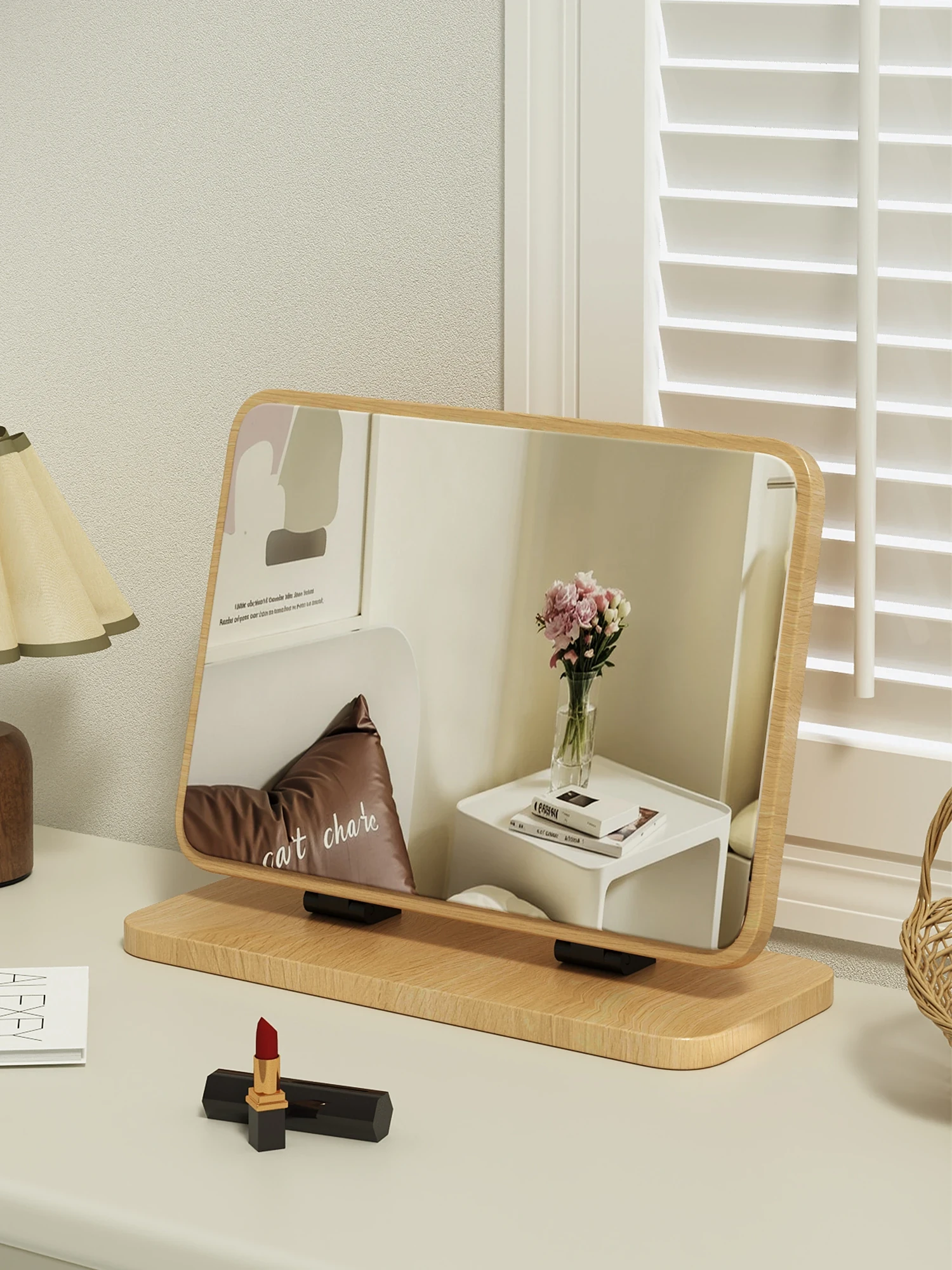 Stylish Rotatable Wooden Makeup Mirror - Large Desktop Vanity Mirror for Home, Ideal for Students in Dorms, Perfect for Effortless Beauty Routines