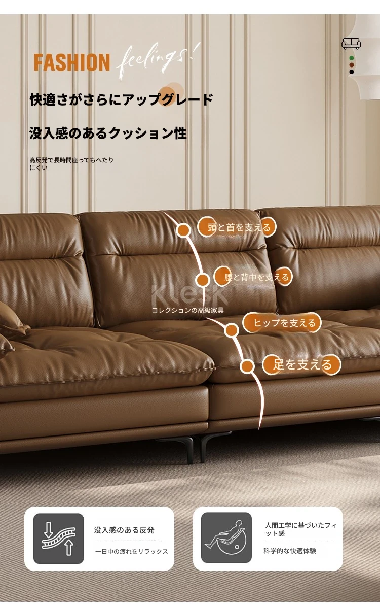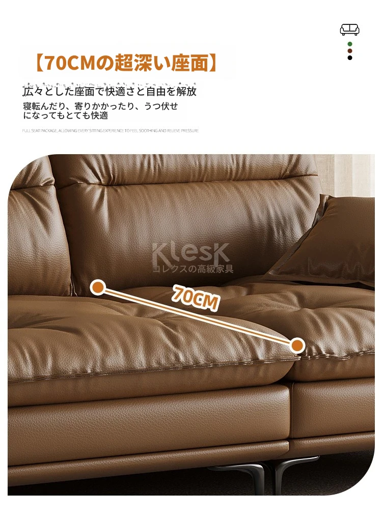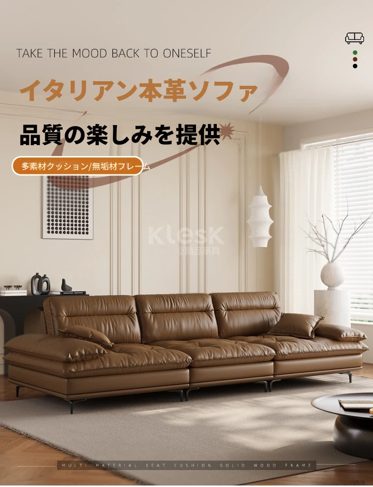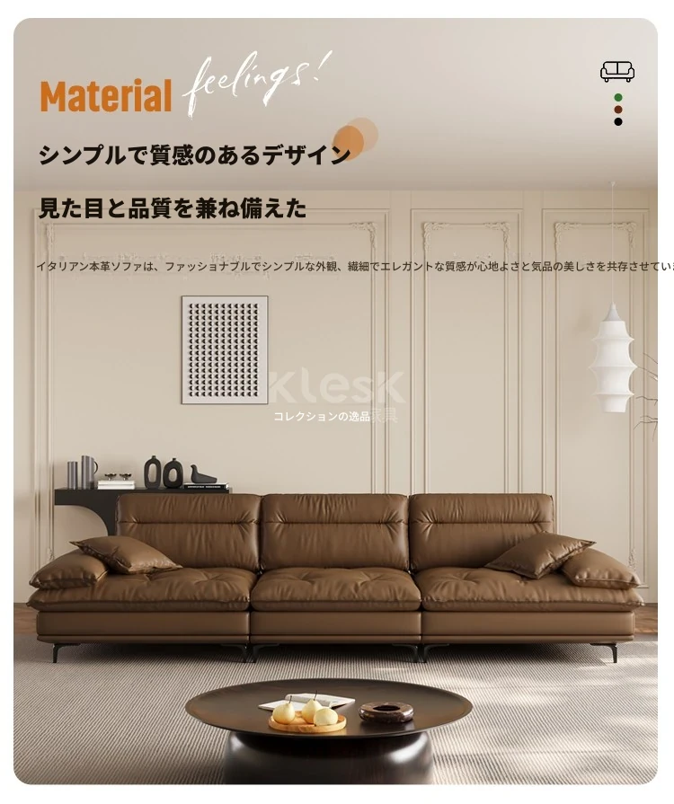 国補2025 イタリアンラグジュアリー 本革 超ワイドシート 深さのあるセーリングソファ モダンミニマリスト リビングルームに最適 小型・中型住居にもぴったり!