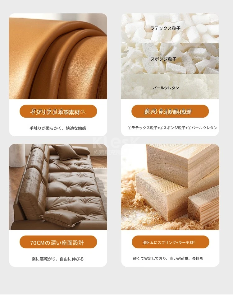 4人用2.6m【イタリア輸入本牛革】ラテックス粒子+太めの輸入落葉松フレーム】.
