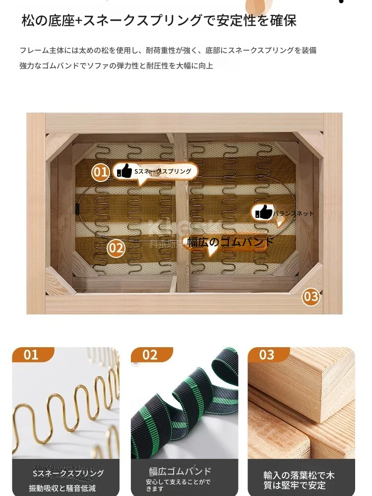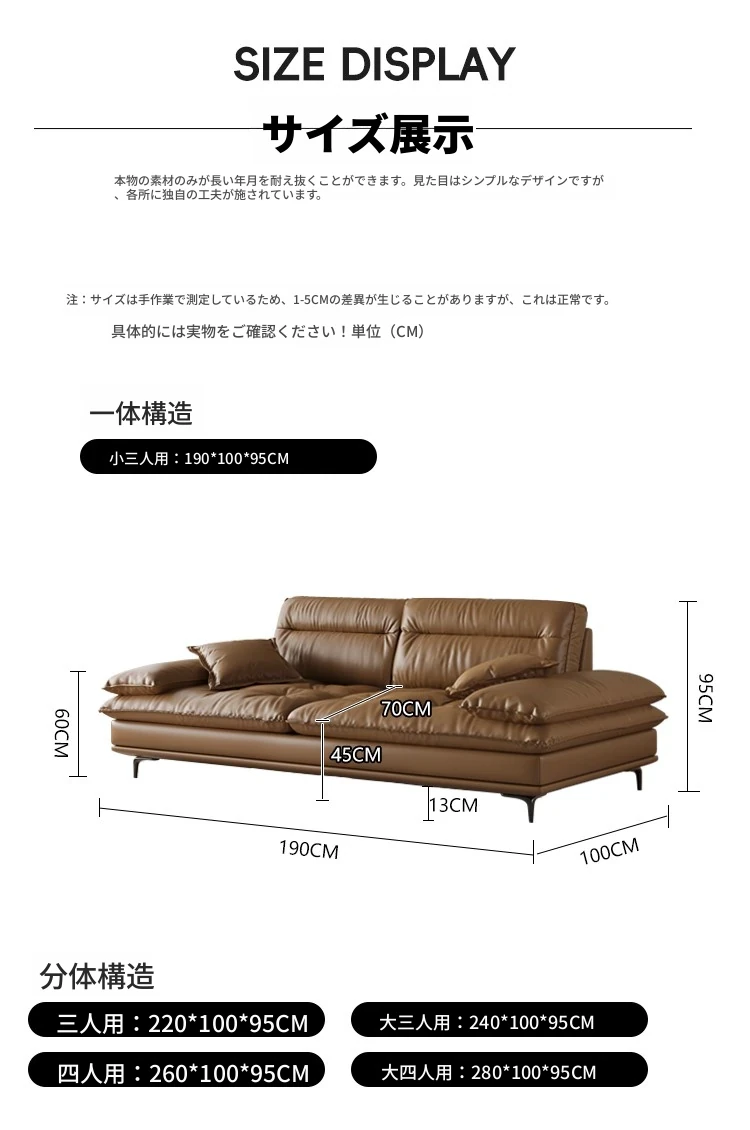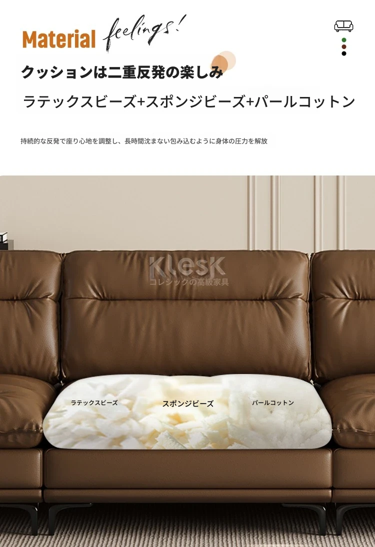 3人用2.2m【イタリア輸入本牛革】ラテックス粒子+太めの輸入落葉松フレーム】.