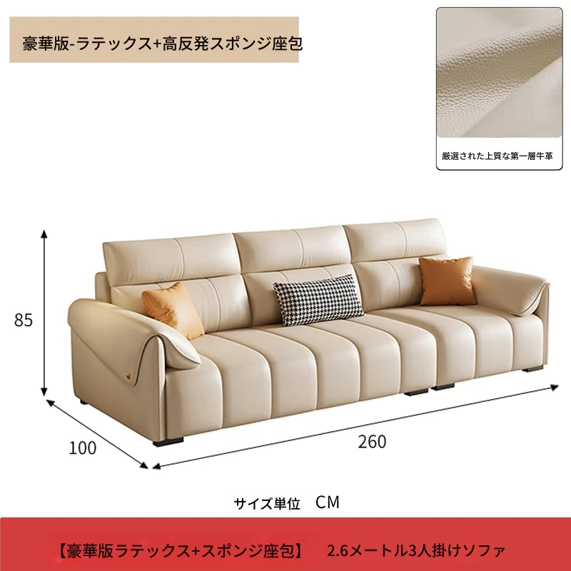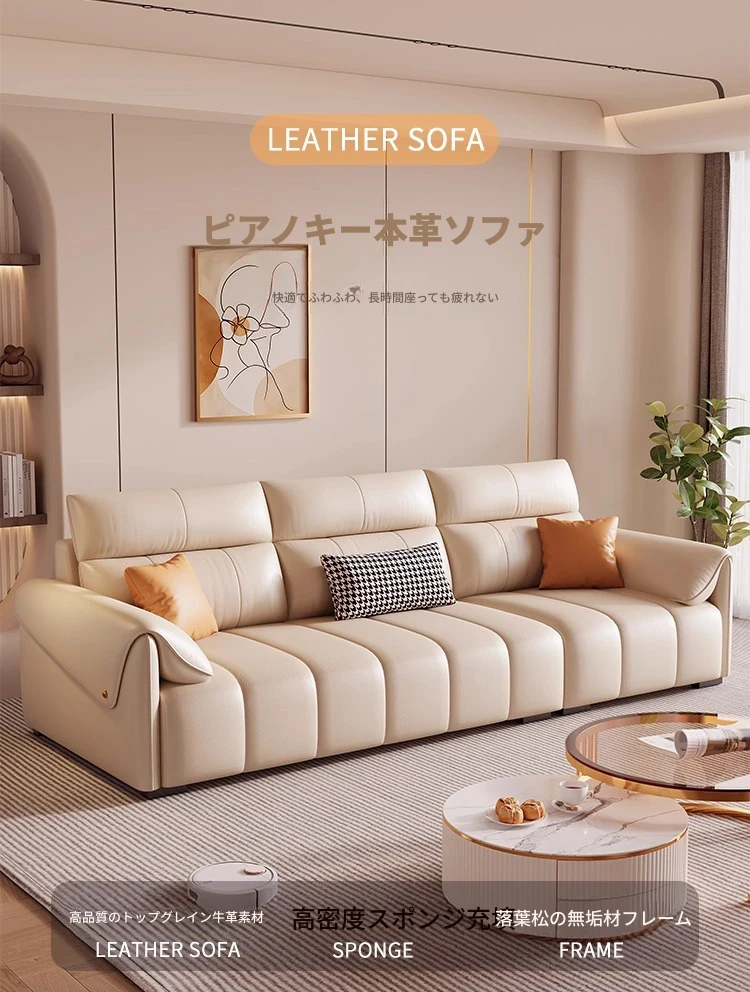 2025年新作!真皮三人沙发 - 家庭用のシンプルモダンデザイン、上質なトップレザーを使用したラグジュアリーな直排ソファ。快適さとスタイルを兼ね備えた理想的なリビングルームの主役!