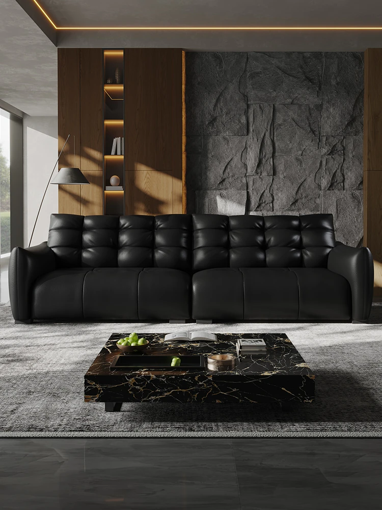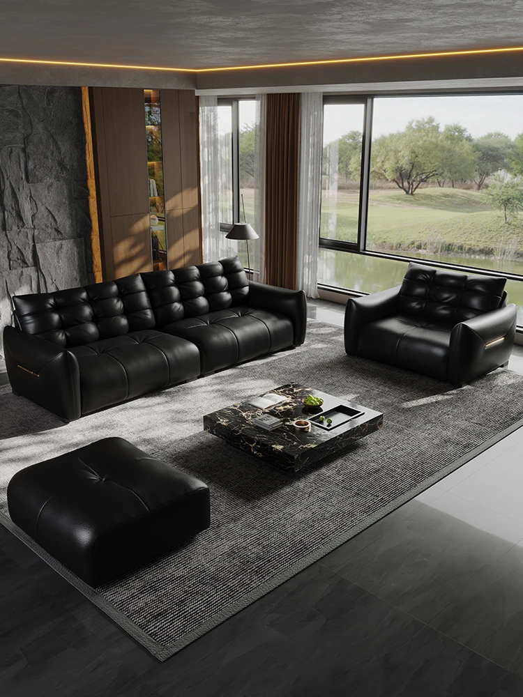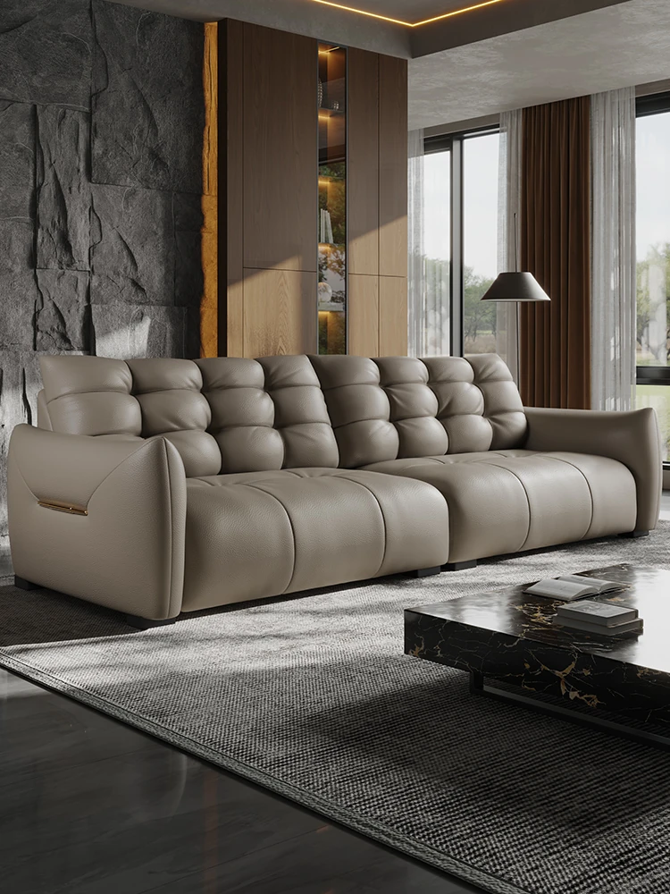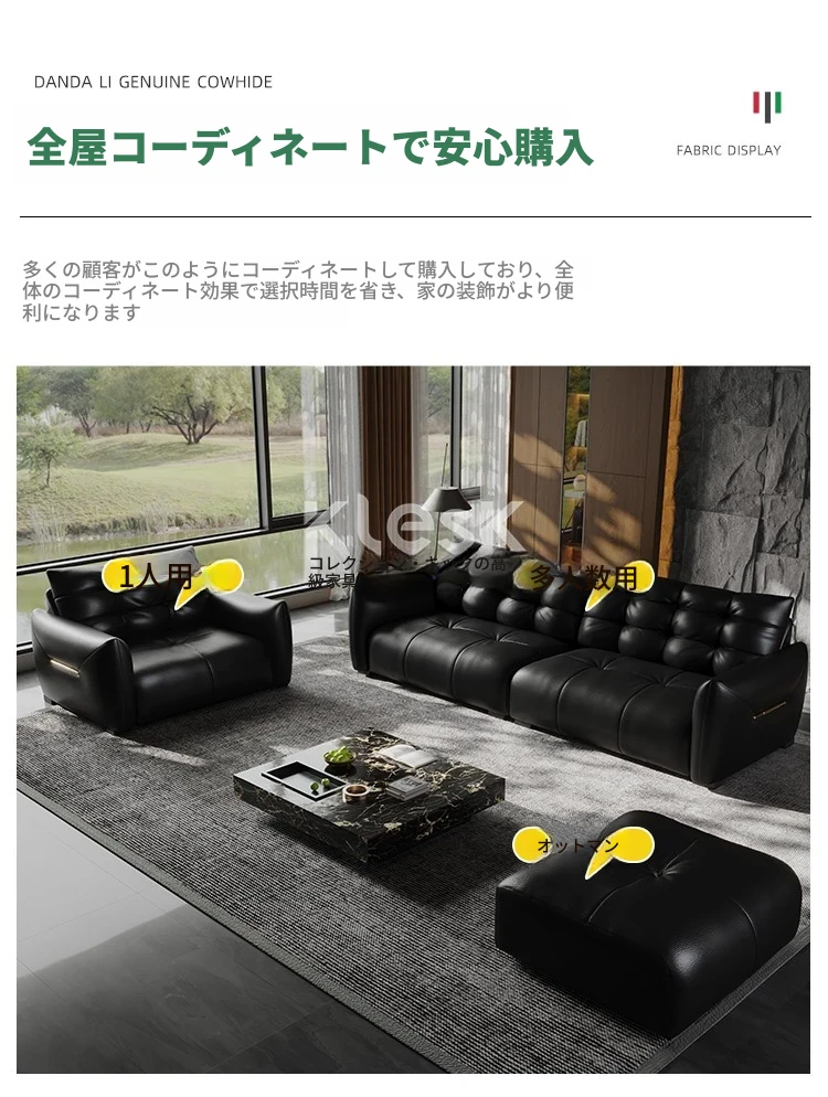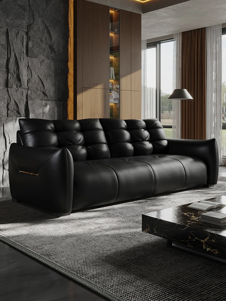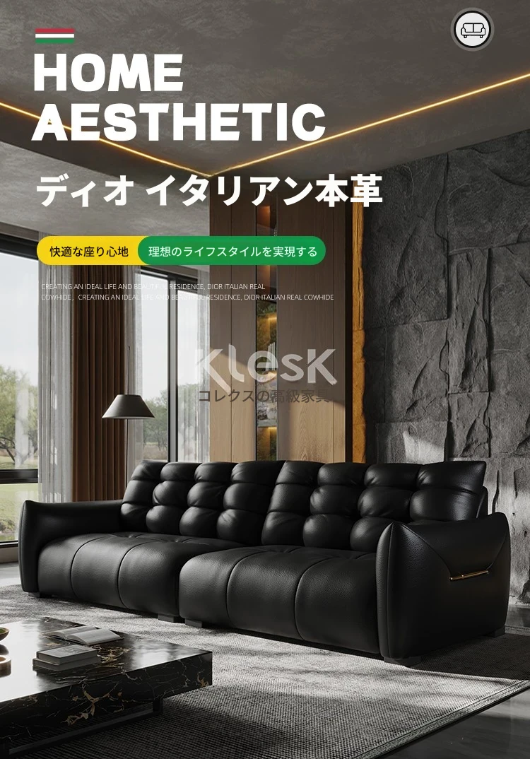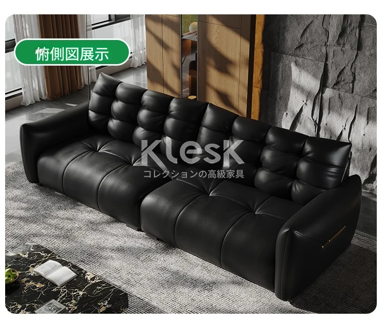 国補2025新作!イタリアンミニマリズムの真牛革ソファー—現代的でシンプルなリビングにぴったり!大黒熊デザインの小型ハウス向け皮革ソファで、居心地の良い空間を演出します。