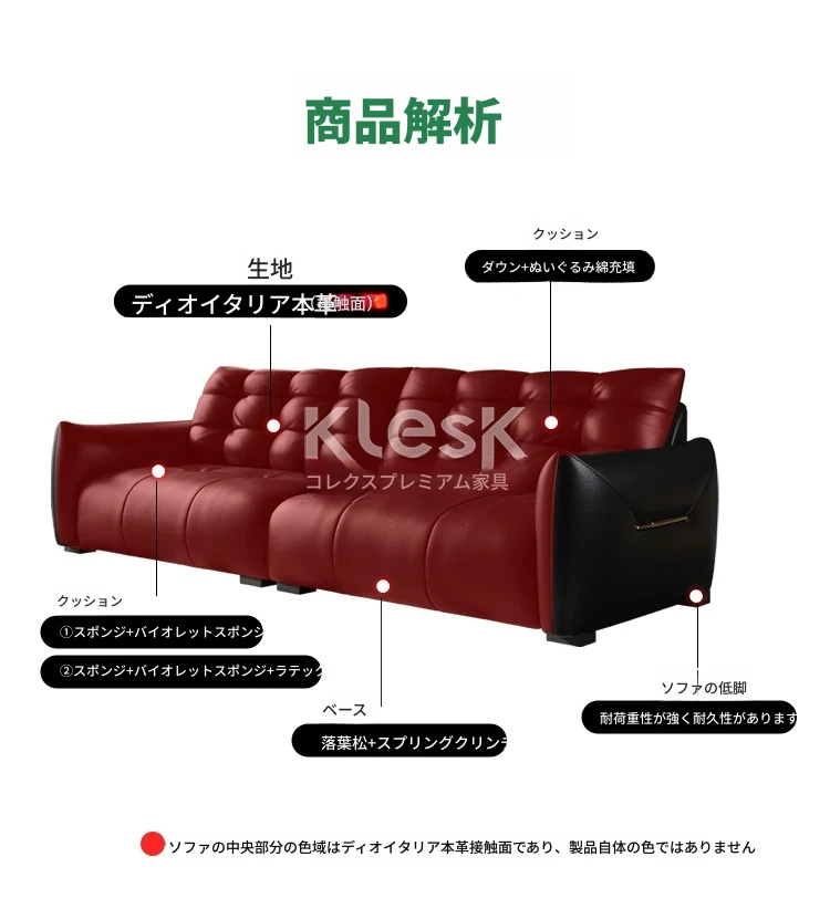 大三人用2.4メートル【エクスクルーシブ版-厚手イタリア本革+羽毛クッション+ラテックス】.