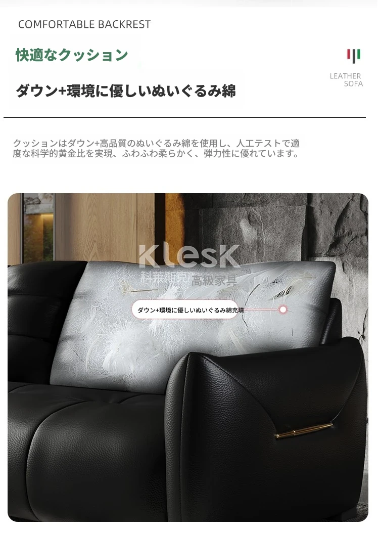 三人用2メートル【フラッグシップ版-厚手イタリア本革+羽毛クッション】.