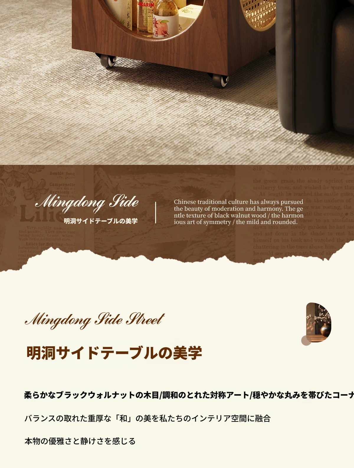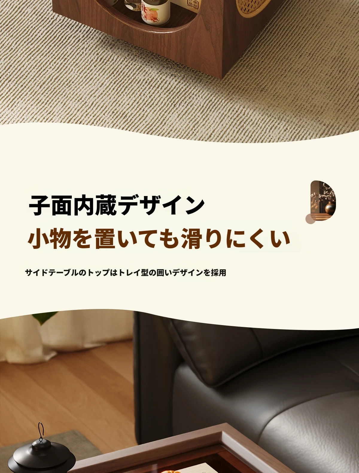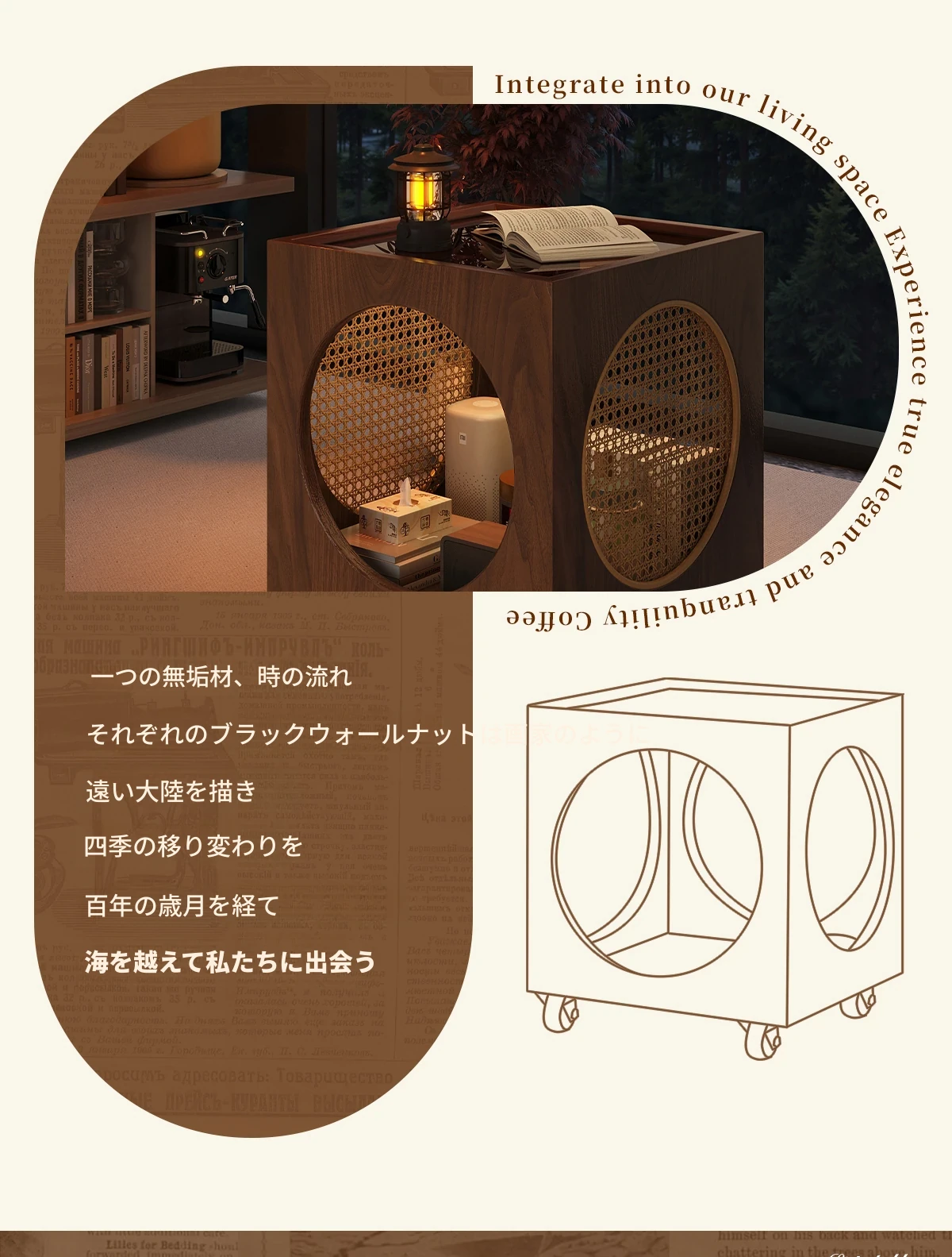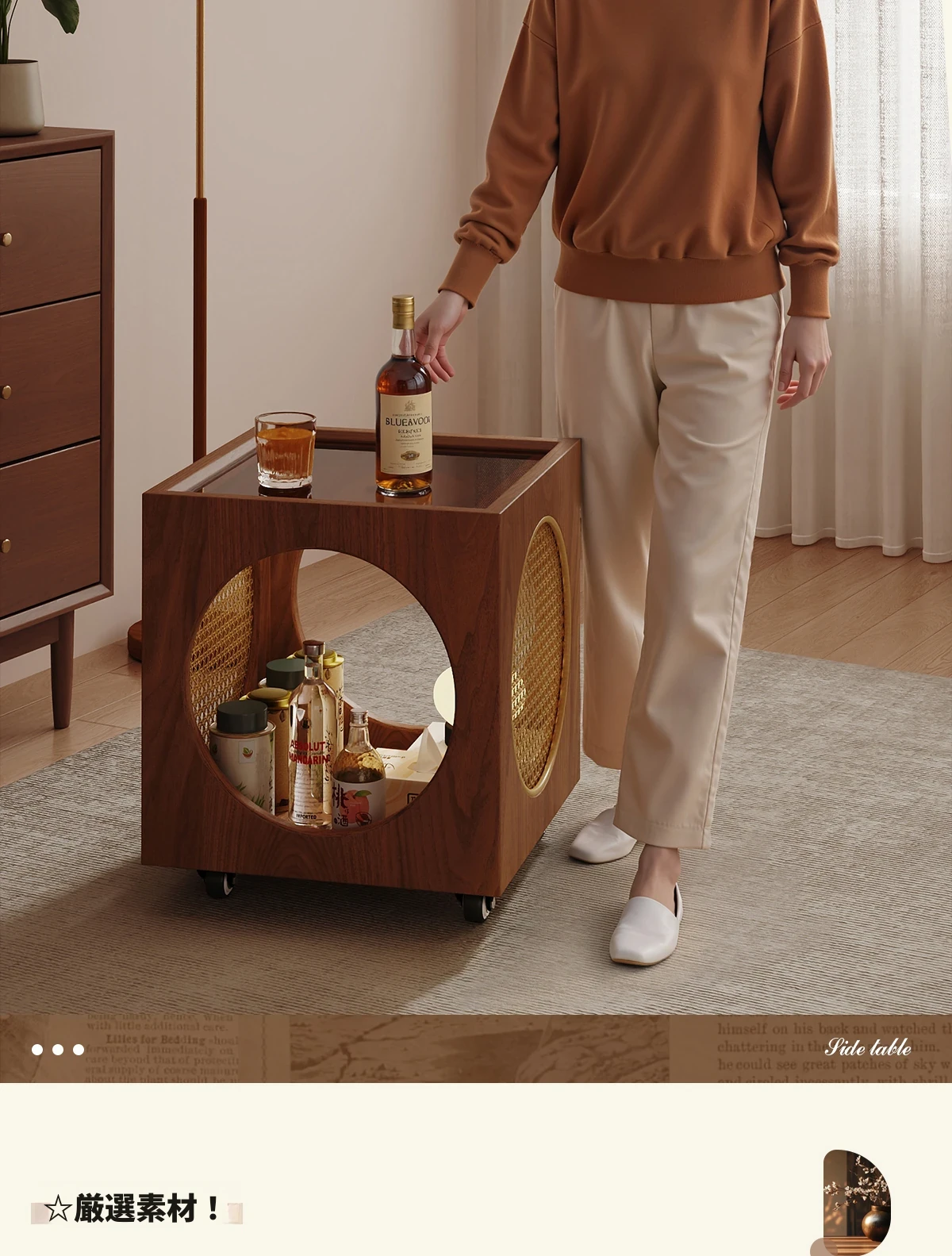 2025年新作!移動式無垢材リビングテーブル - 小型住宅に最適なウォールナット製のモダンな茶卓。バルコニーやリビングにぴったり!