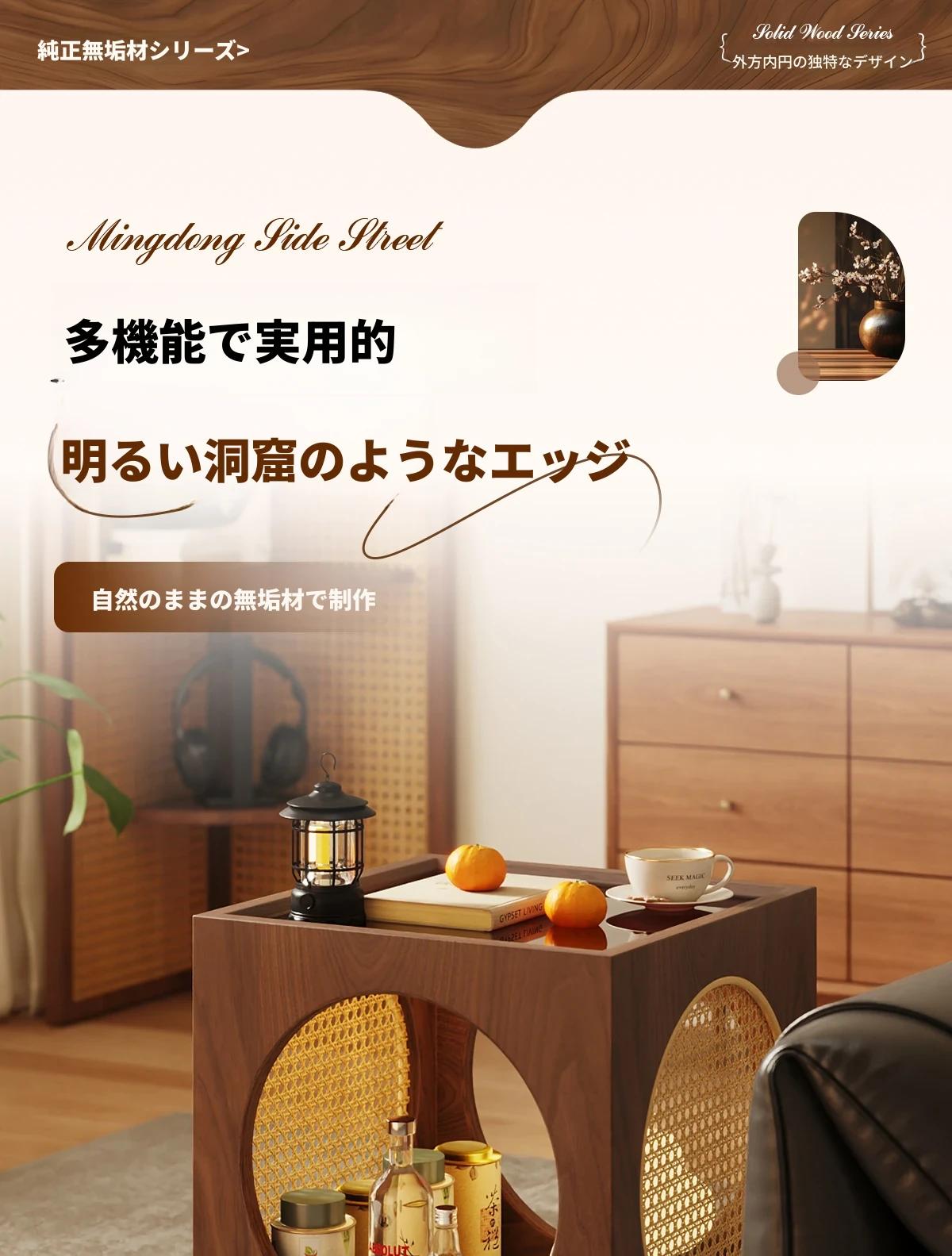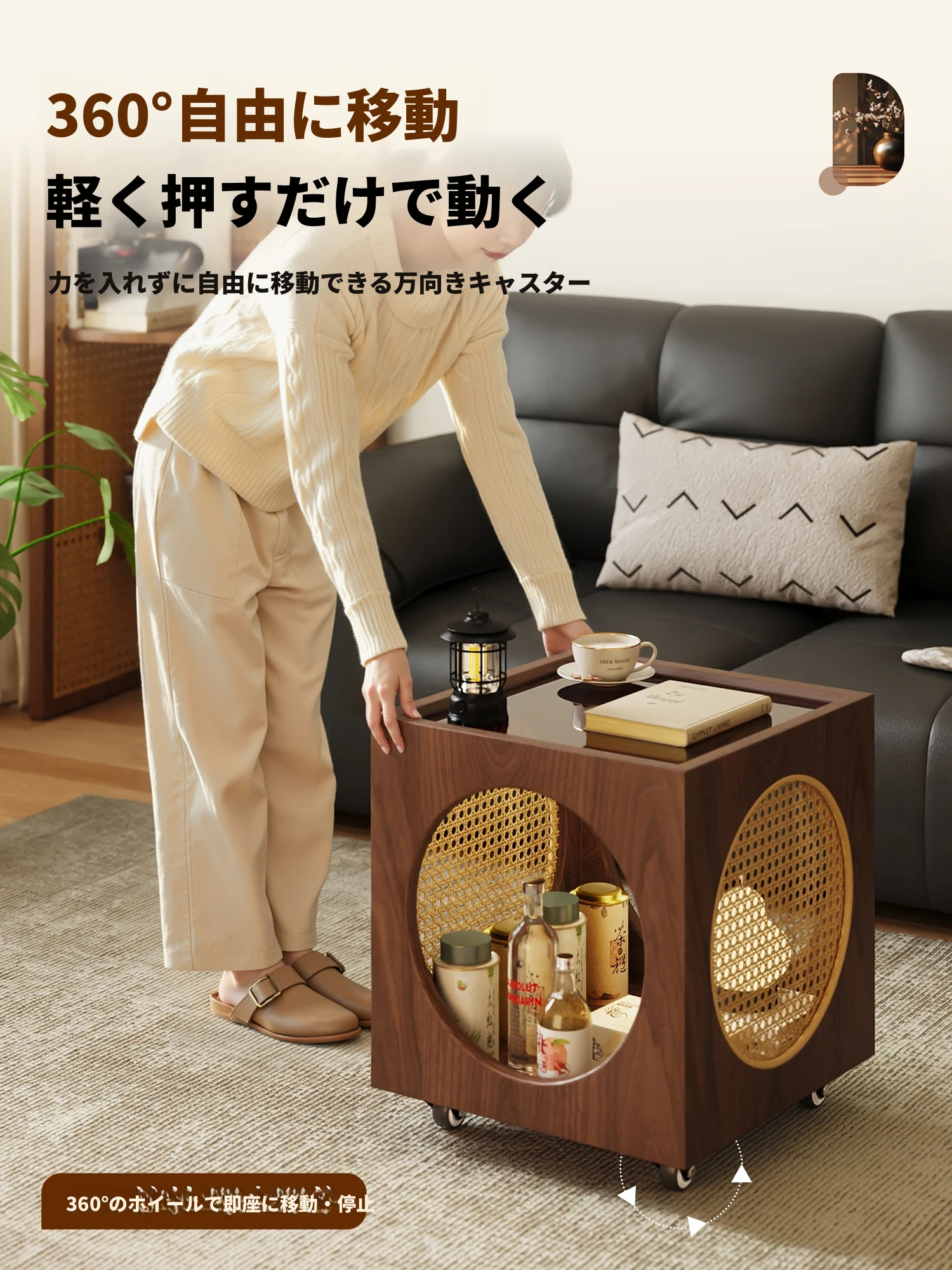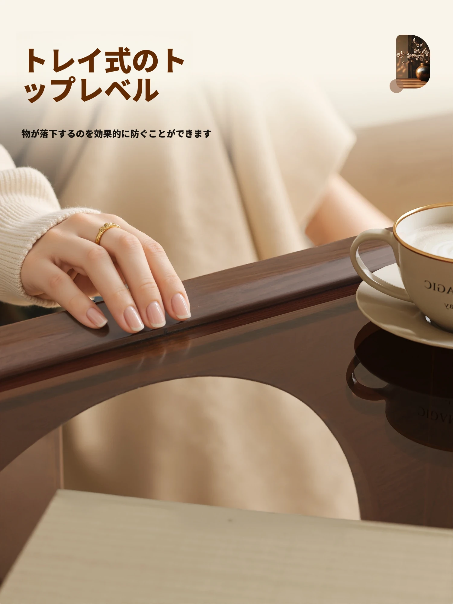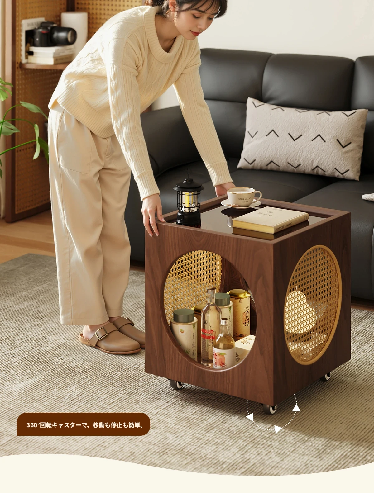 2025年新作!移動式無垢材リビングテーブル - 小型住宅に最適なウォールナット製のモダンな茶卓。バルコニーやリビングにぴったり!