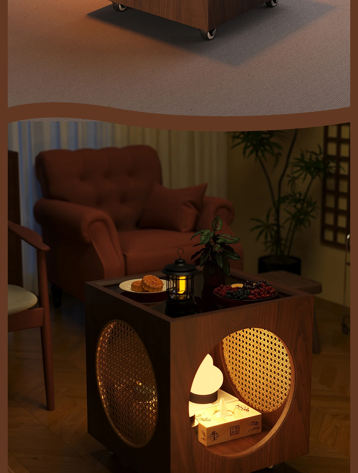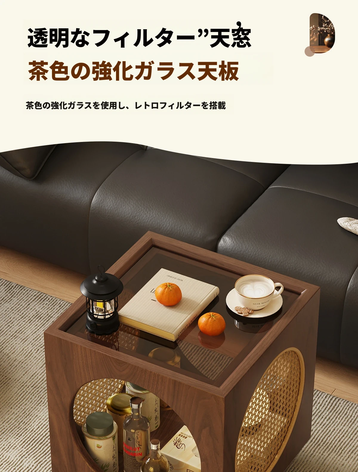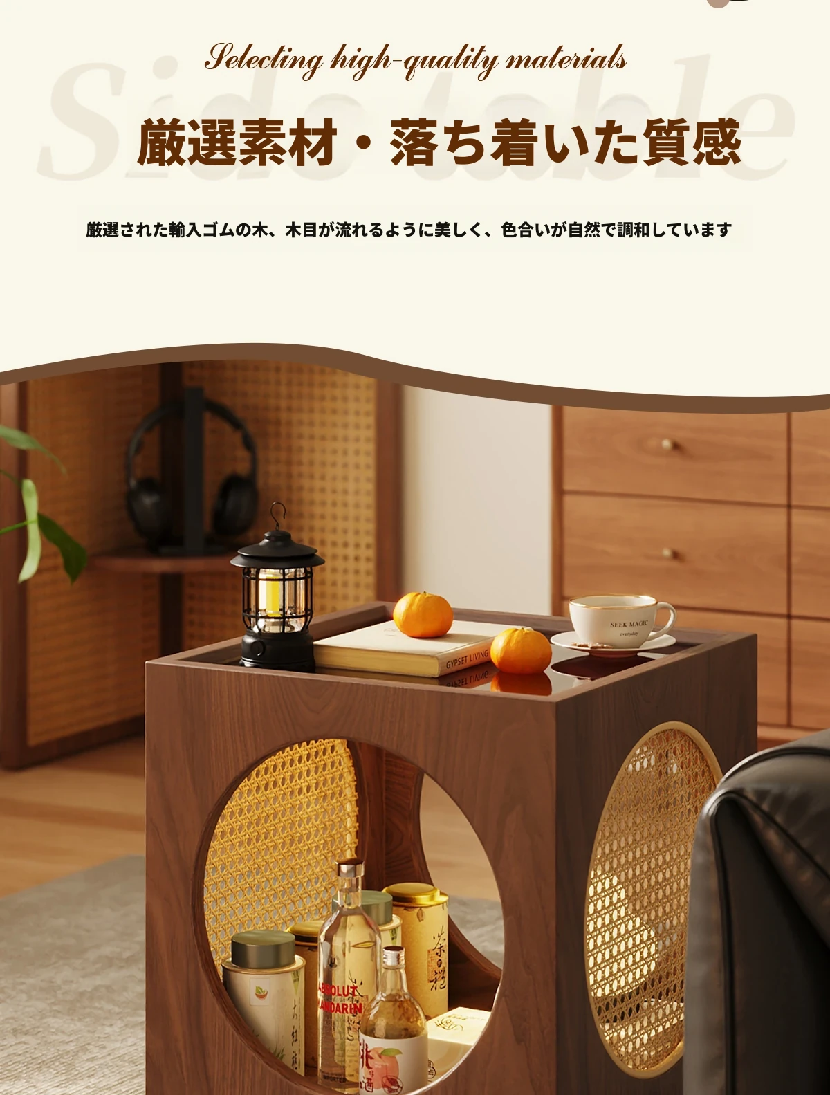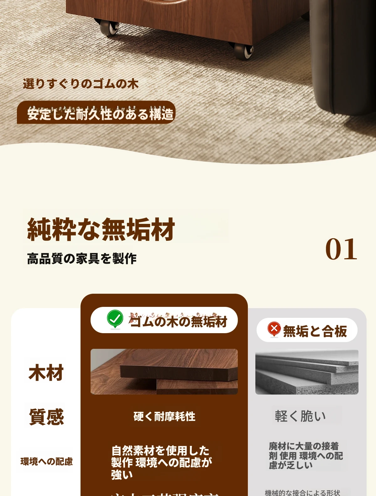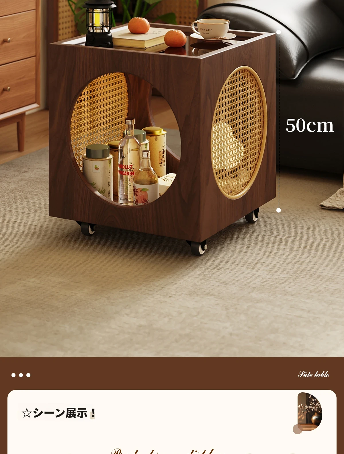 2025年新作!移動式無垢材リビングテーブル - 小型住宅に最適なウォールナット製のモダンな茶卓。バルコニーやリビングにぴったり!