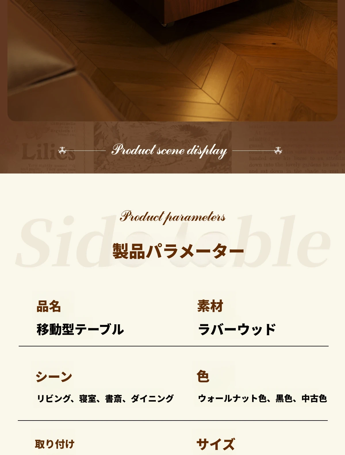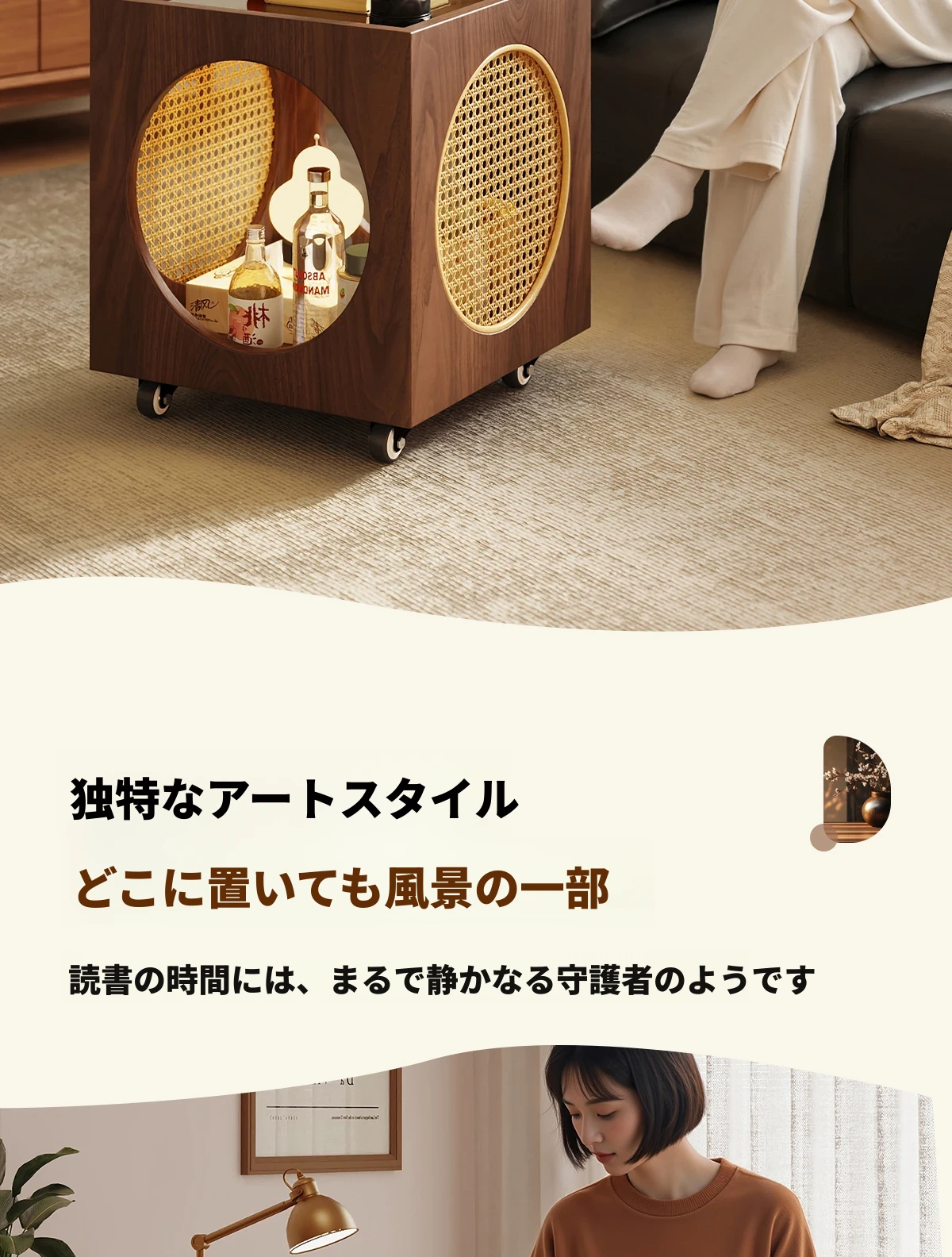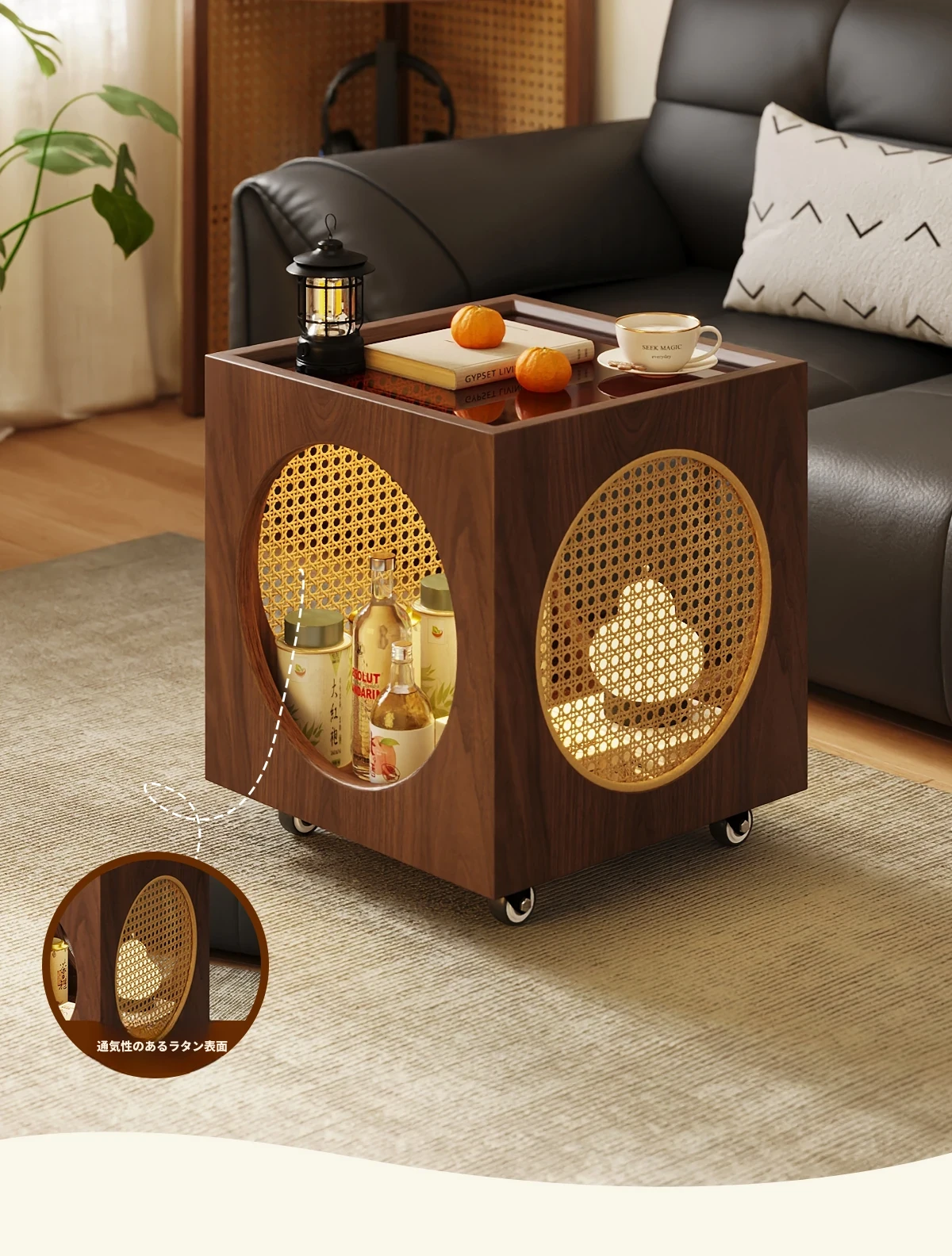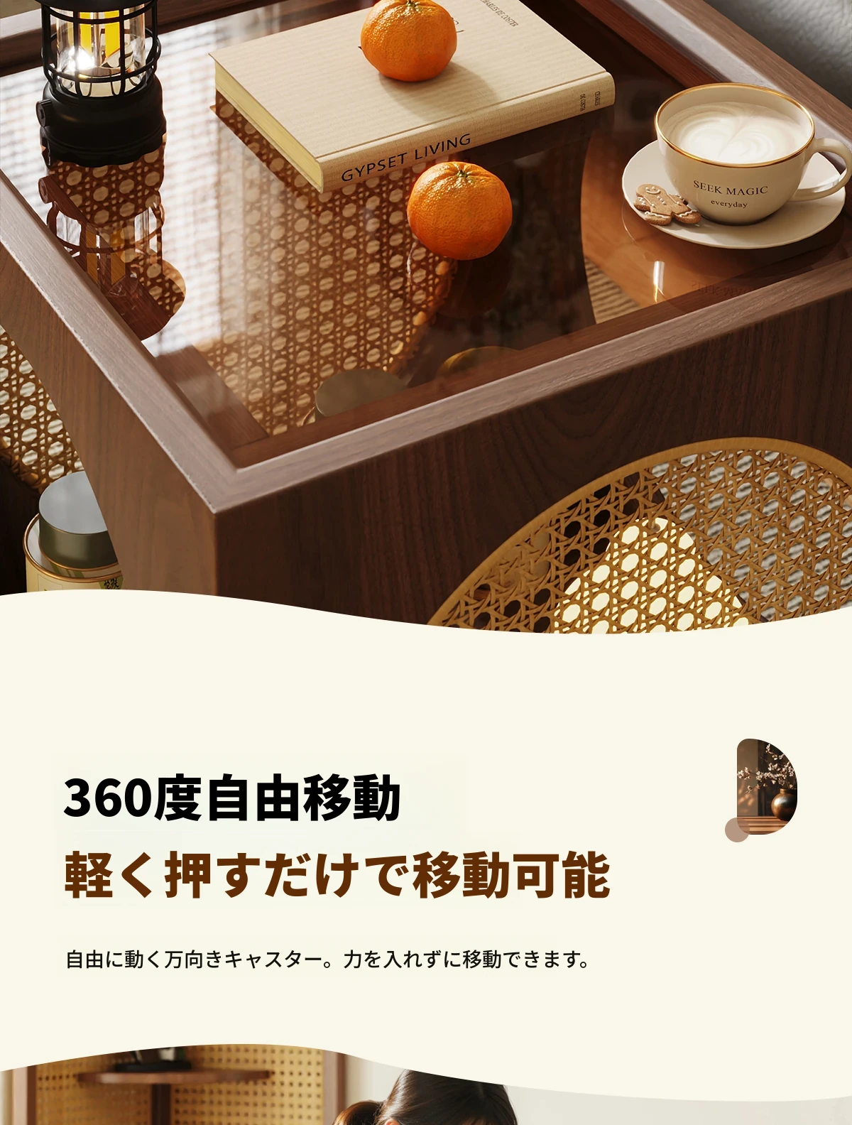 2025年新作!移動式無垢材リビングテーブル - 小型住宅に最適なウォールナット製のモダンな茶卓。バルコニーやリビングにぴったり!