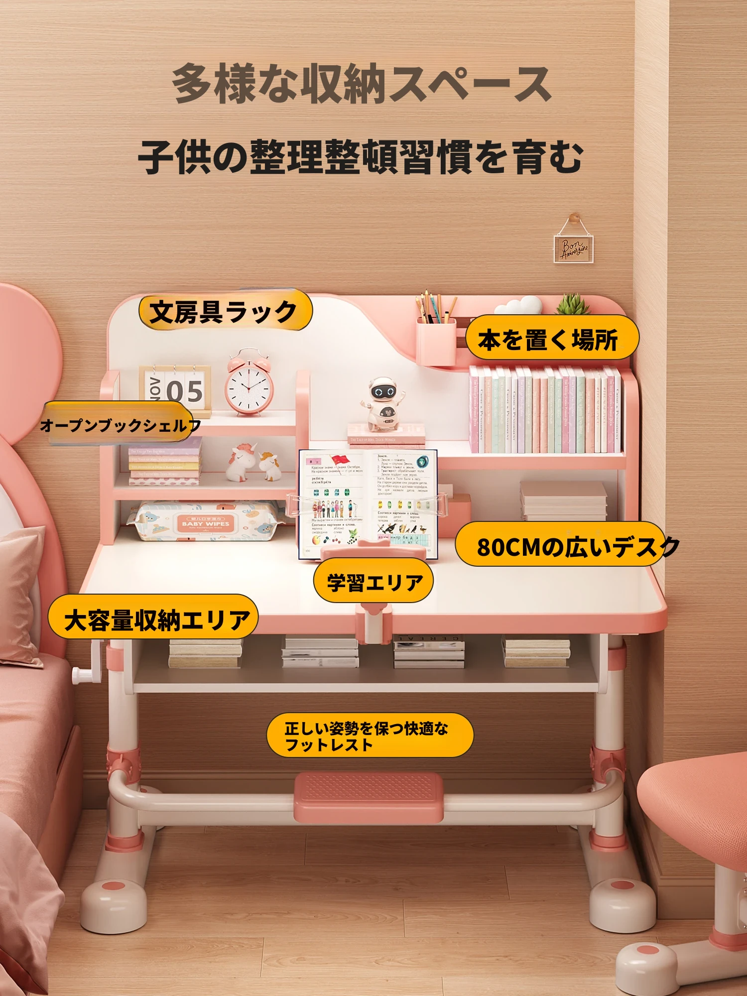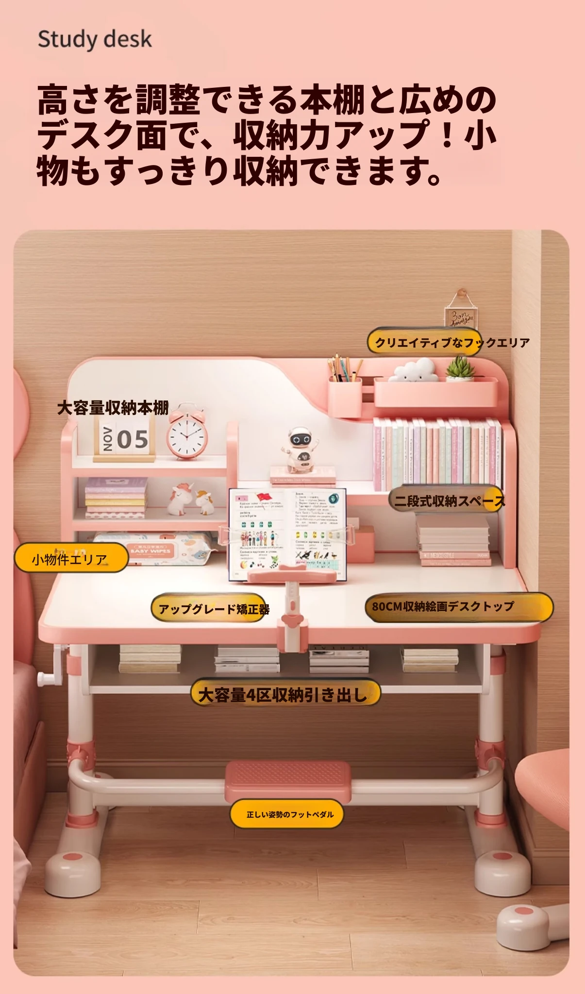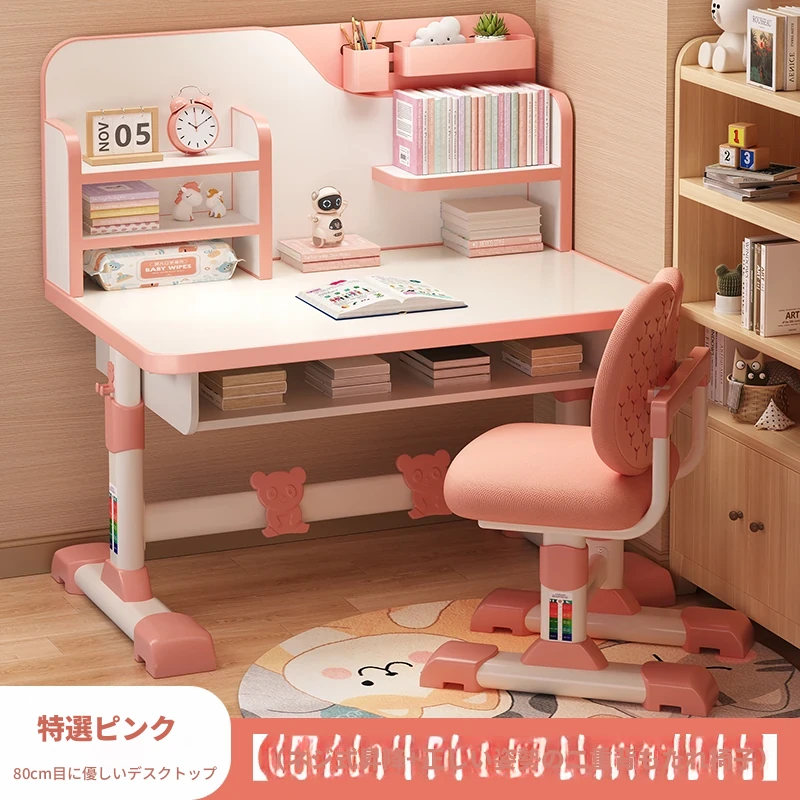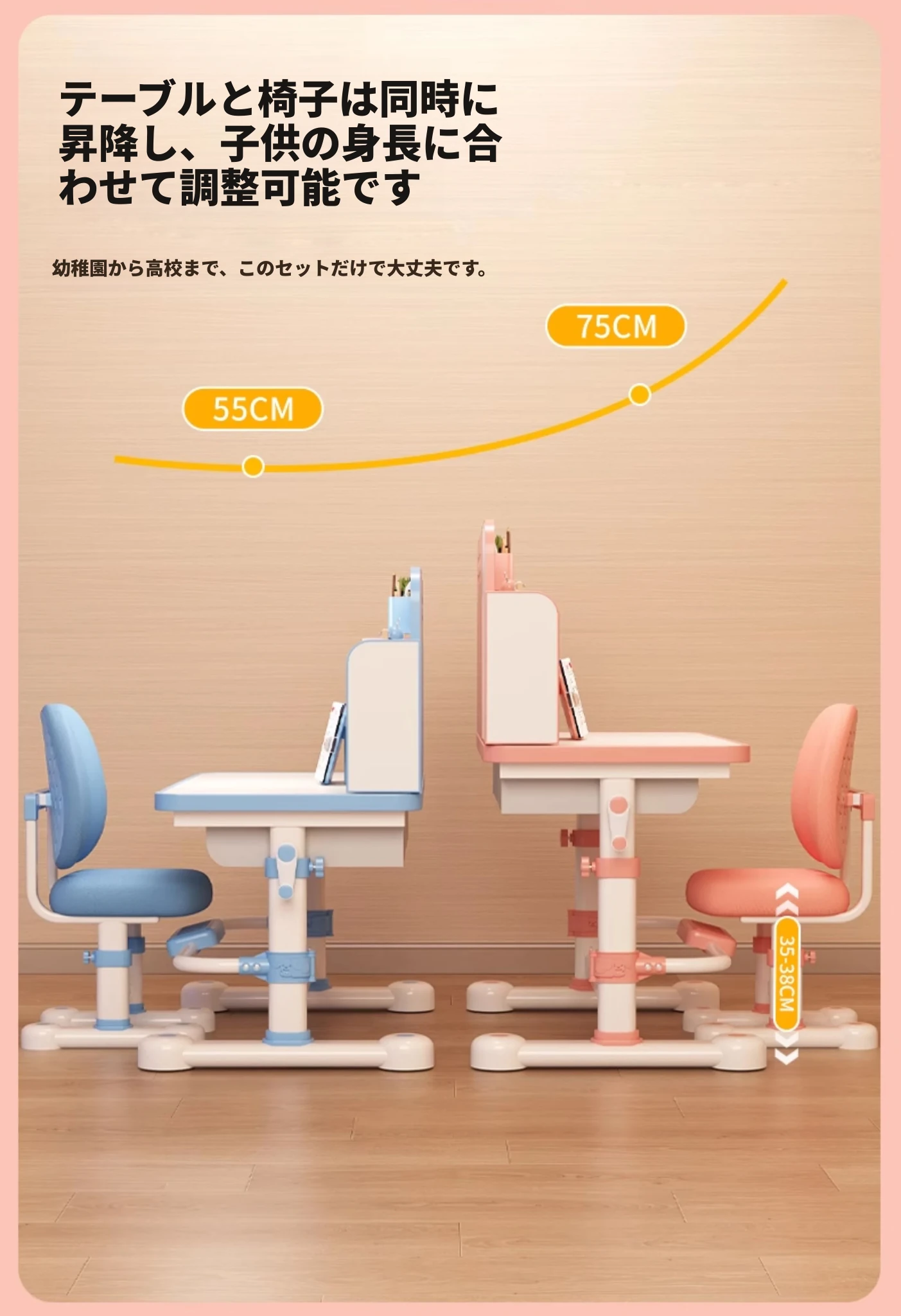 子供用学習デスク|小学生向け|家庭用書斎デスク|女の子のための宿題デスク|調整可能なデスクと椅子のセット|快適な勉強環境を提供!