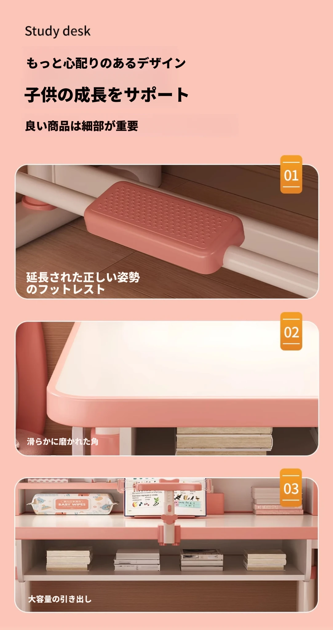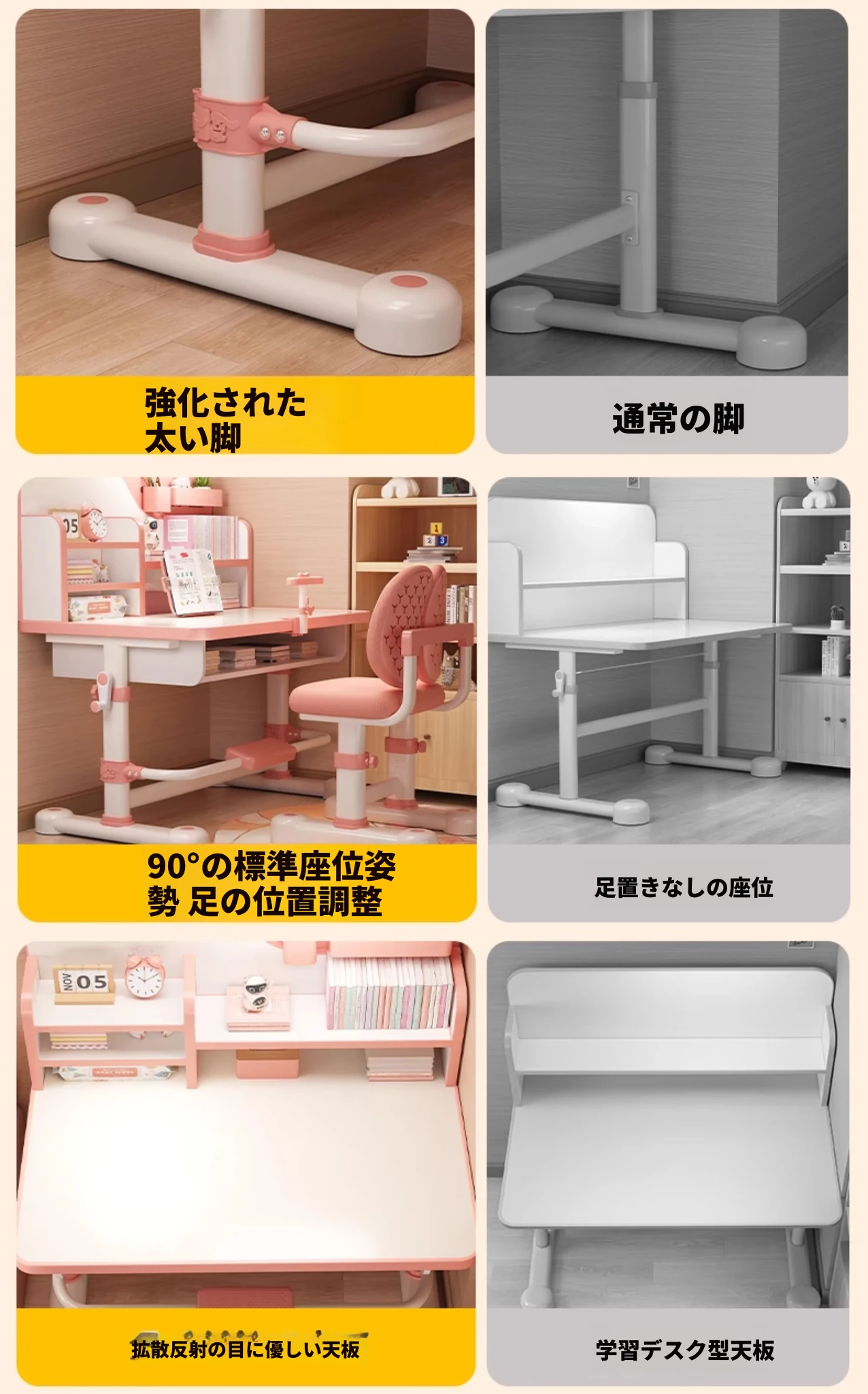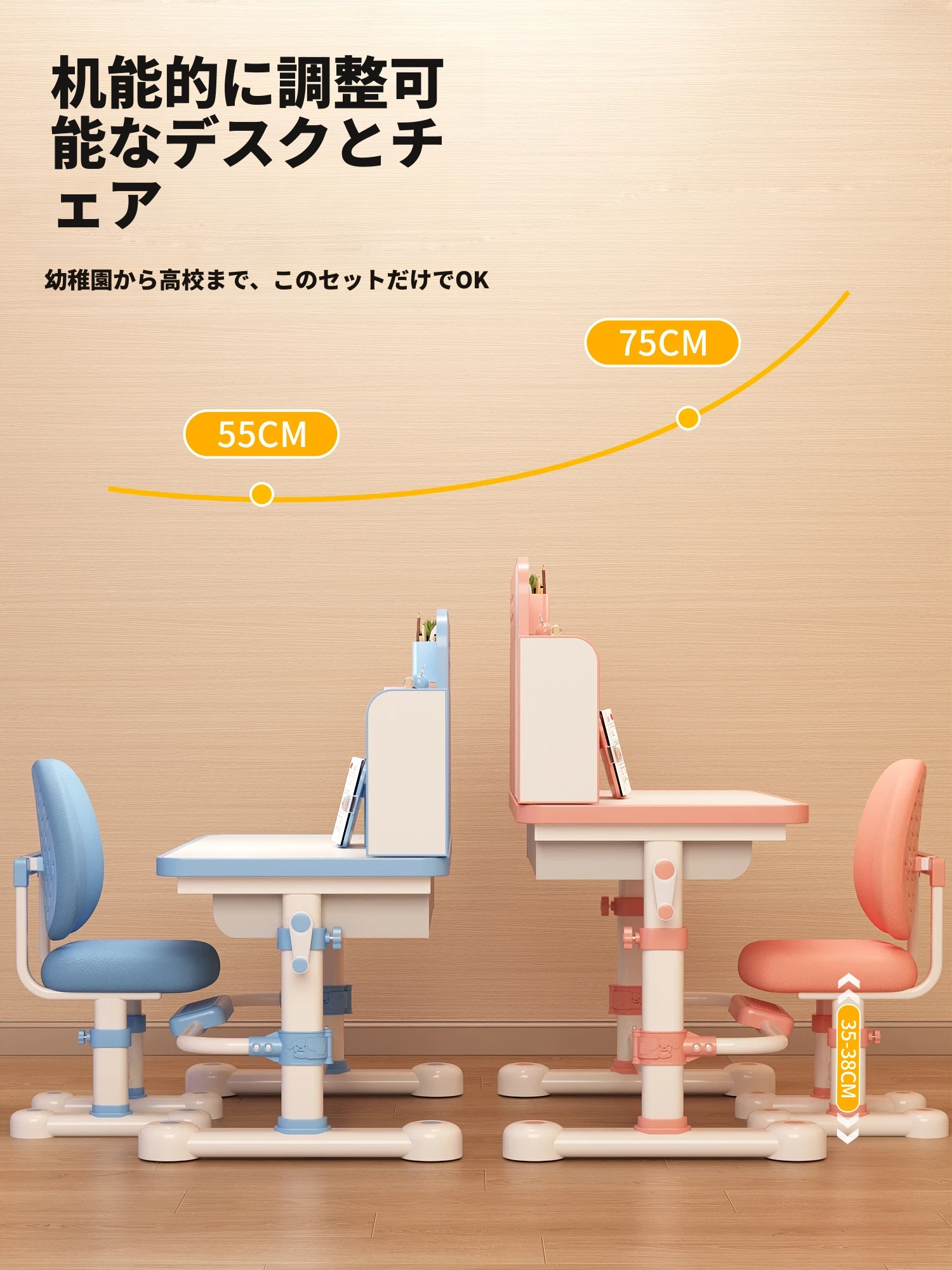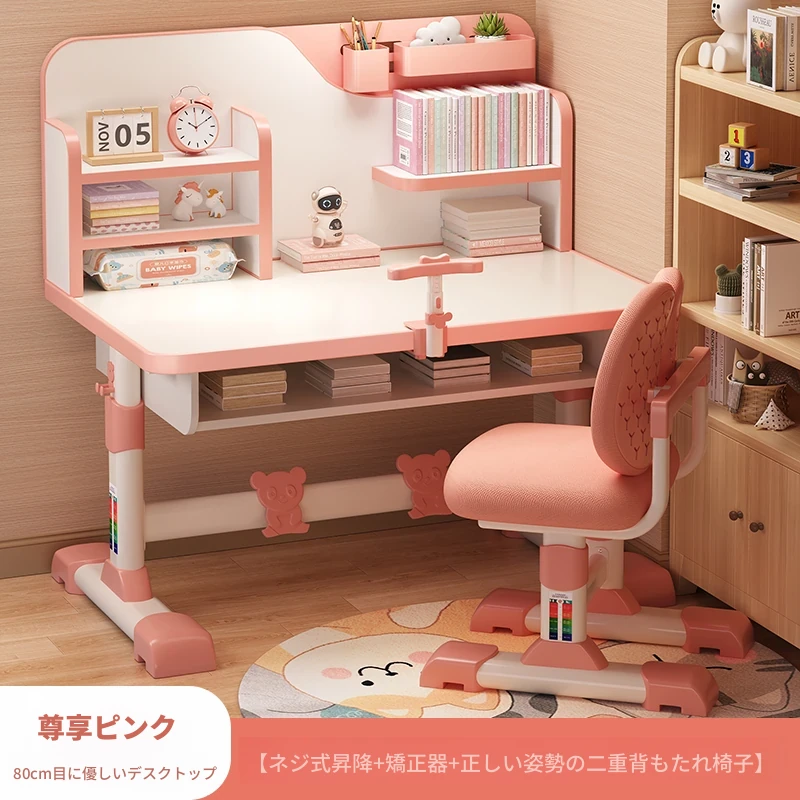 子供用学習デスク|小学生向け|家庭用書斎デスク|女の子のための宿題デスク|調整可能なデスクと椅子のセット|快適な勉強環境を提供!