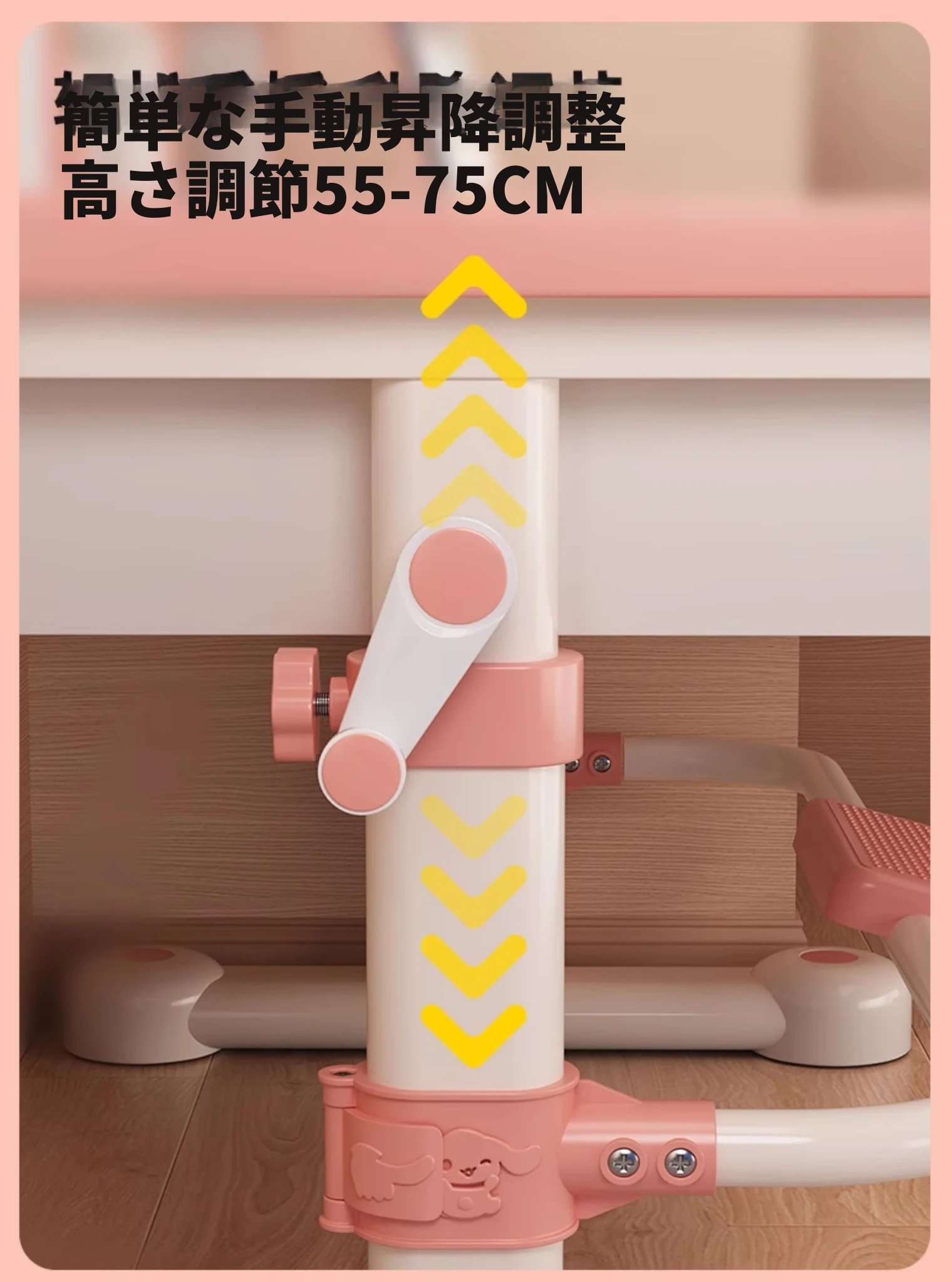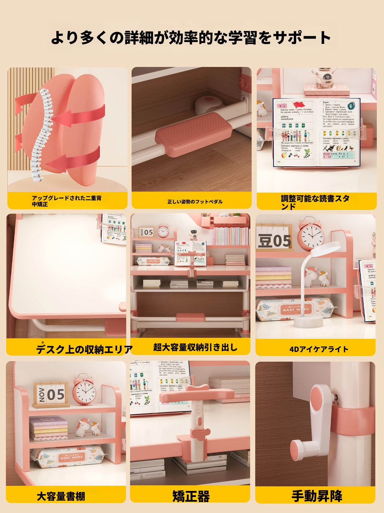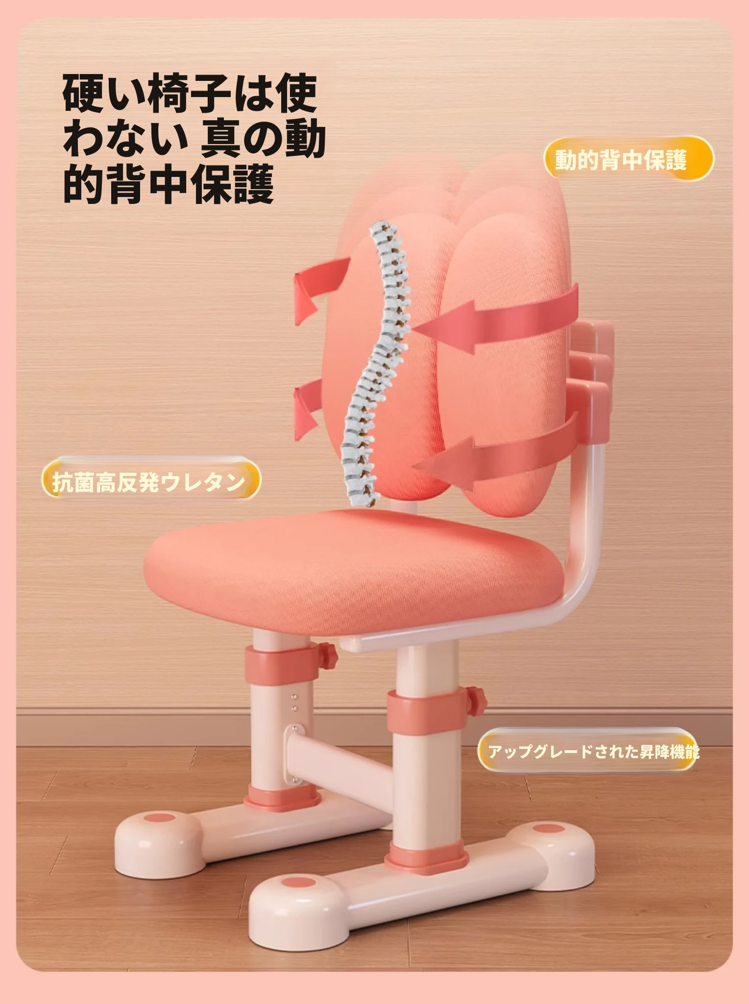 ⭐強化型テーブル・チェア脚【フラグシップピンク】 手動昇降/スポンジクッションカバー/矯正器/目に優しいライト/正姿勢ダブルバックチェア(オリジナルカバー付き)