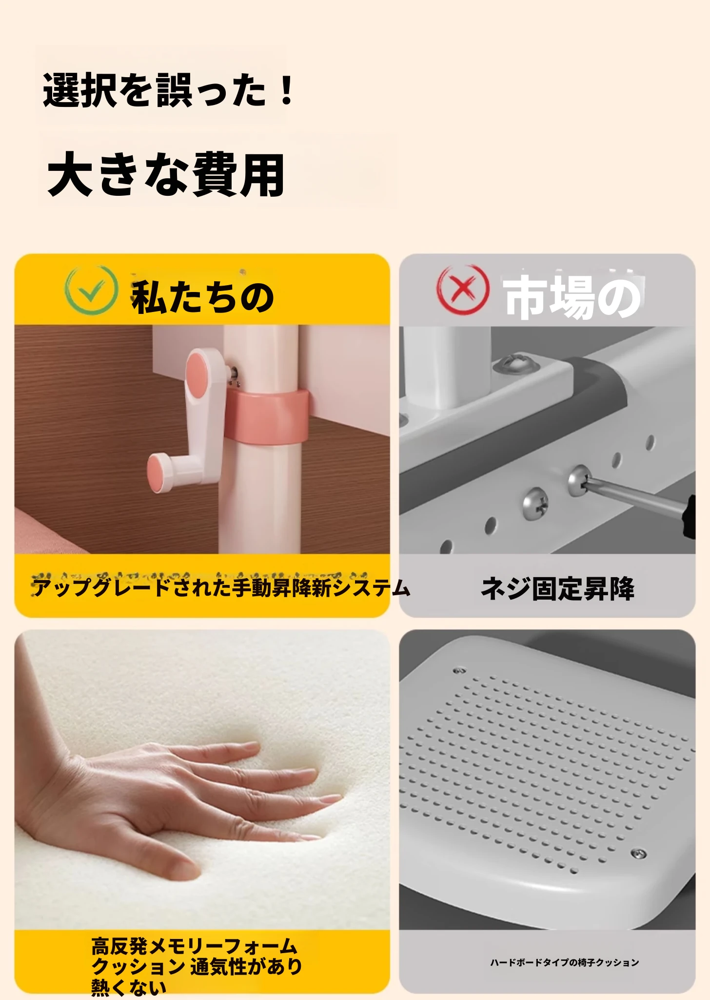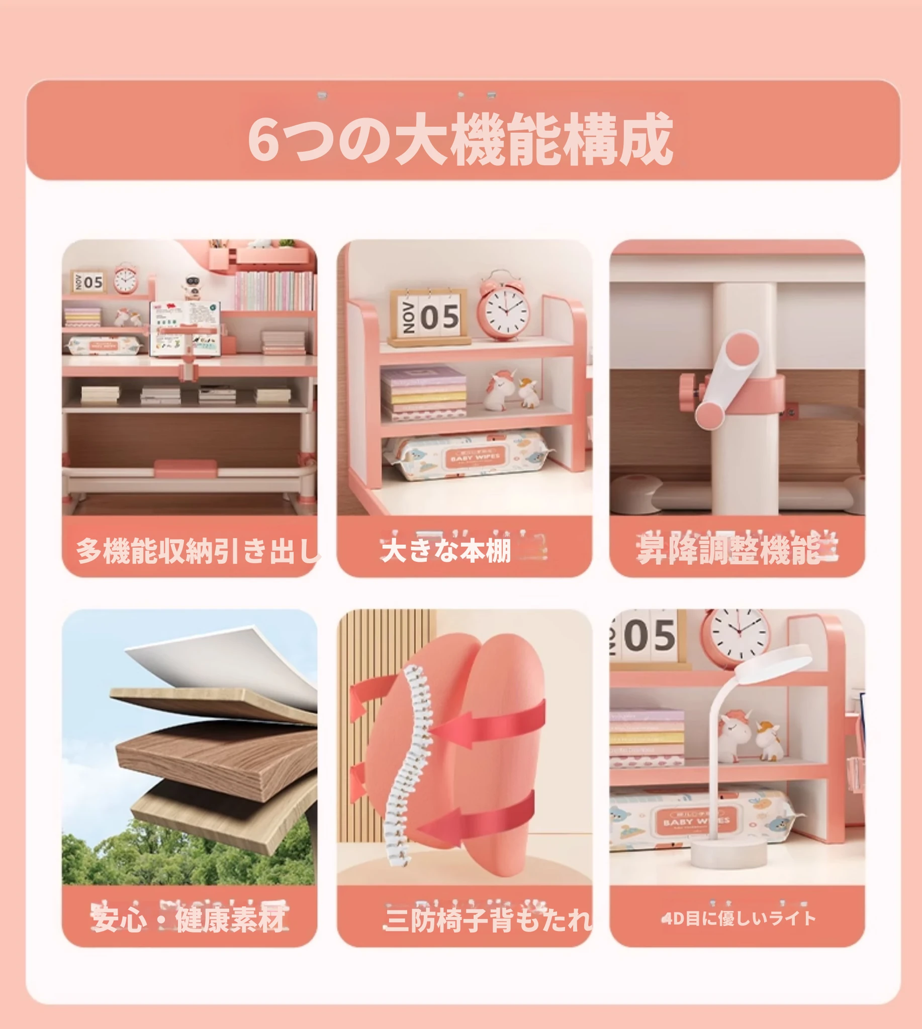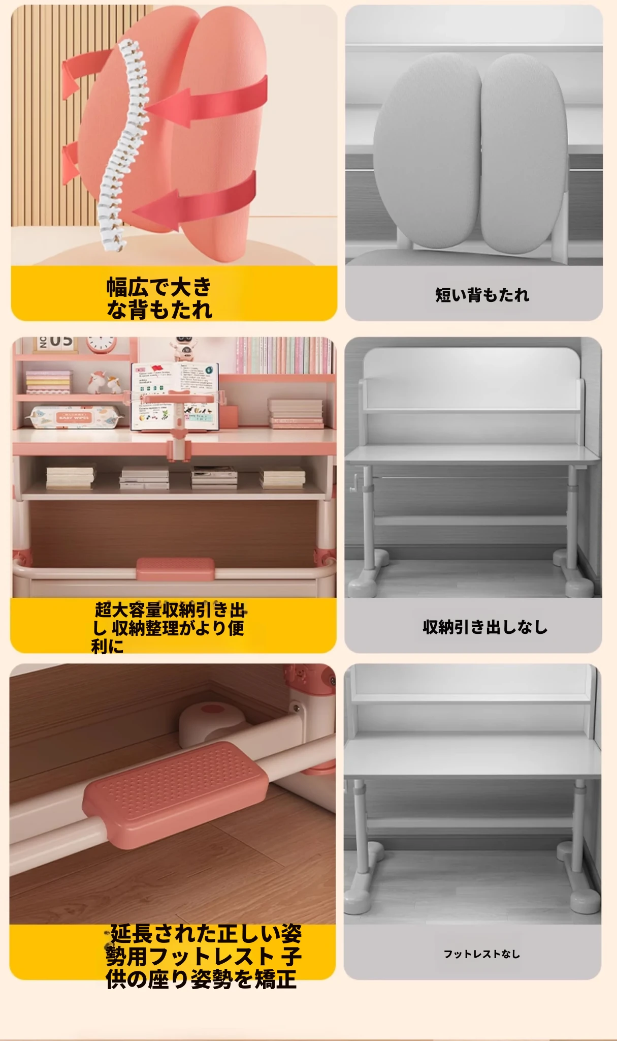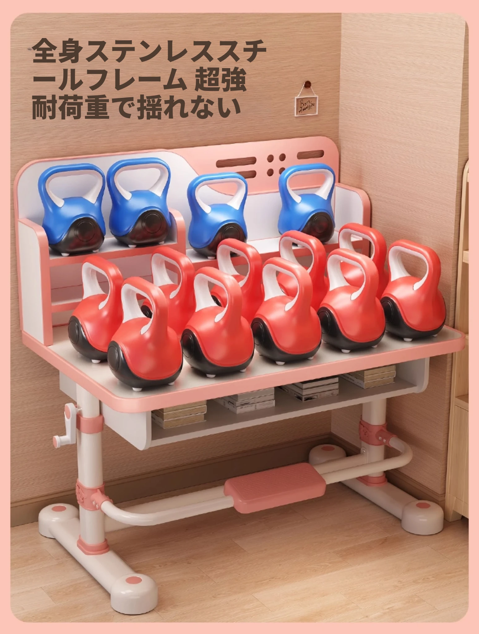 ⭐強化型テーブル・チェア脚【フラグシップピンク】 手動昇降/スポンジクッションカバー/矯正器/目に優しいライト/正姿勢ダブルバックチェア(オリジナルカバー付き)