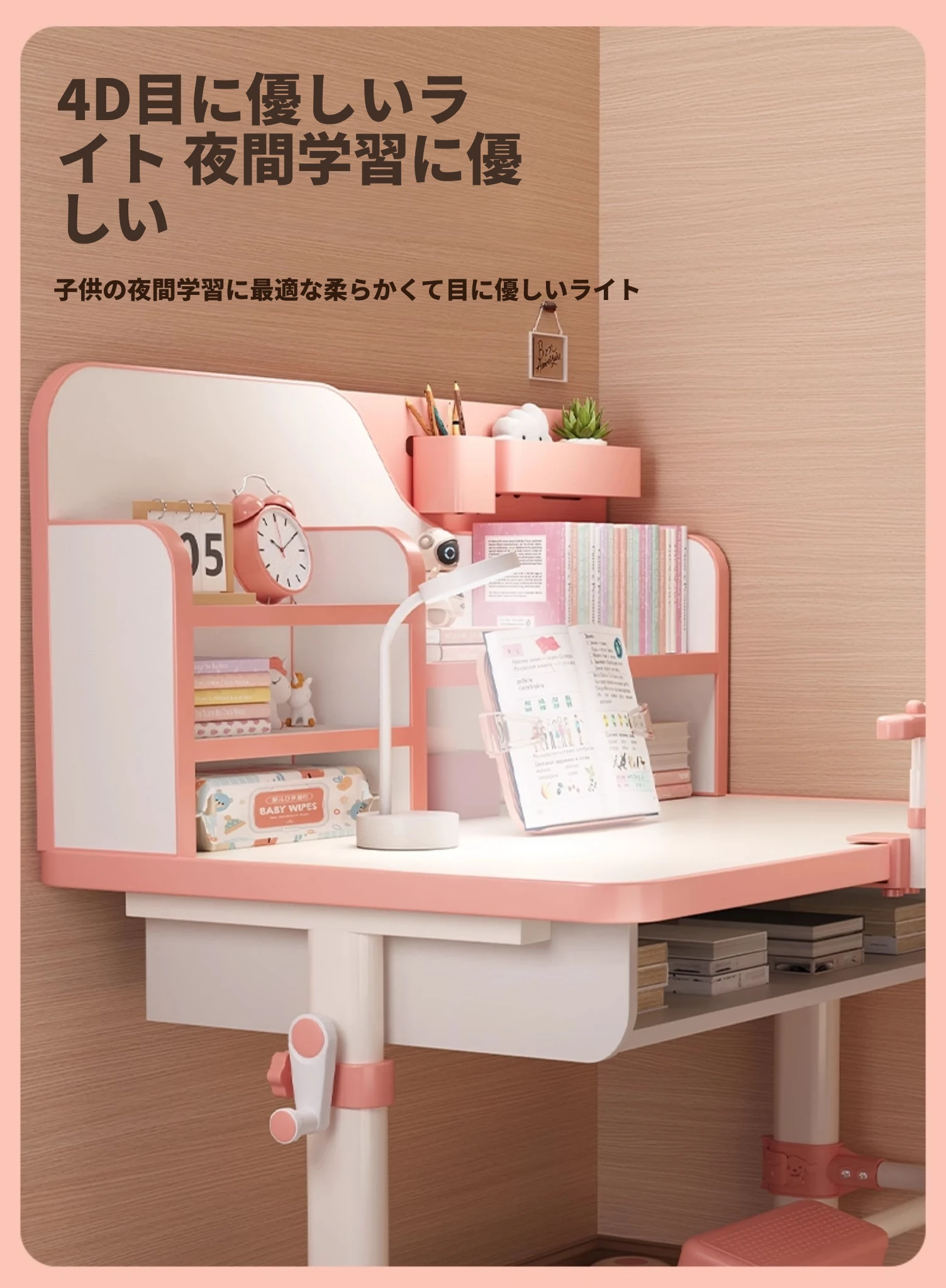 ⭐強化型テーブル・チェア脚【フラグシップピンク】 手動昇降/正姿勢ダブルバックチェア/スポンジクッションカバー/矯正器/目に優しいライト/読書スタンド(オリジナルカバー付き)