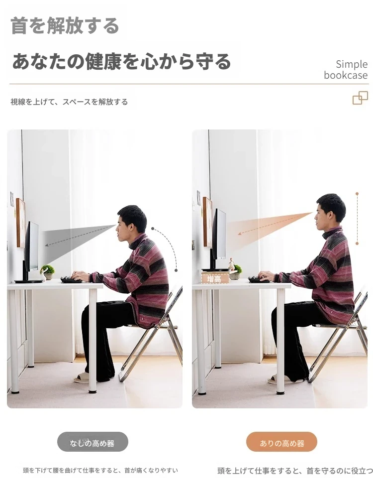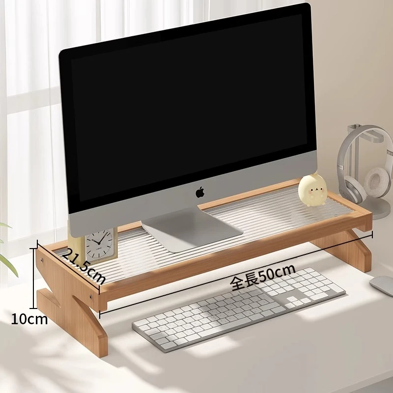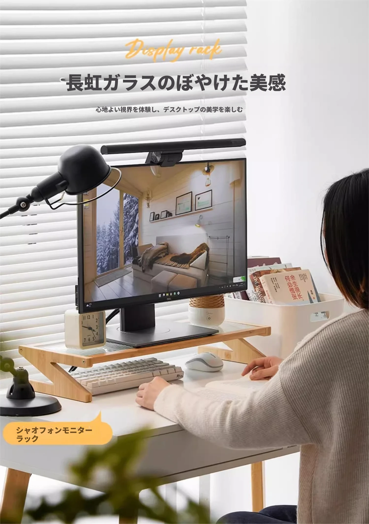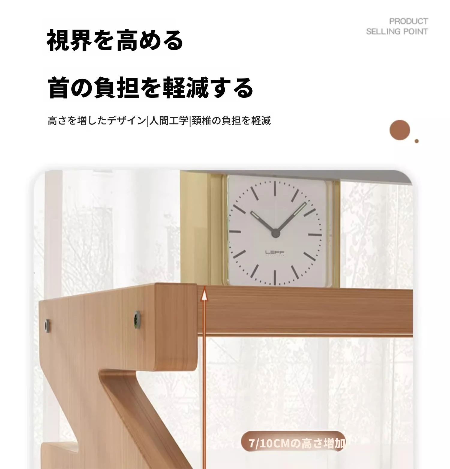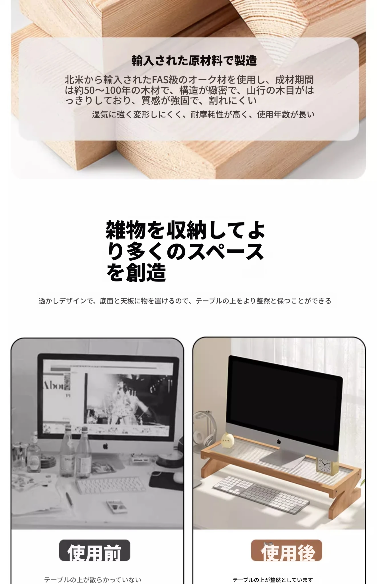 デスクトップモニター昇降スタンド - 橡木製の収納ラックで、オフィスデスクをスッキリ整理!快適な作業環境を実現し、姿勢改善にも効果的です。パソコン周りをおしゃれに演出しましょう!