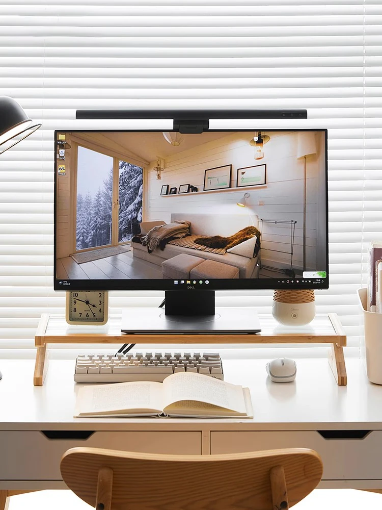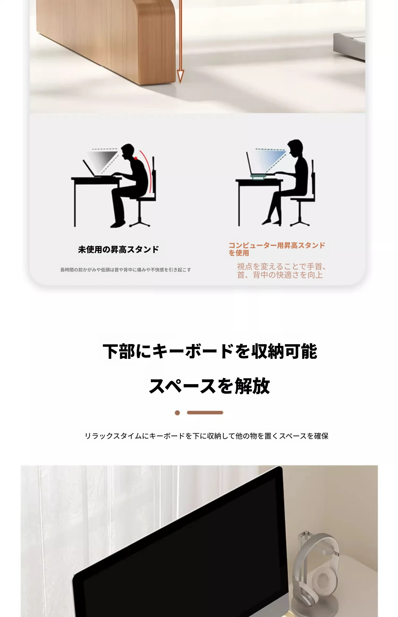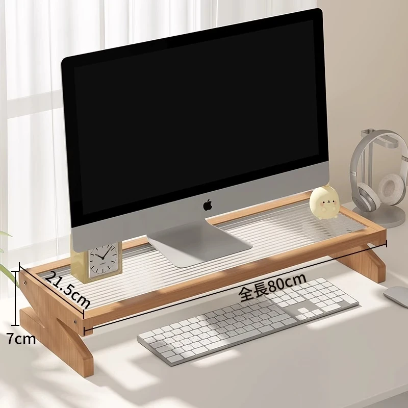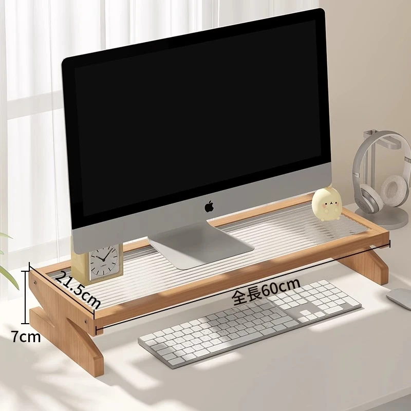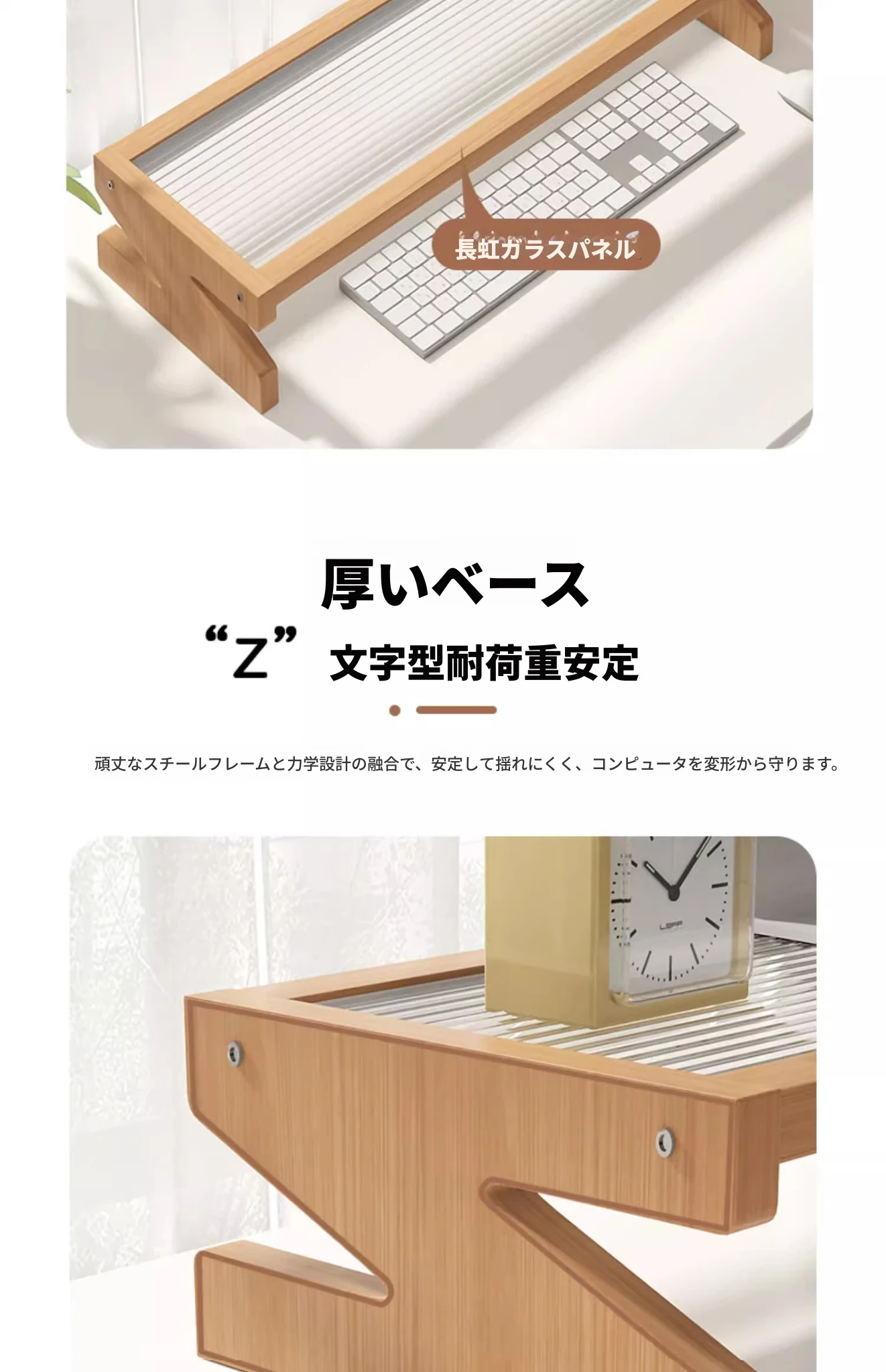 デスクトップモニター昇降スタンド - 橡木製の収納ラックで、オフィスデスクをスッキリ整理!快適な作業環境を実現し、姿勢改善にも効果的です。パソコン周りをおしゃれに演出しましょう!