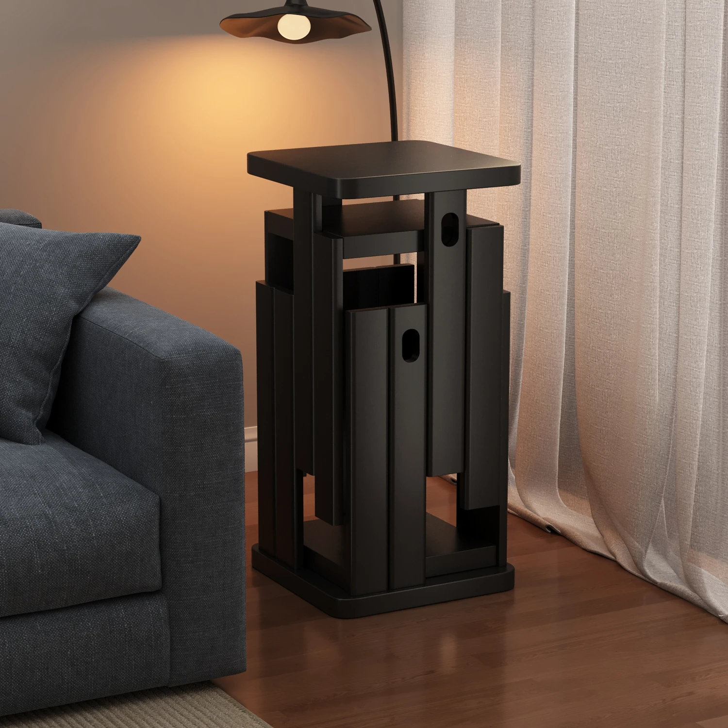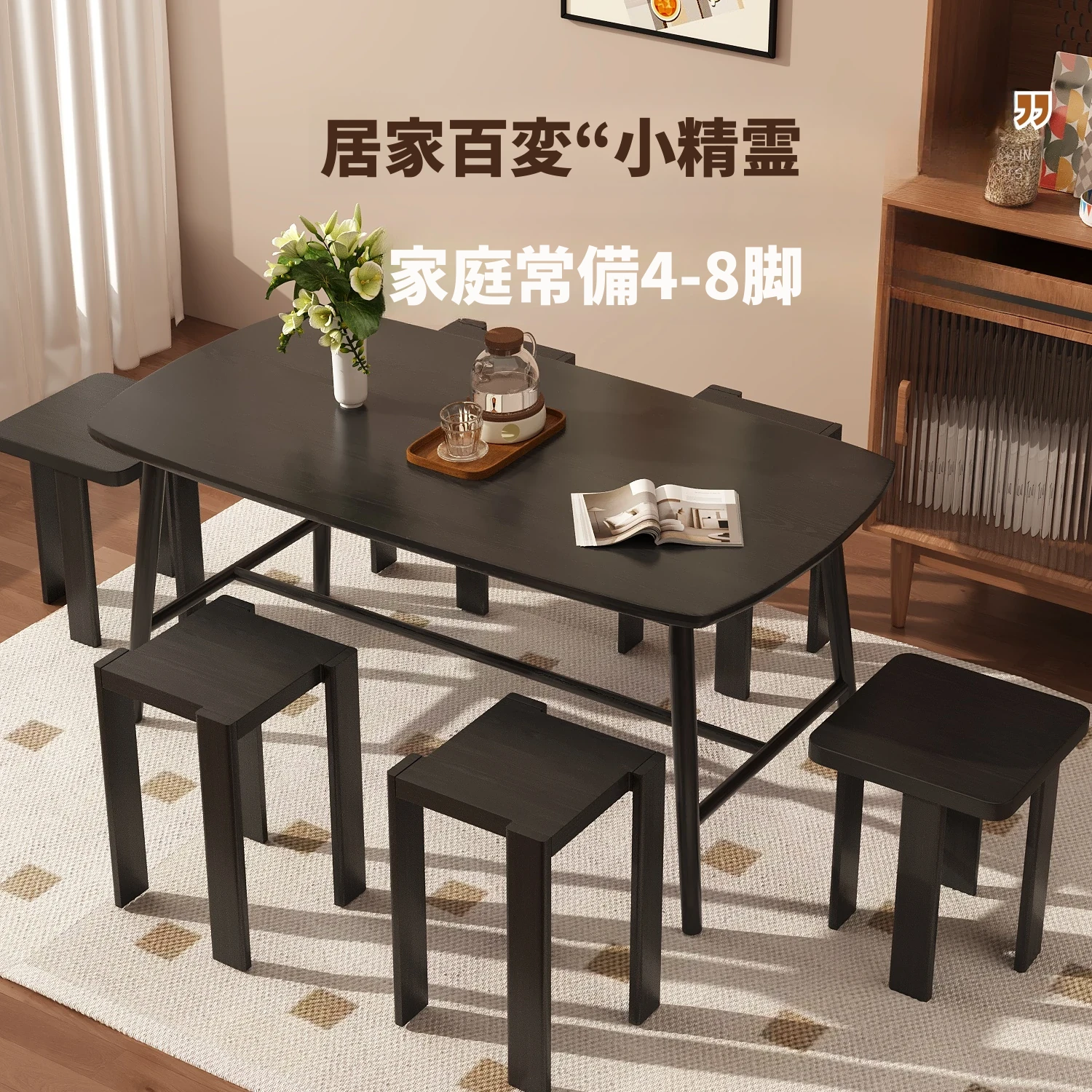 黒色の無垢材スタッキングスツール 中華風の重ねられるコンビネーション型テーブル 家庭用の四角いスツールとして、食事やティータイムに最適!省スペースでおしゃれなデザイン、重ねて収納可能!