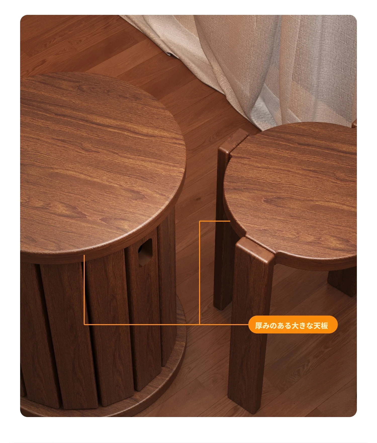 【アップグレード版-100%全実木】桜色-スクエアスツール【4脚スツール-宅配】