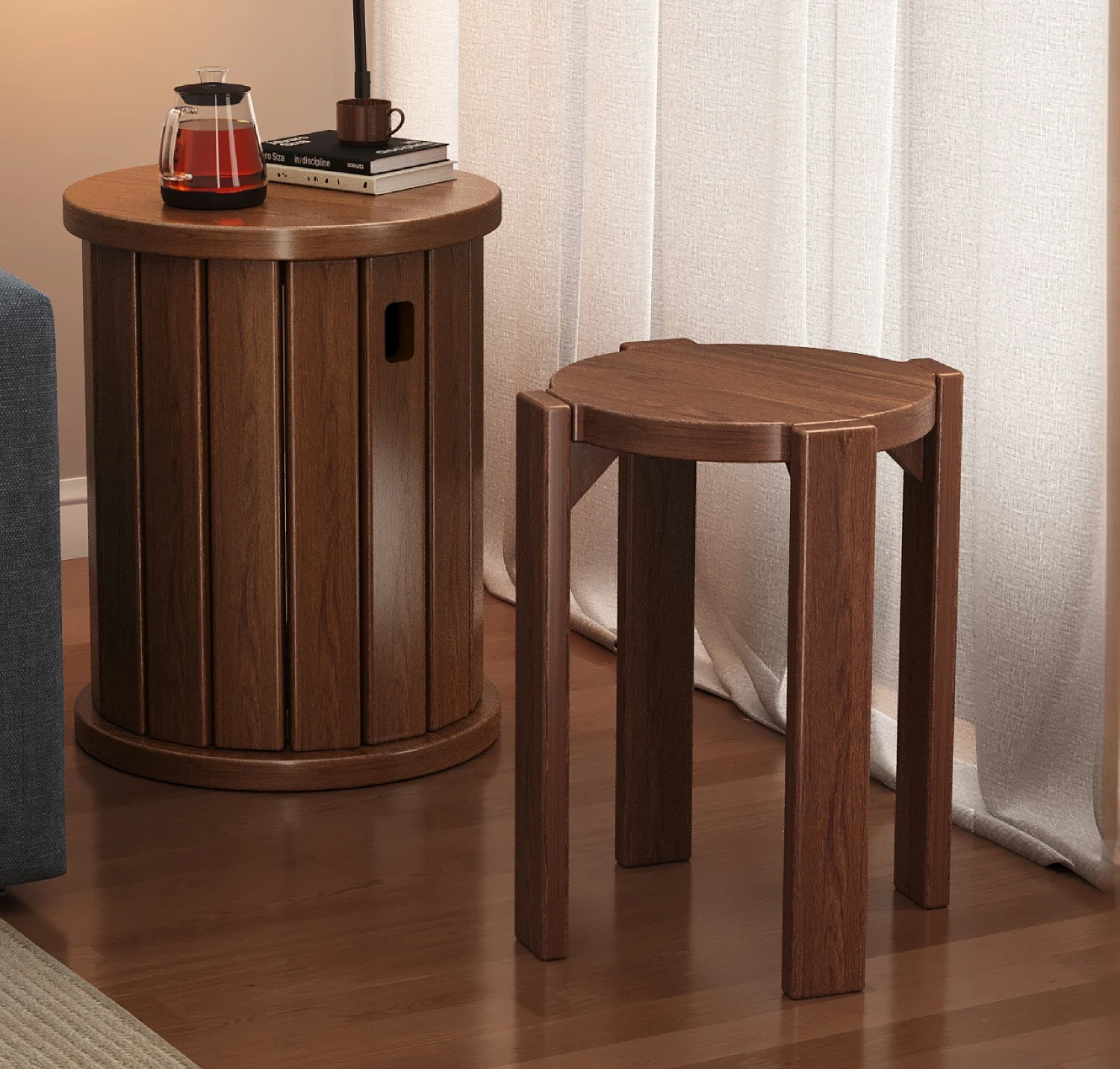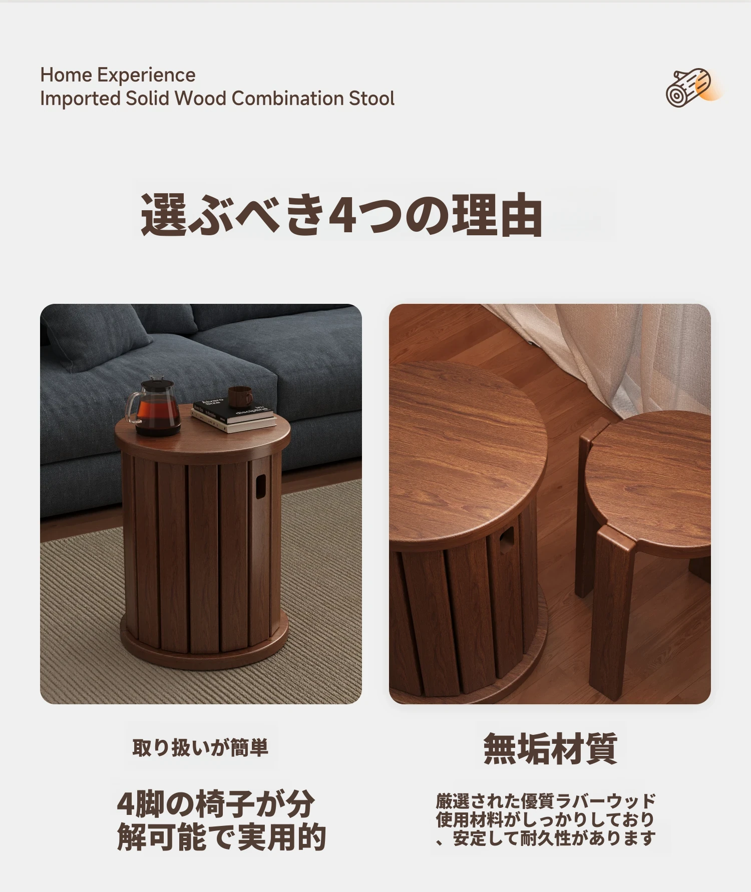 【アップグレードキャスター版-全実木】黒-風黎スツール【4in1コンビネーションスツール-宅配】