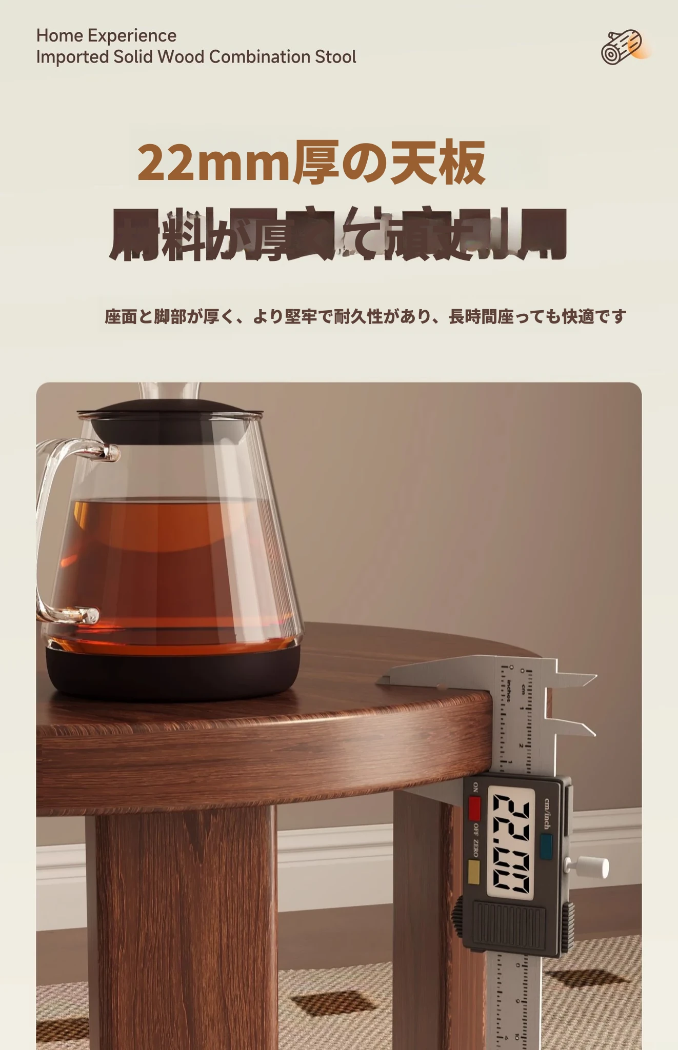 【アップグレードキャスター版+宅配】チェリー色★スクエアスツール【全実木-保証5年-宅配】