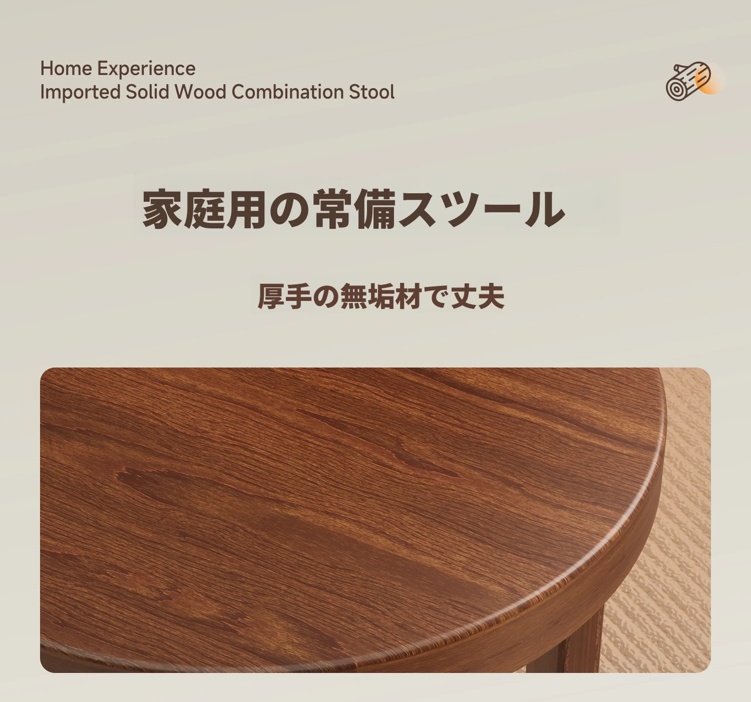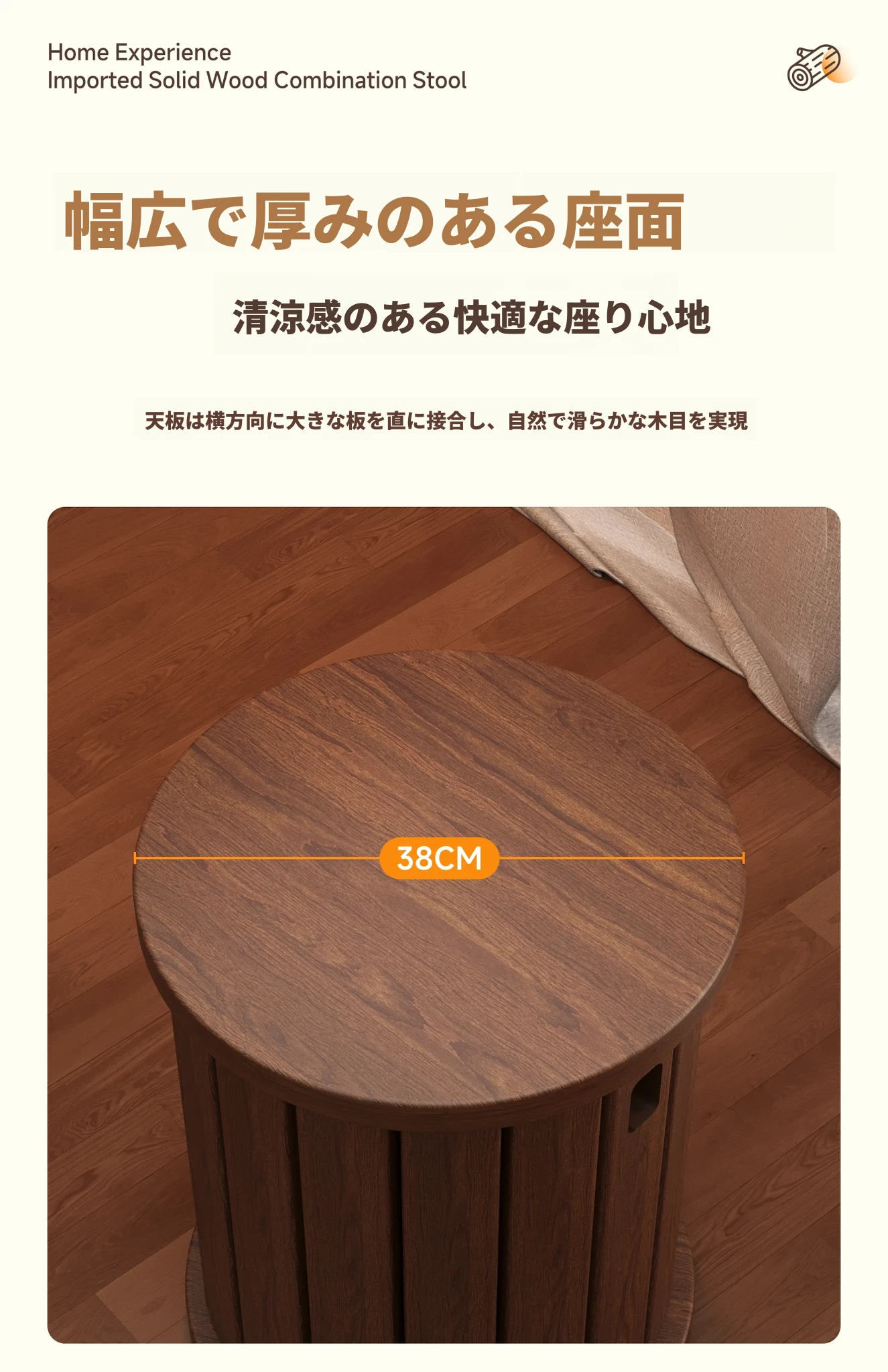【アップグレードキャスター版+宅配】ナチュラル色★スクエアスツール【全実木-保証5年-宅配】