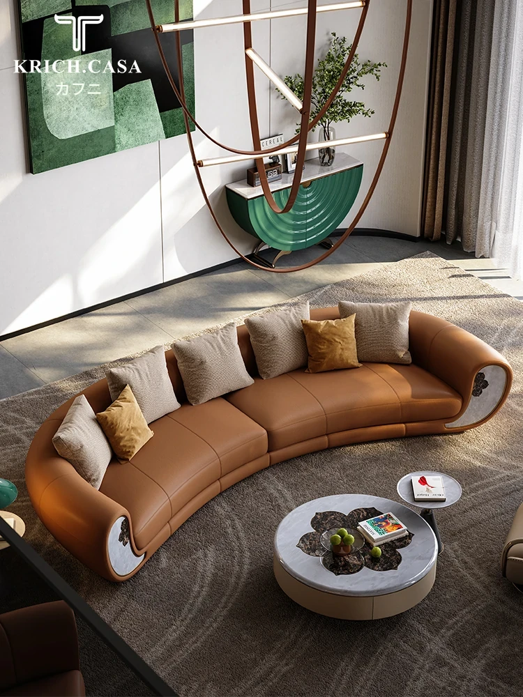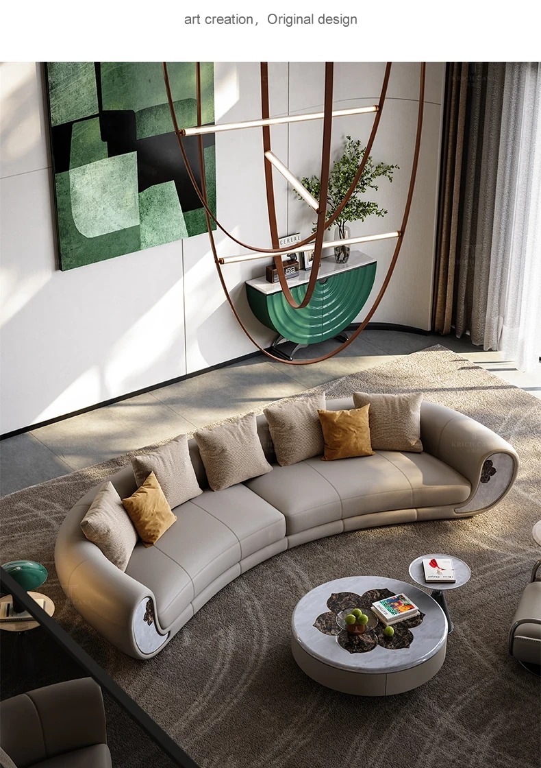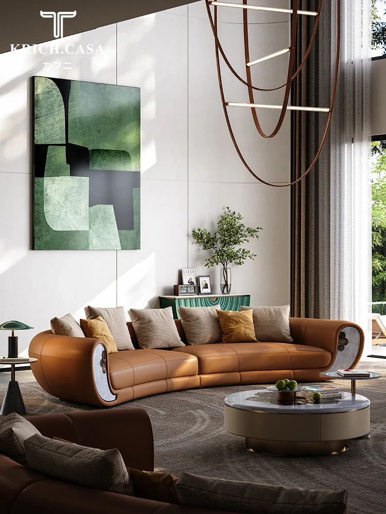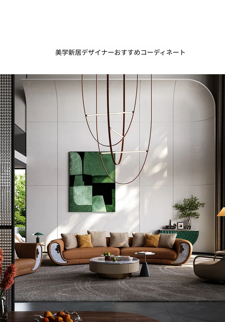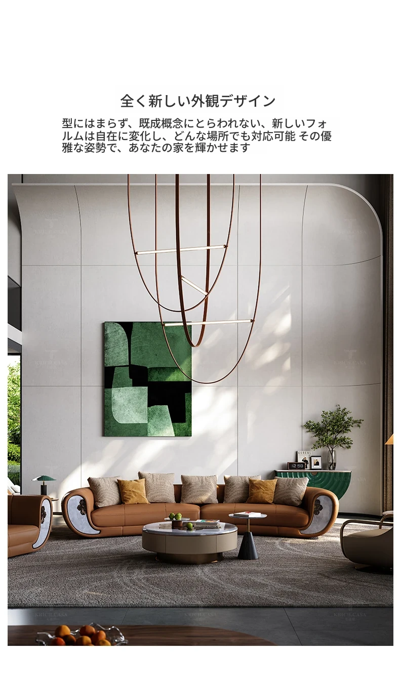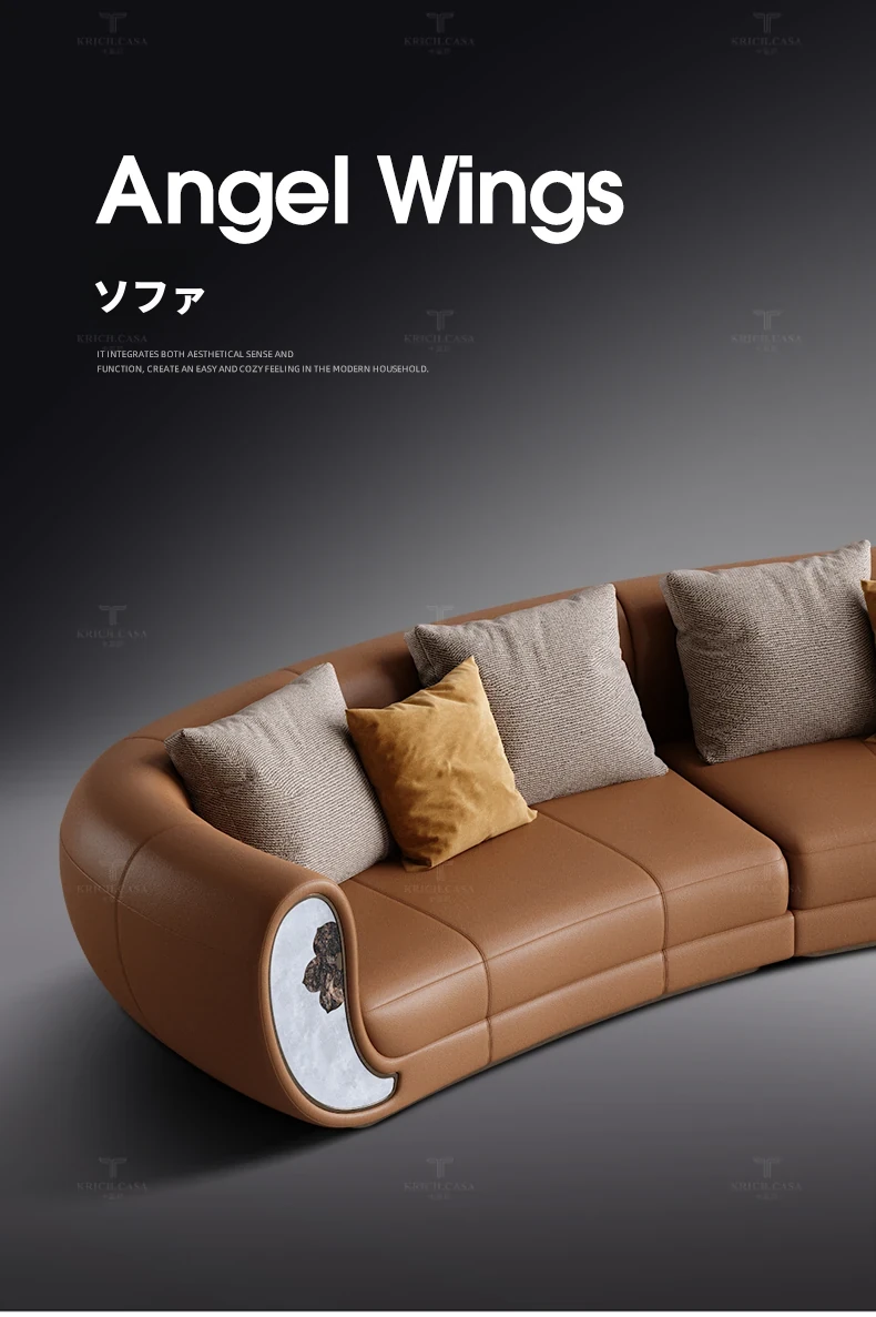 カフニ高級フレンチラグジュアリーソファー|リビング・ヴィラ向け|本革の優雅なアーチ型ソファー|エンジェルウィングデザインで極上の癒しを提供!