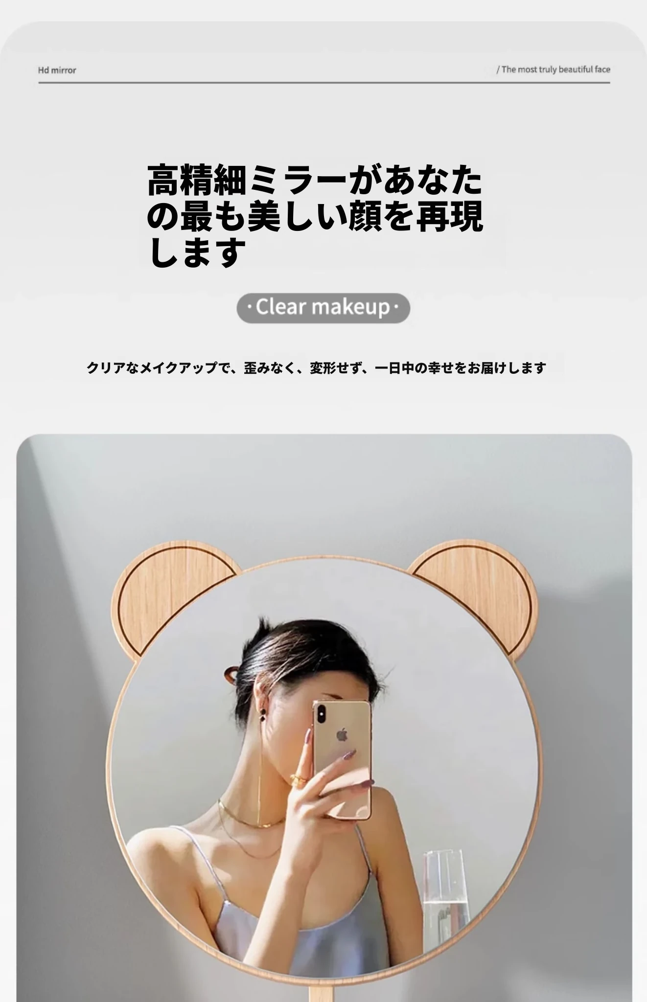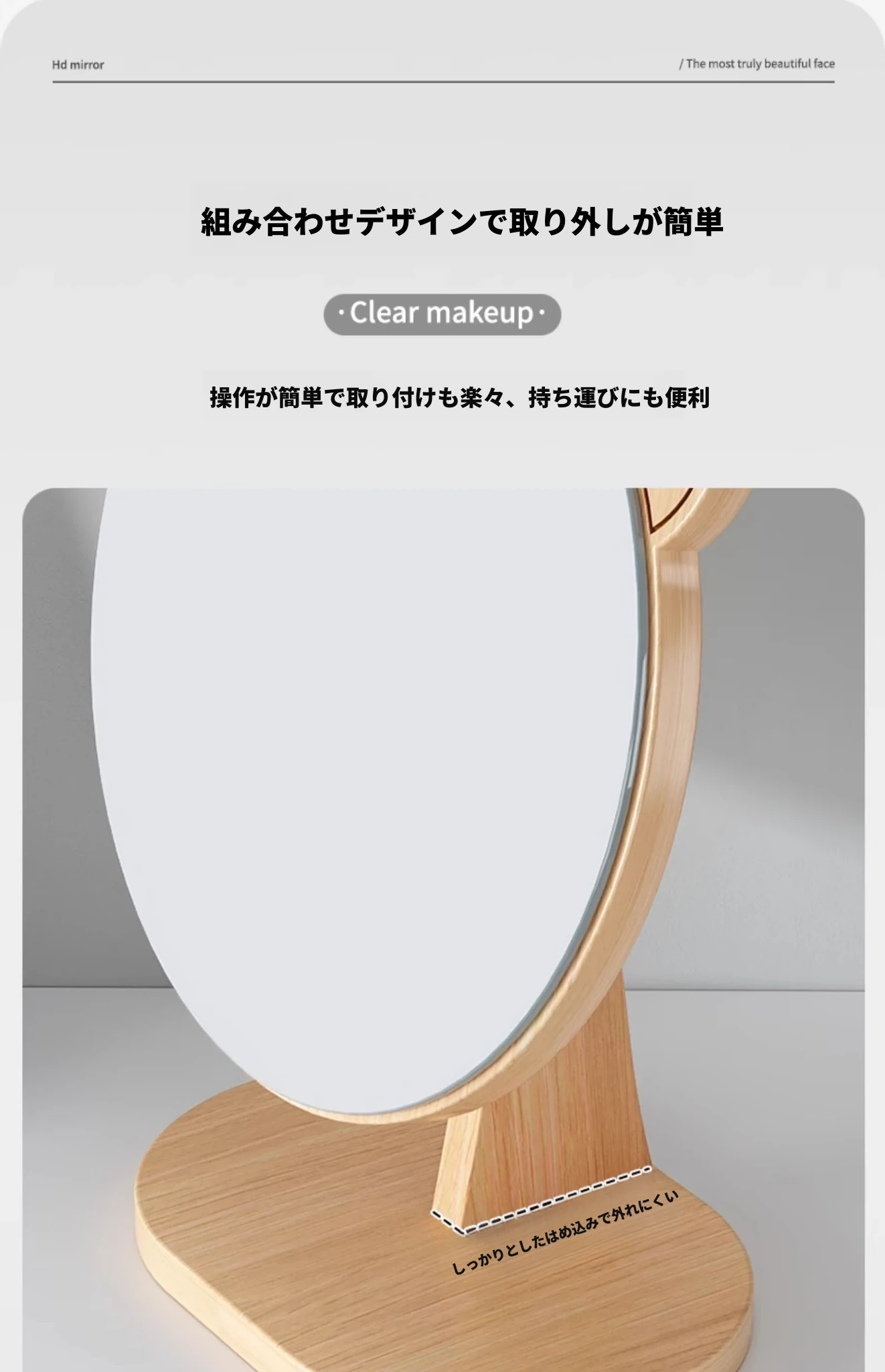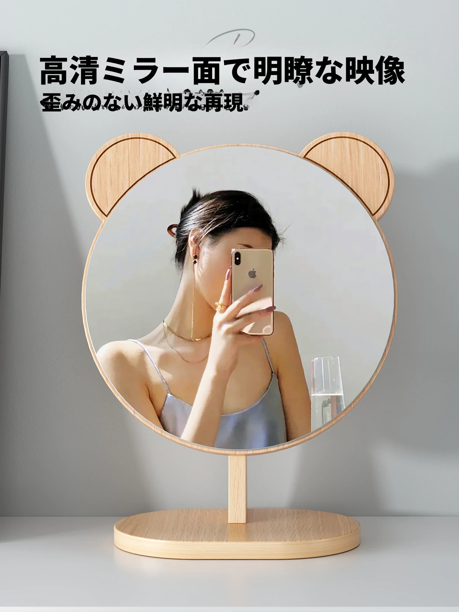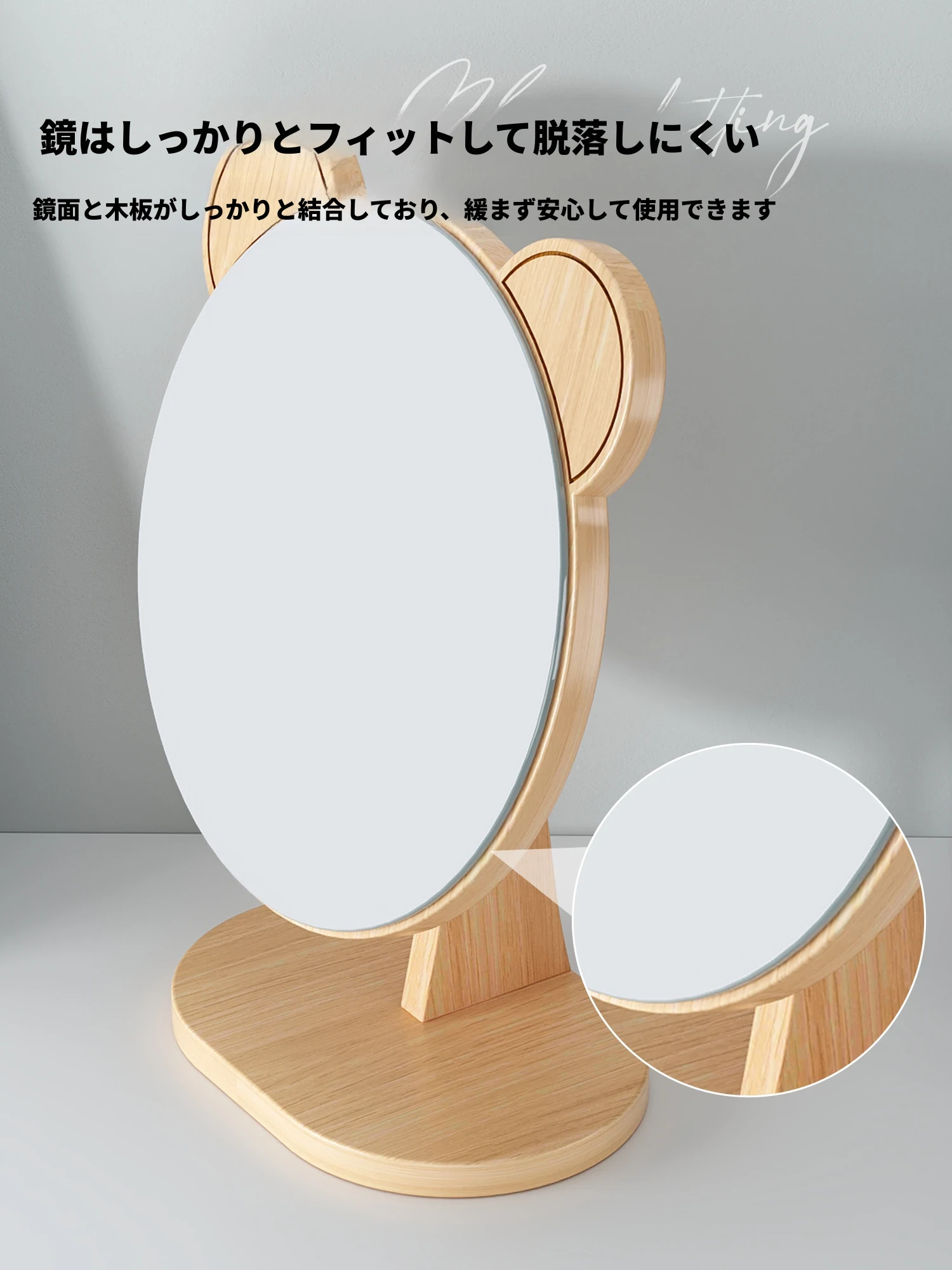 学生宿舍必备!可爱デザインの木製卓上鏡 - 高解像度でメイクも楽々!おしゃれな大サイズの円形鏡、寝室や家庭で大活躍!