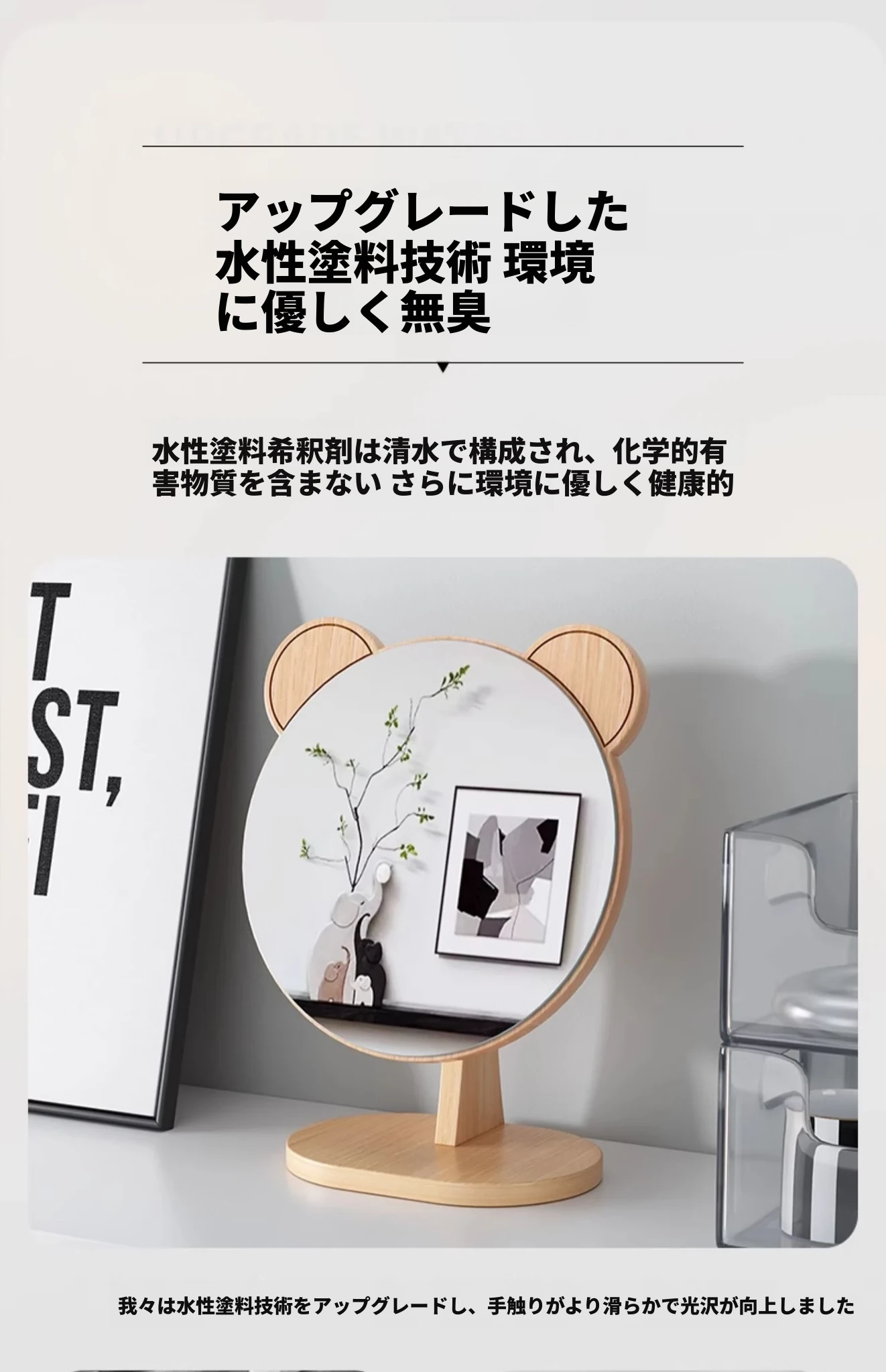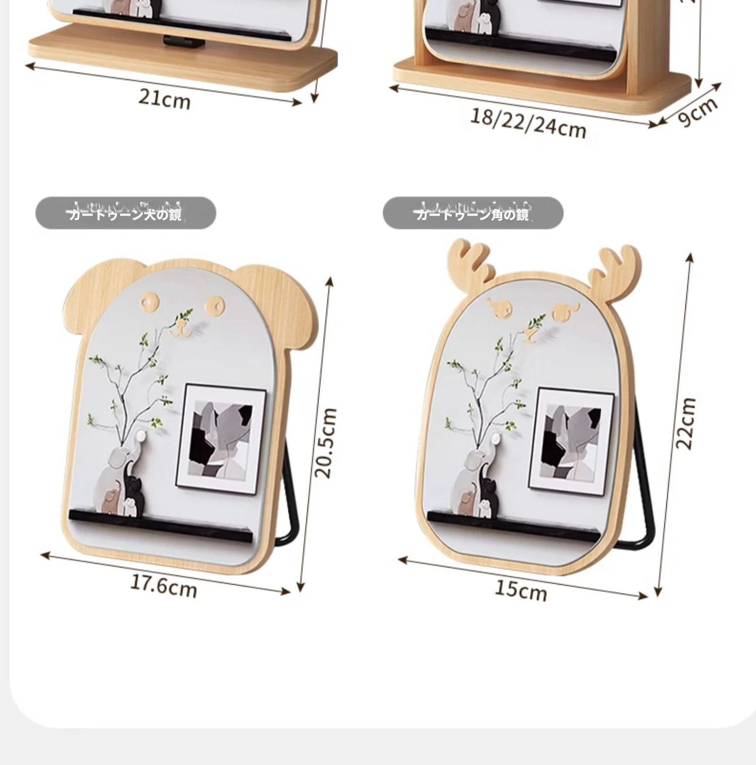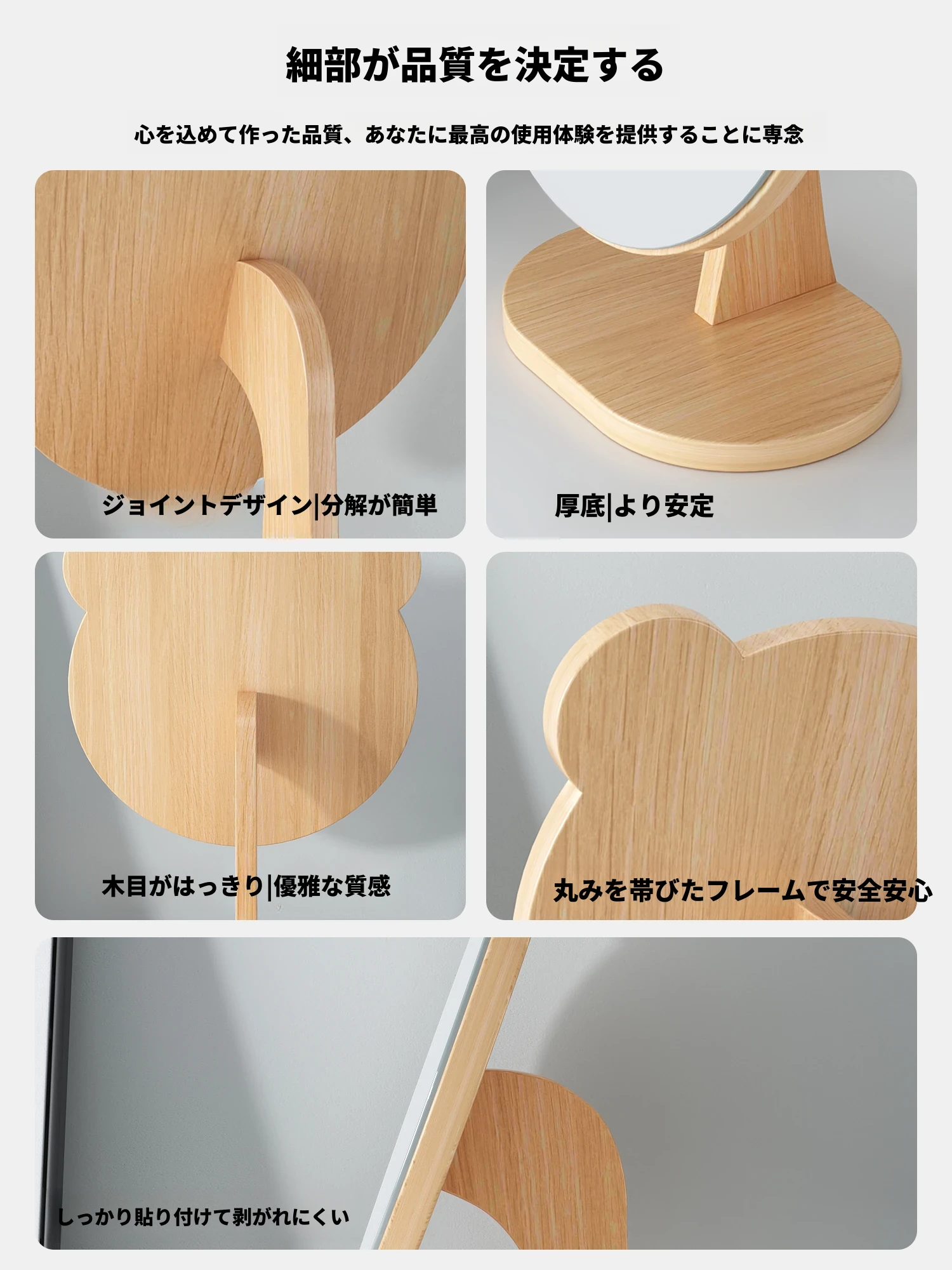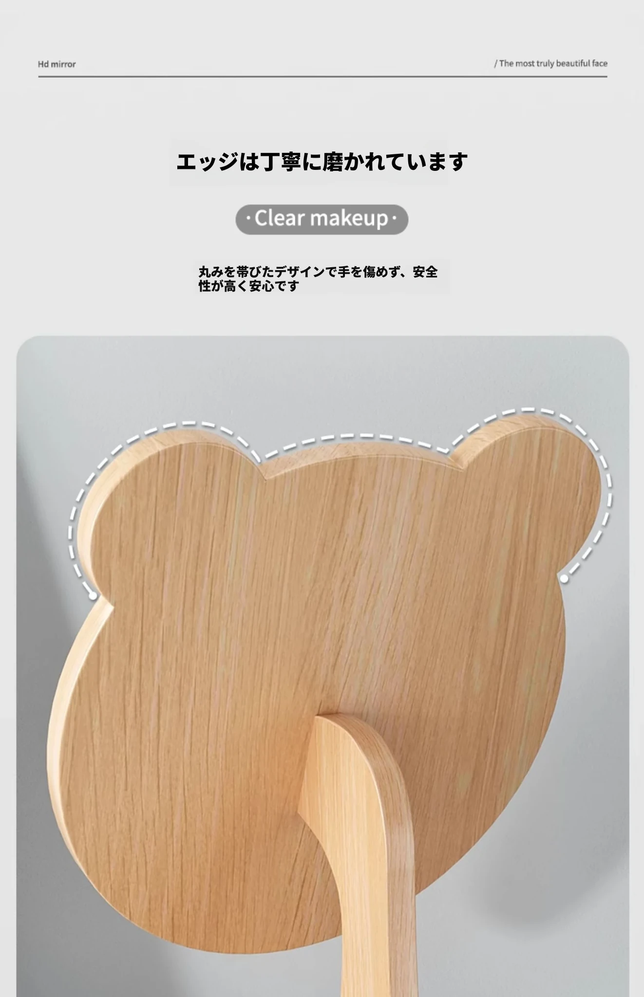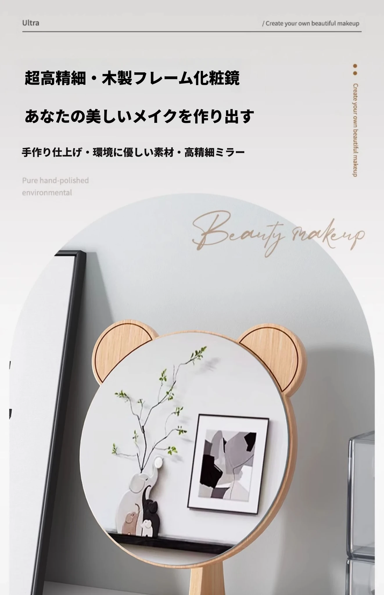 学生宿舍必备!可爱デザインの木製卓上鏡 - 高解像度でメイクも楽々!おしゃれな大サイズの円形鏡、寝室や家庭で大活躍!