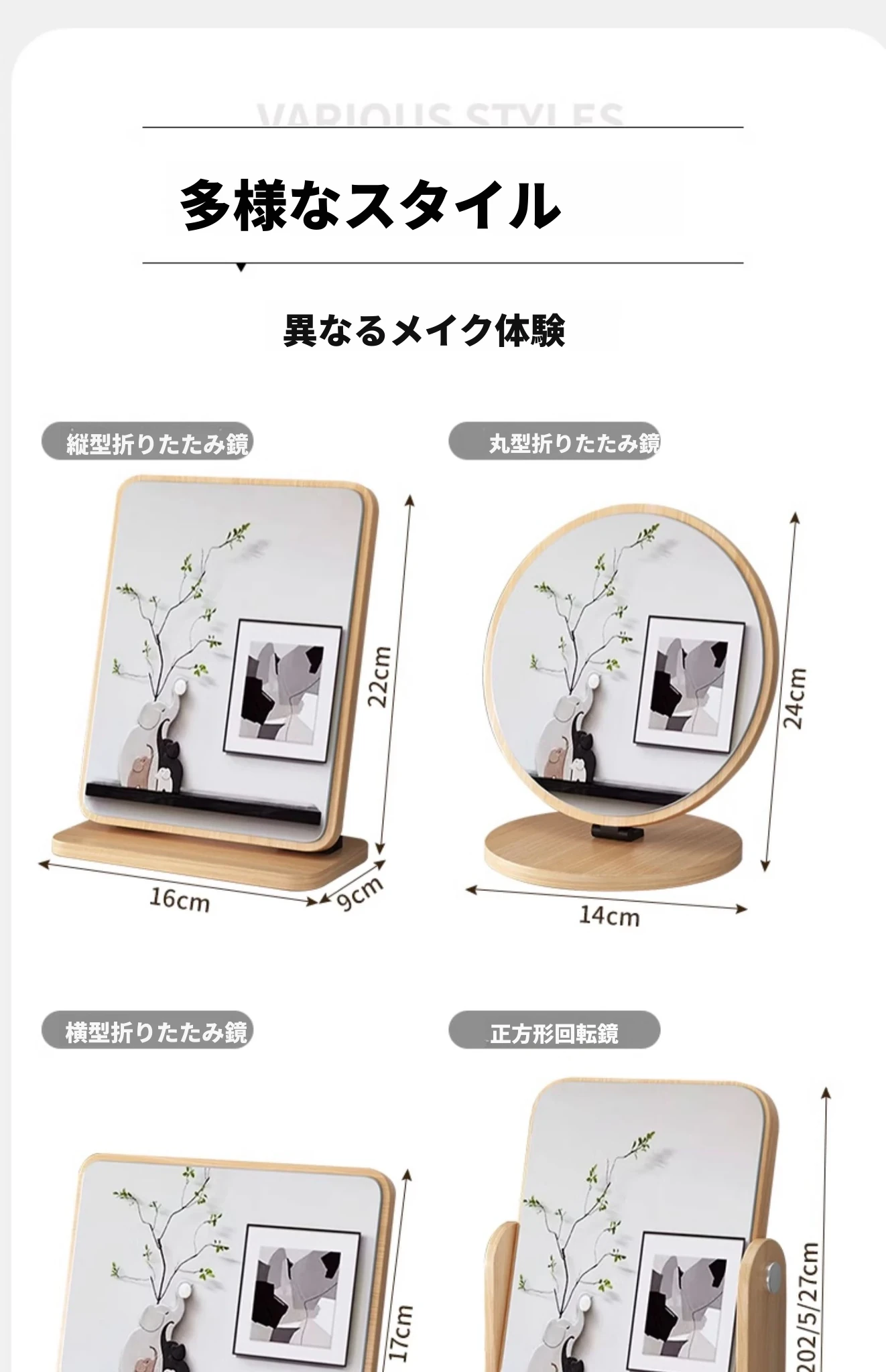 縦型高精細ミラー-折りたたみ式