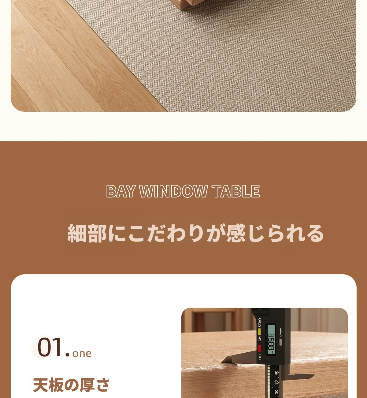 (ナチュラルウッド色)水波模様の飄窗テーブル(1000*470*300mm)