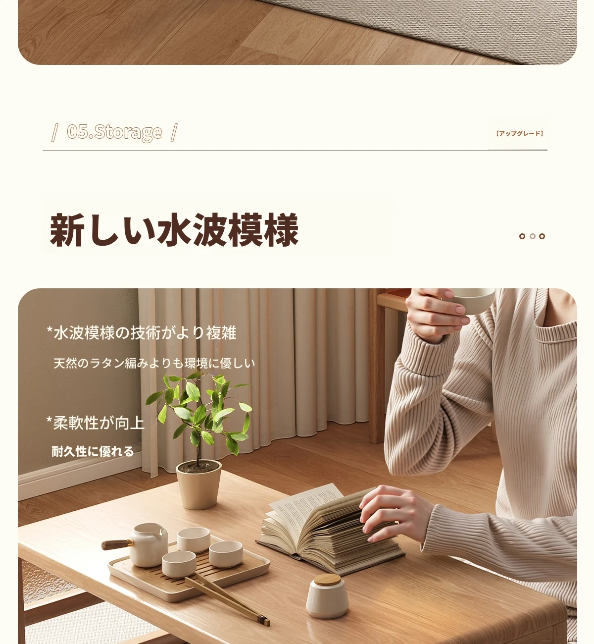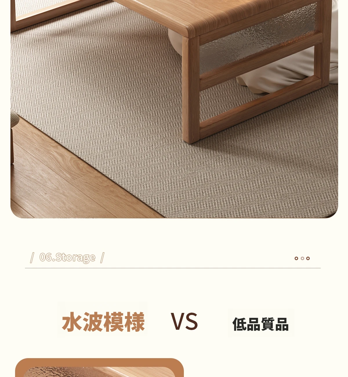 (ナチュラルウッド色)水波模様の飄窗テーブル(600*400*300mm)