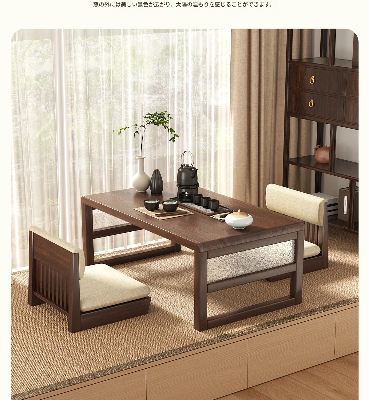 (ウォールナット色)水波模様の飄窗テーブル(800*470*400mm)