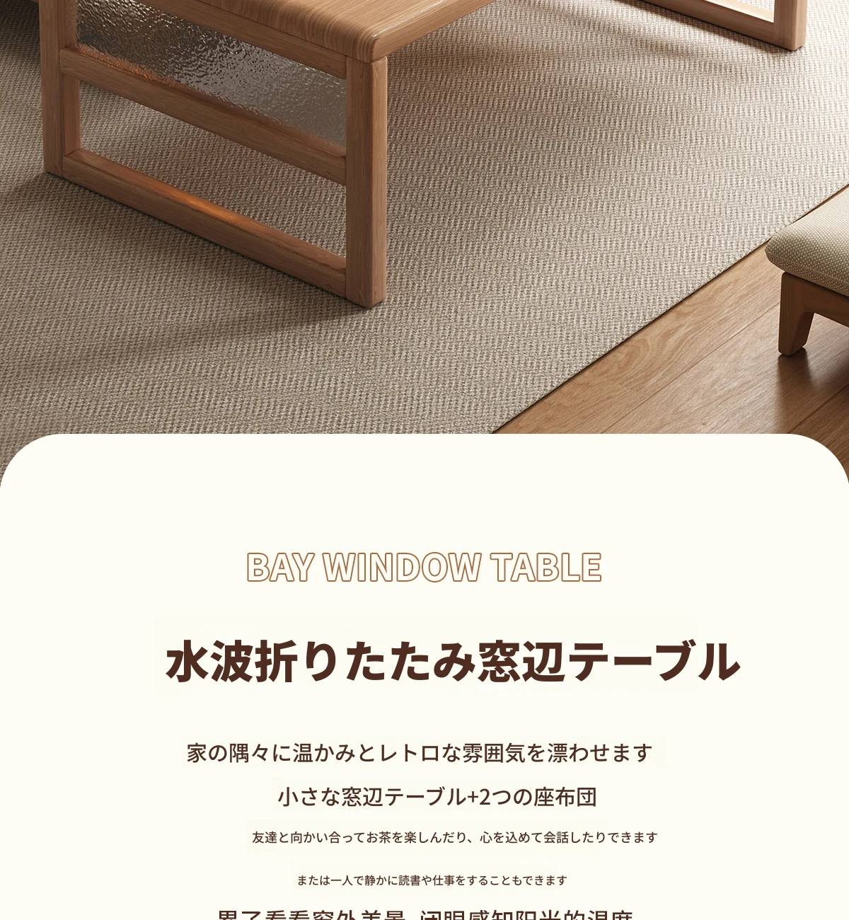 (ナチュラルウッド色)水波模様の飄窗テーブル(800*470*400mm)