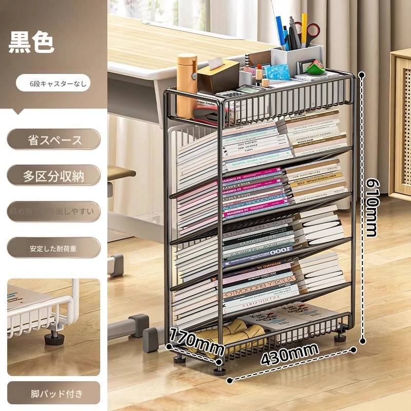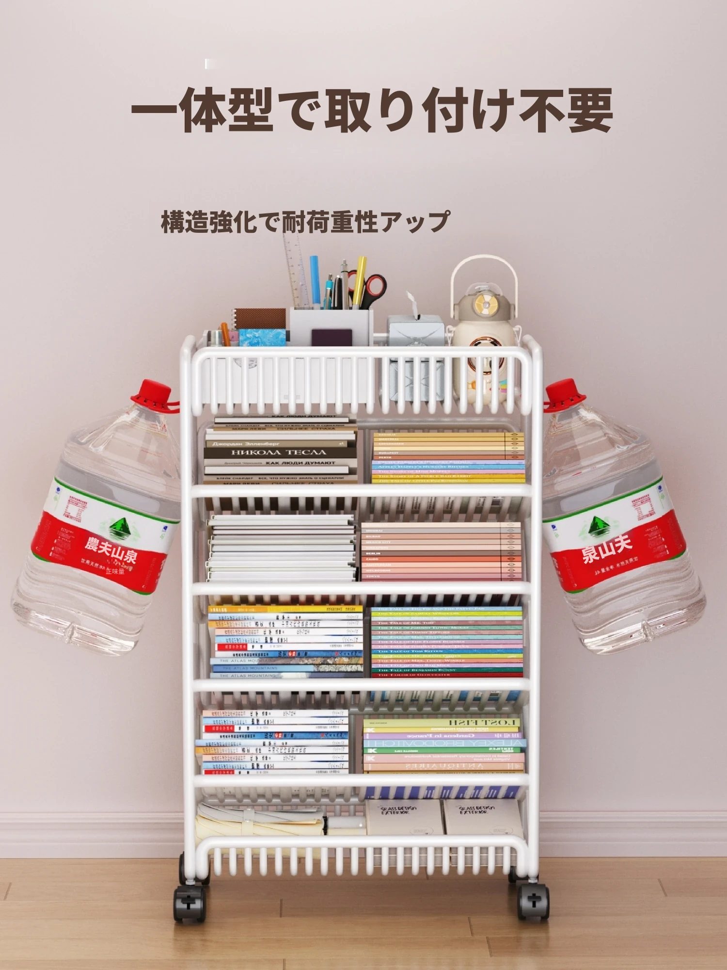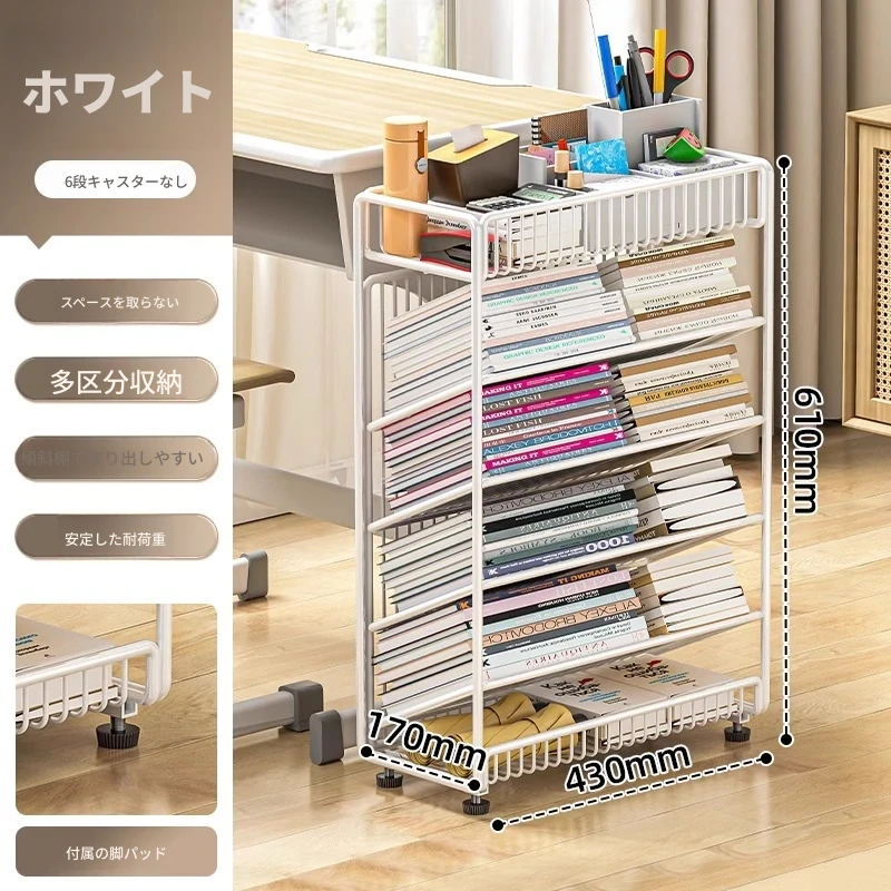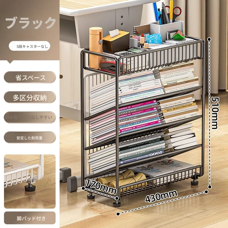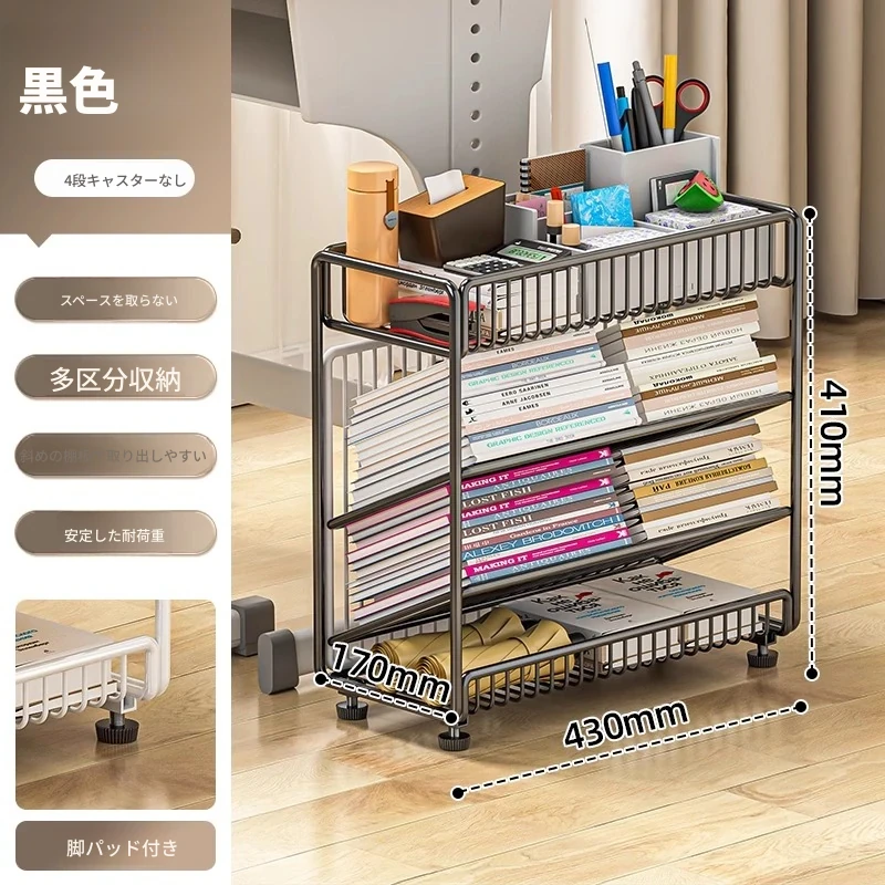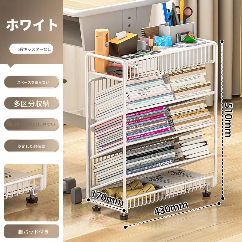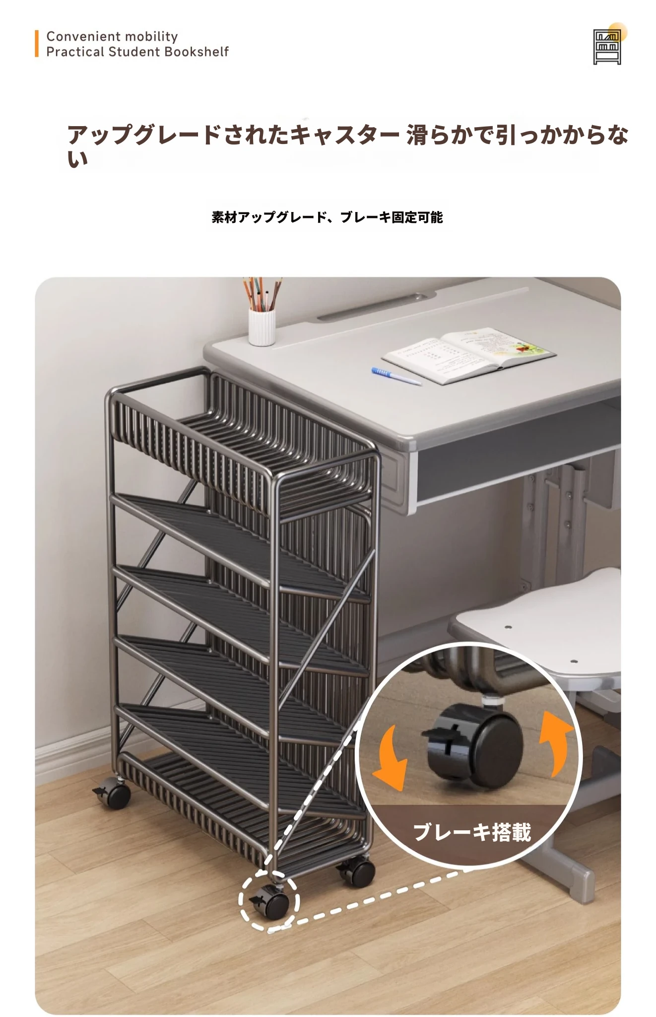 移動式デスクサイド書棚 - スペースを取らず、軽量で便利!寝室や書斎にぴったりの収納ソリューション。あなたの生活空間を効率的に整理整頓し、スタイリッシュに演出します!