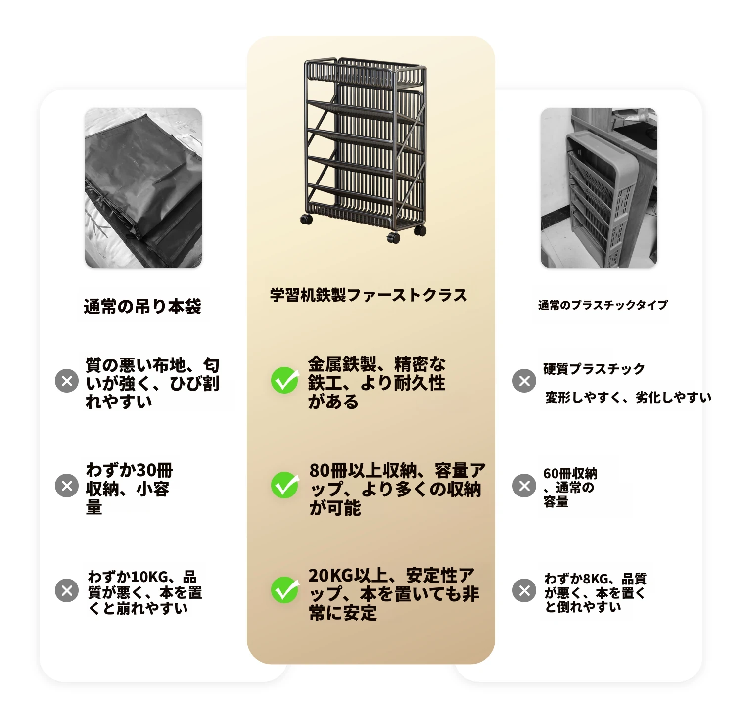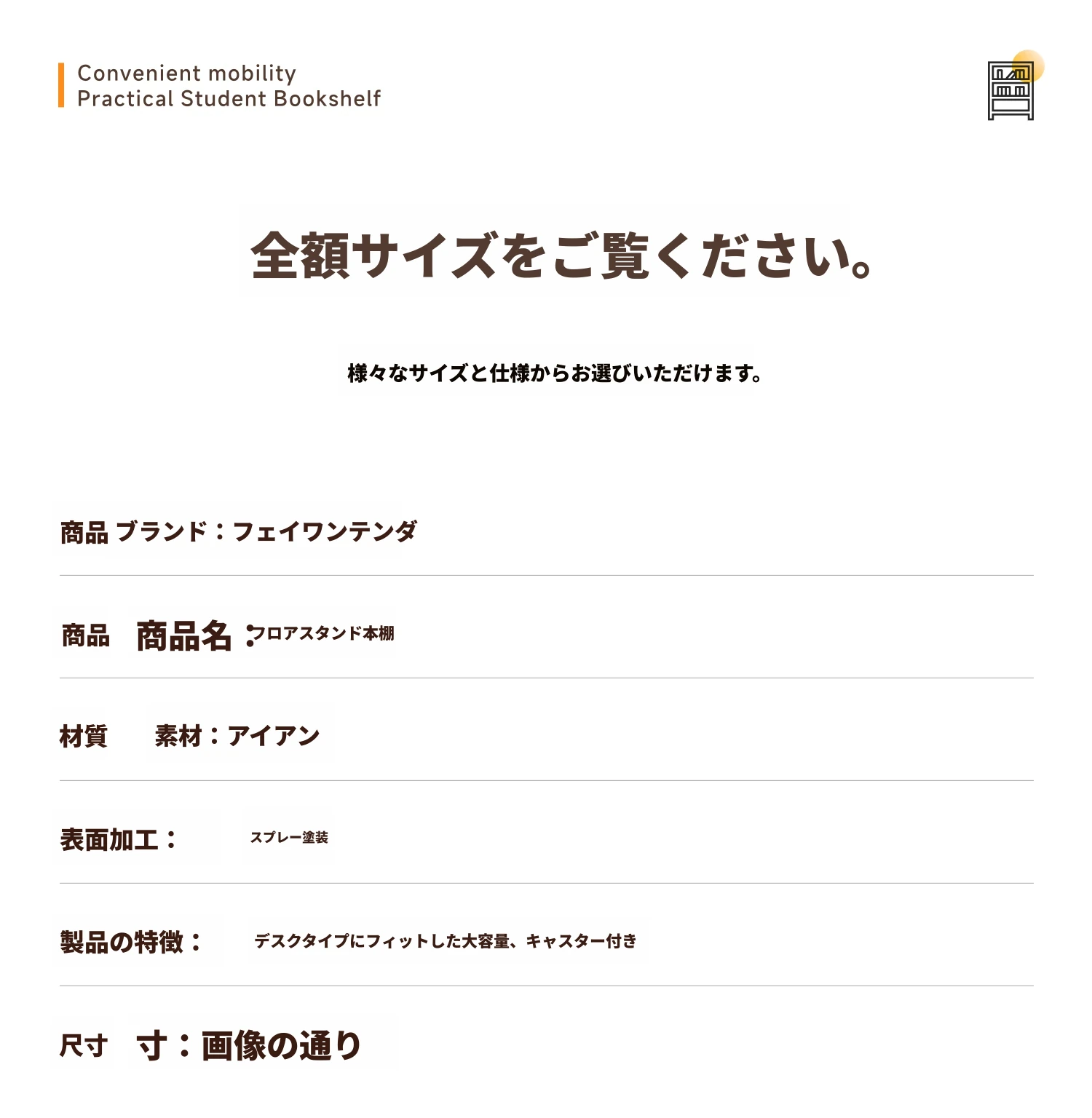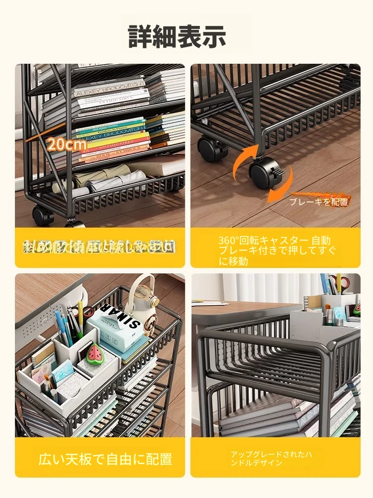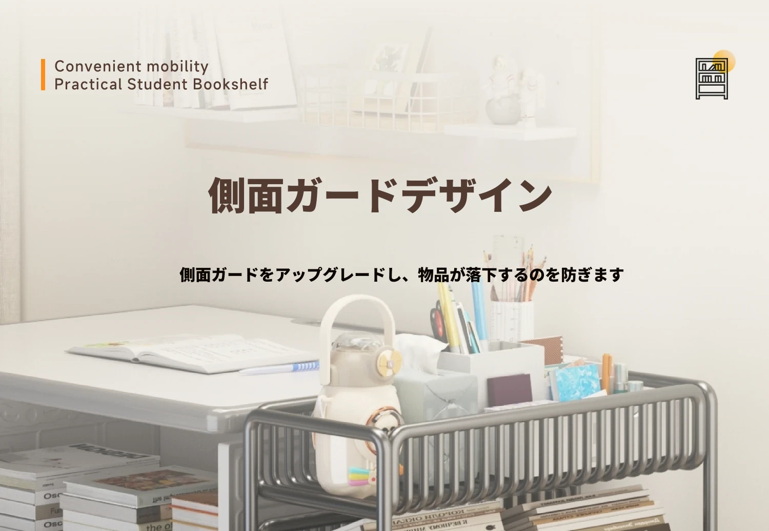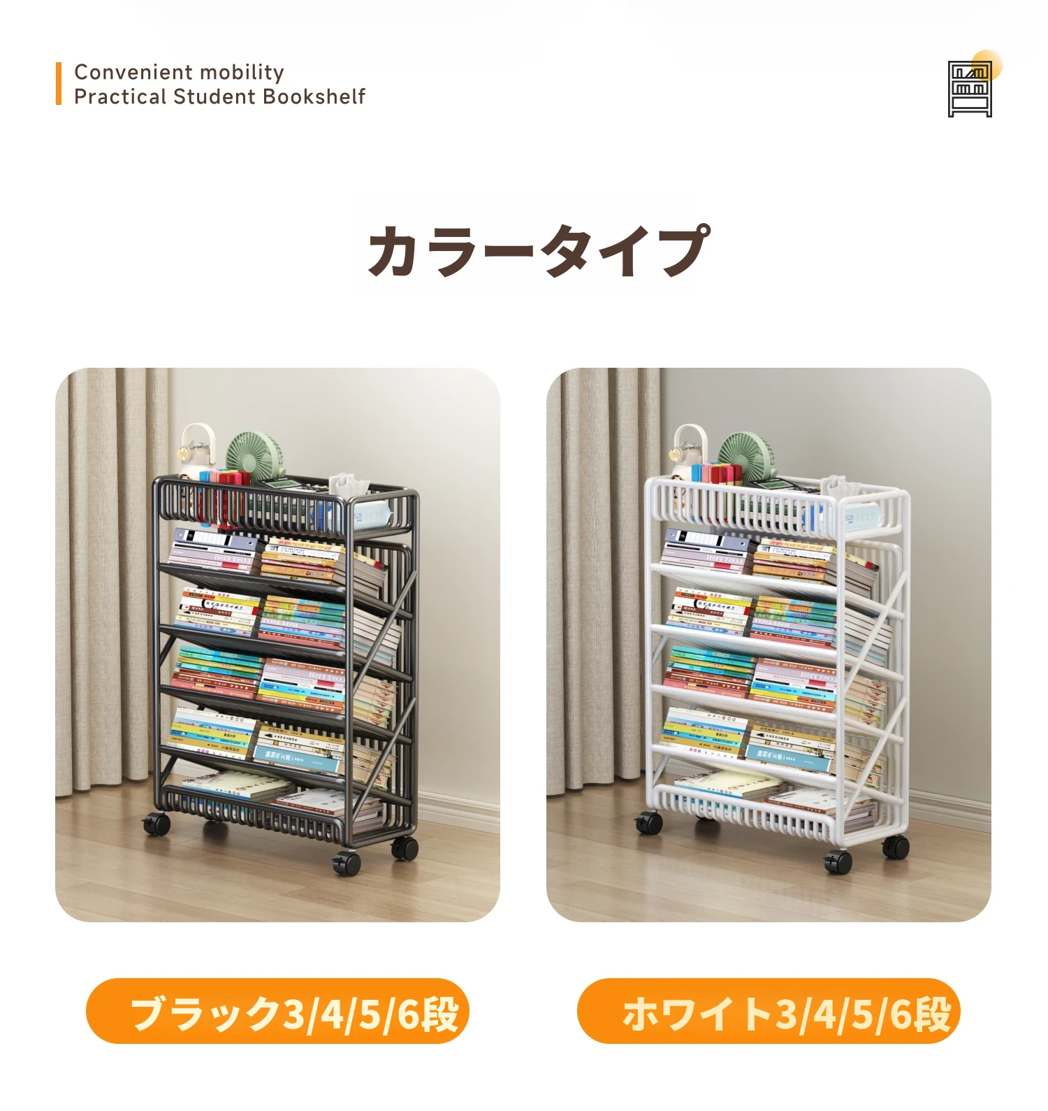 移動式デスクサイド書棚 - スペースを取らず、軽量で便利!寝室や書斎にぴったりの収納ソリューション。あなたの生活空間を効率的に整理整頓し、スタイリッシュに演出します!