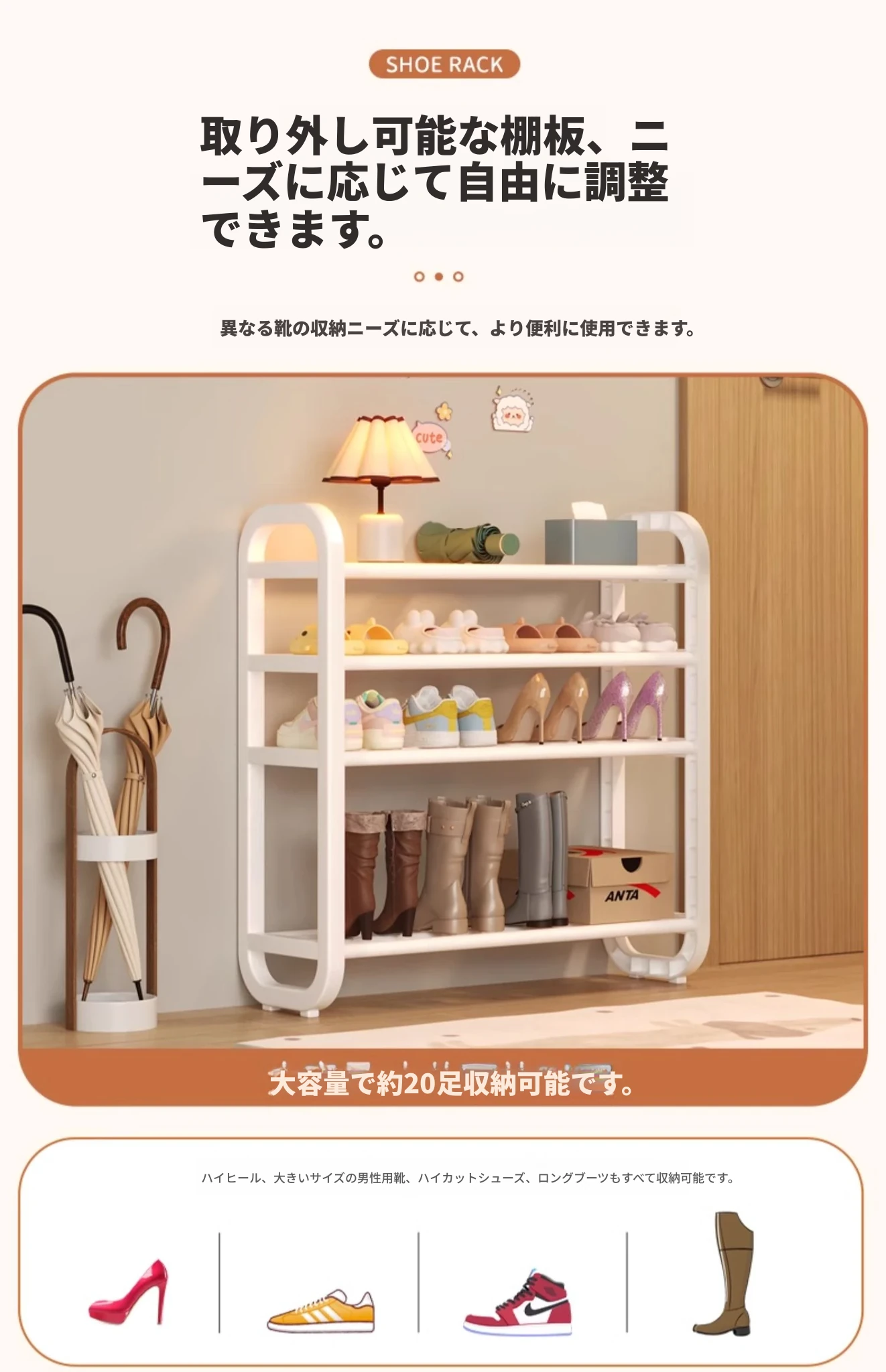 学生必見!省スペースの下駄箱 - 寮用・家庭用に最適な多層シューラック!玄関でスッキリ収納、シンプルなデザインで使いやすさ抜群!学生生活を快適にする収納アイテムです。