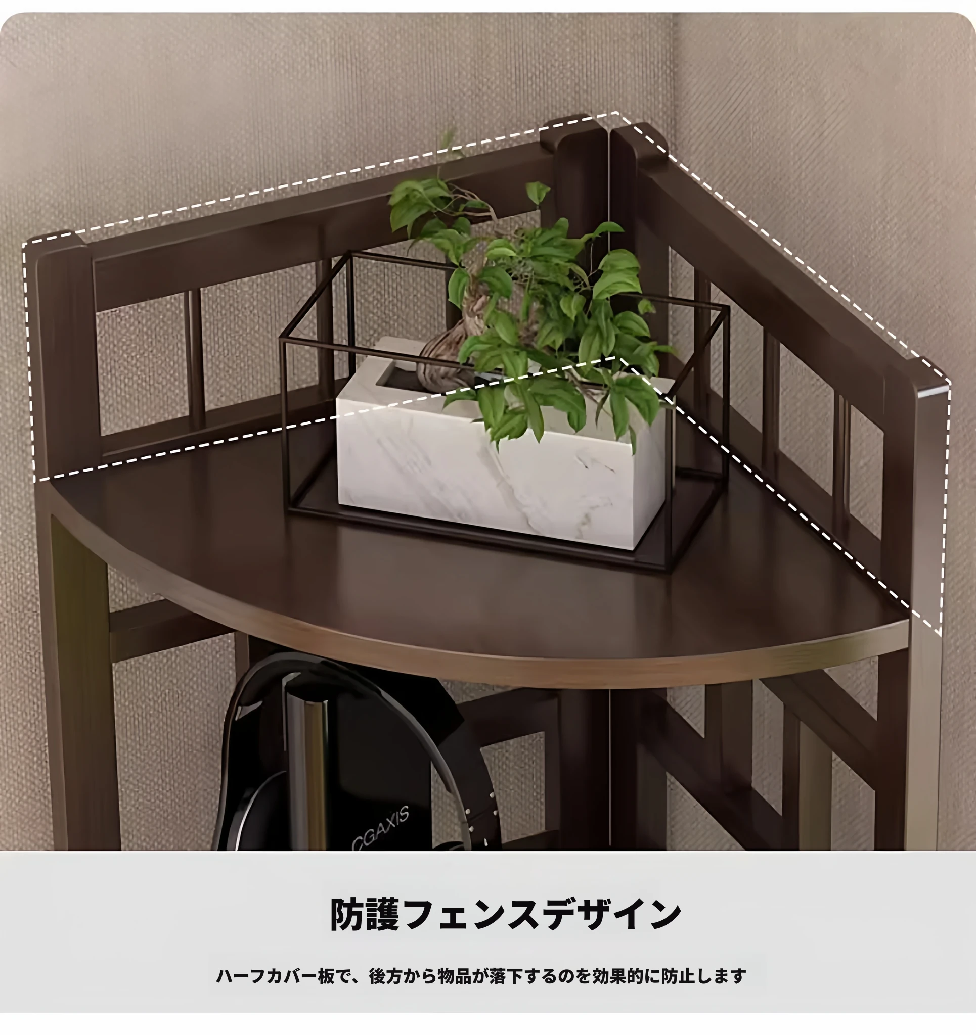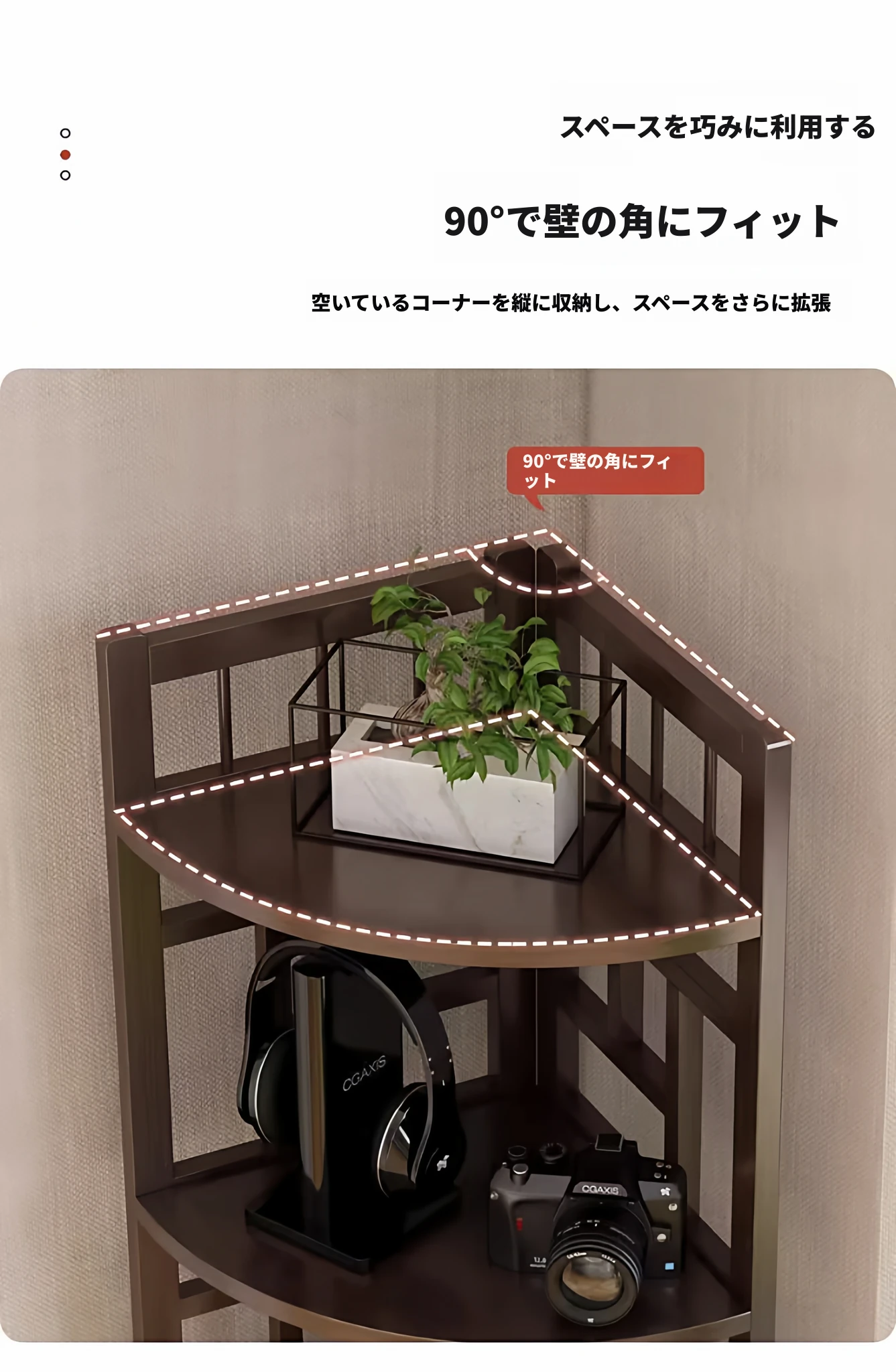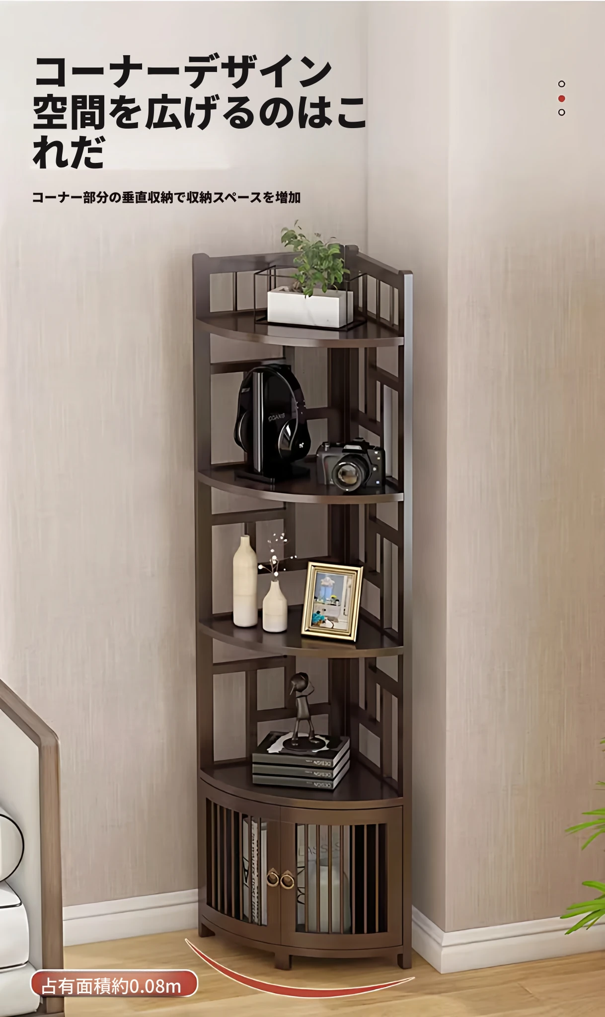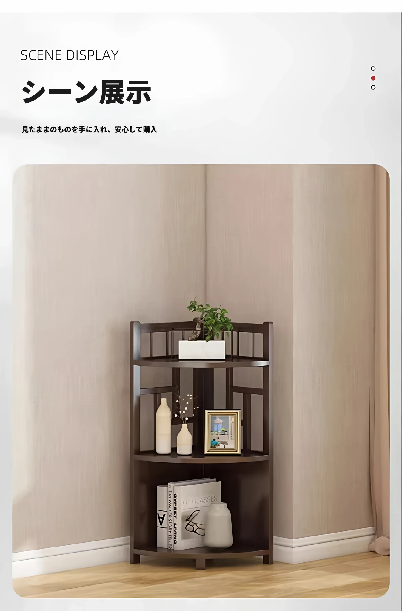 コーナー収納ラック - おしゃれな三角形デザインで、リビングの隅やソファの横にぴったり!省スペースで収納力抜群の壁掛けコーナーキャビネットです。整理整頓に最適なアイテム!